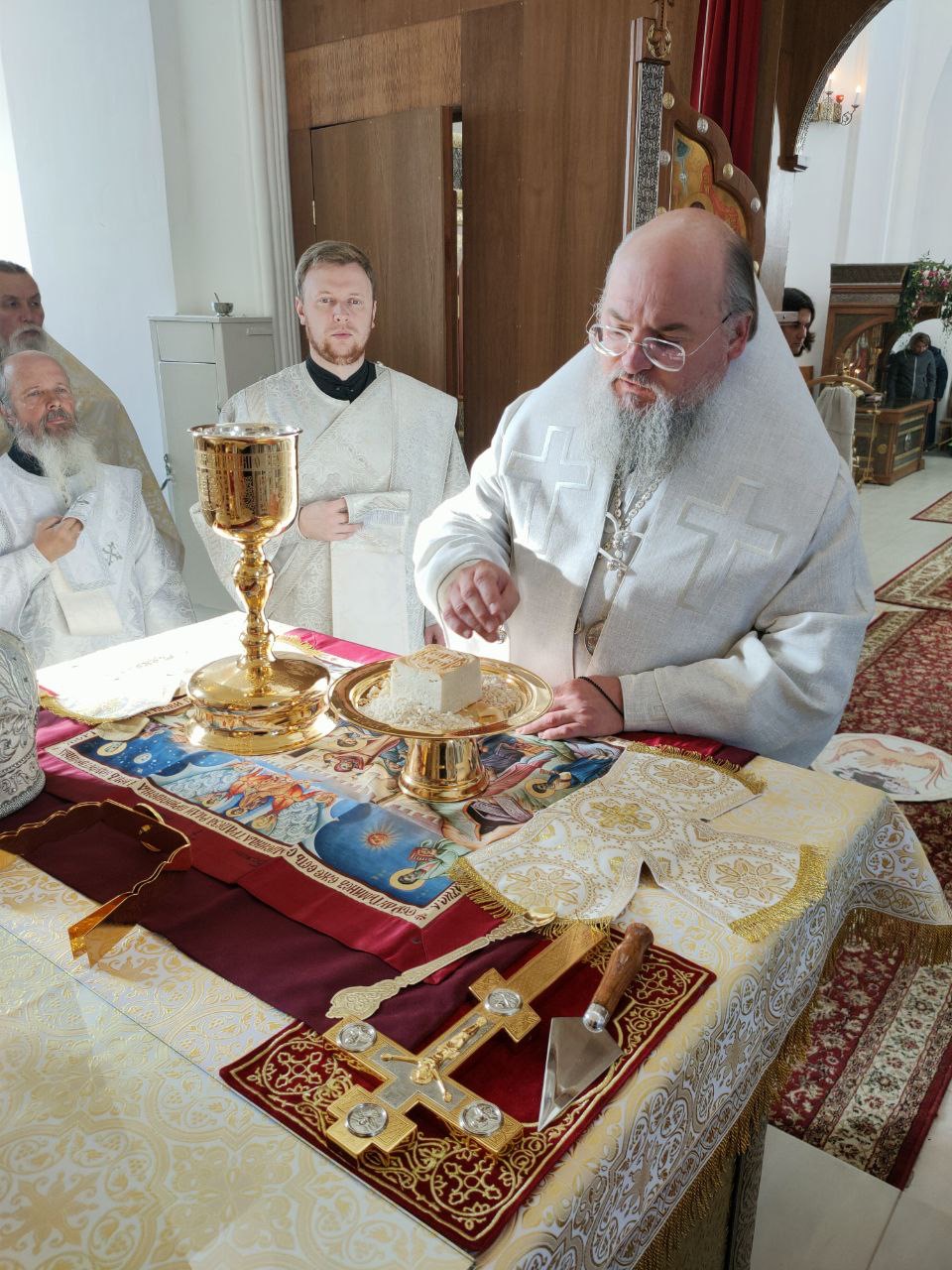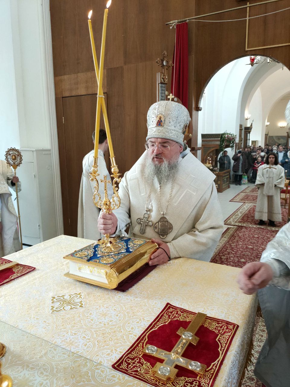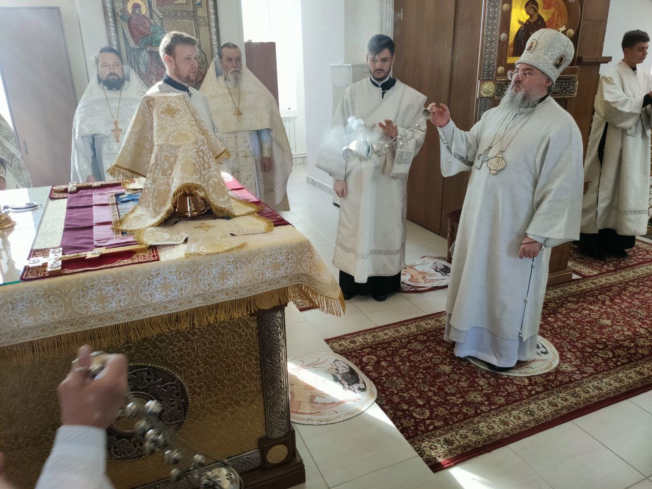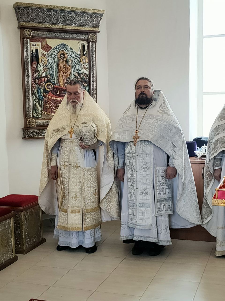 Архипастырю сослужили: духовник обители архимандрит Антоний (Гаврилов), секретарь Козельской епархии протоиерей Владимир Бахаев, духовенство Козельской и Московской епархий.