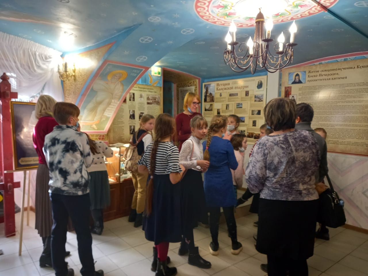26 октября Епархиальный Социальный центр помощи семье и детям «Рождественский» организовал поездку детей из Православной гимназии города Козельска в музей истории Православия в Никитском храме Калуги. Экспозиция музея рассказывает об истории Православия на Калужской земле в течение нескольких веков. Здесь представлены иконы и богослужебные книги, церковная утварь, облачения архиереев и священников. Помимо этого, можно видеть экспозиции, рассказывающие о времени Великого стояния на Угре 1480-го года, а также о Великой Отечественной войне 1941-1945 гг. Ребята с интересом познакомились с экспонатами музея, узнали много нового о истории родного края, истории своей православной веры. Также дети посетили Калужский ТЮЗ, посмотрели спектакль М. Бартенева «Про Иванушку-дурачка». Набравшись знаний и эмоций, мальчишки и девчонки возвратились домой.