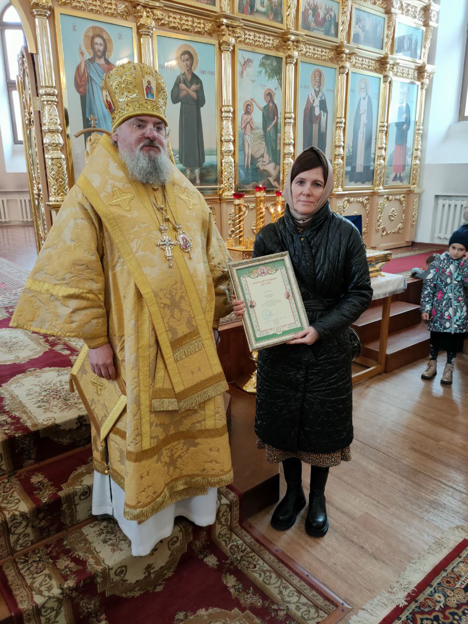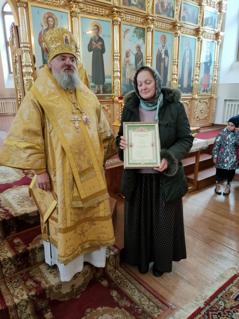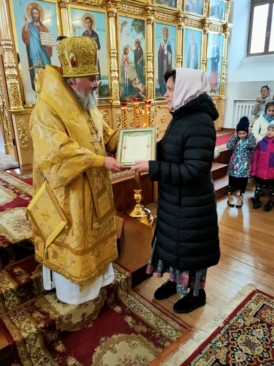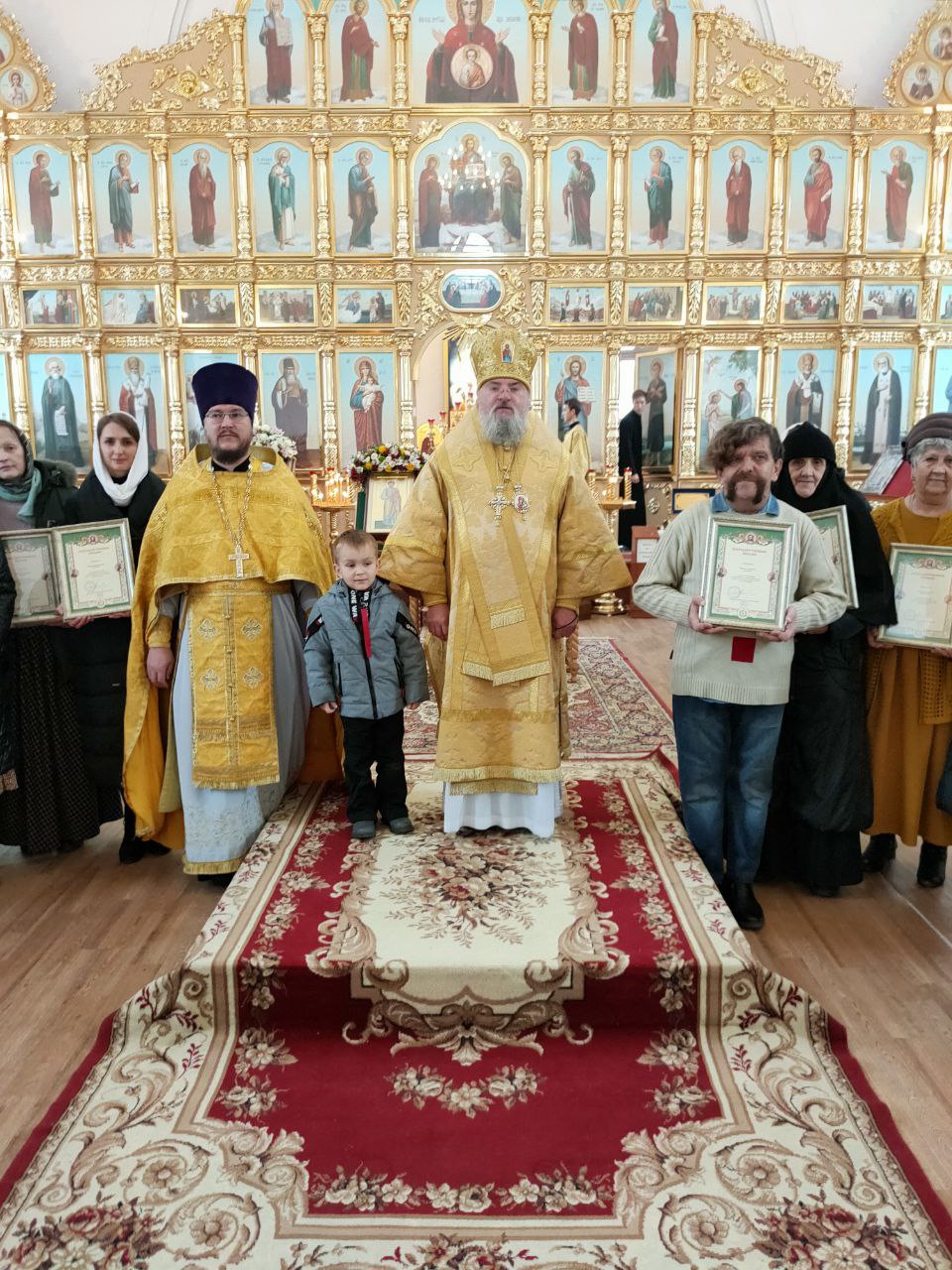 Епископ Никита наградил благодарственными грамотами и письмами прихожан Богоявленского храма города Козельска
