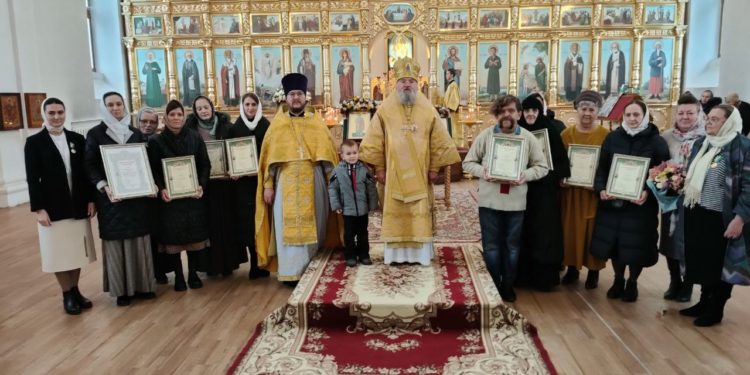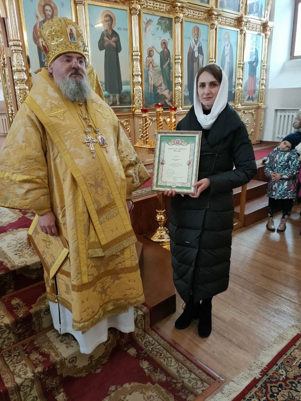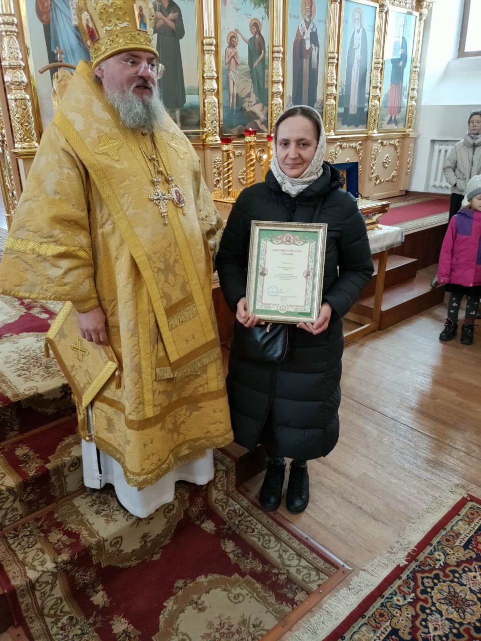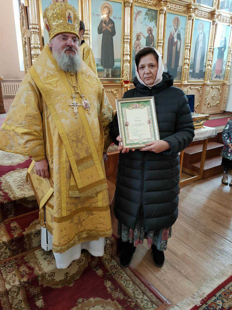 Епископ Никита наградил благодарственными грамотами и письмами прихожан Богоявленского храма города Козельска