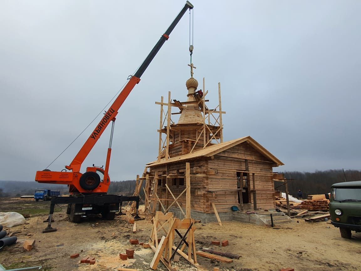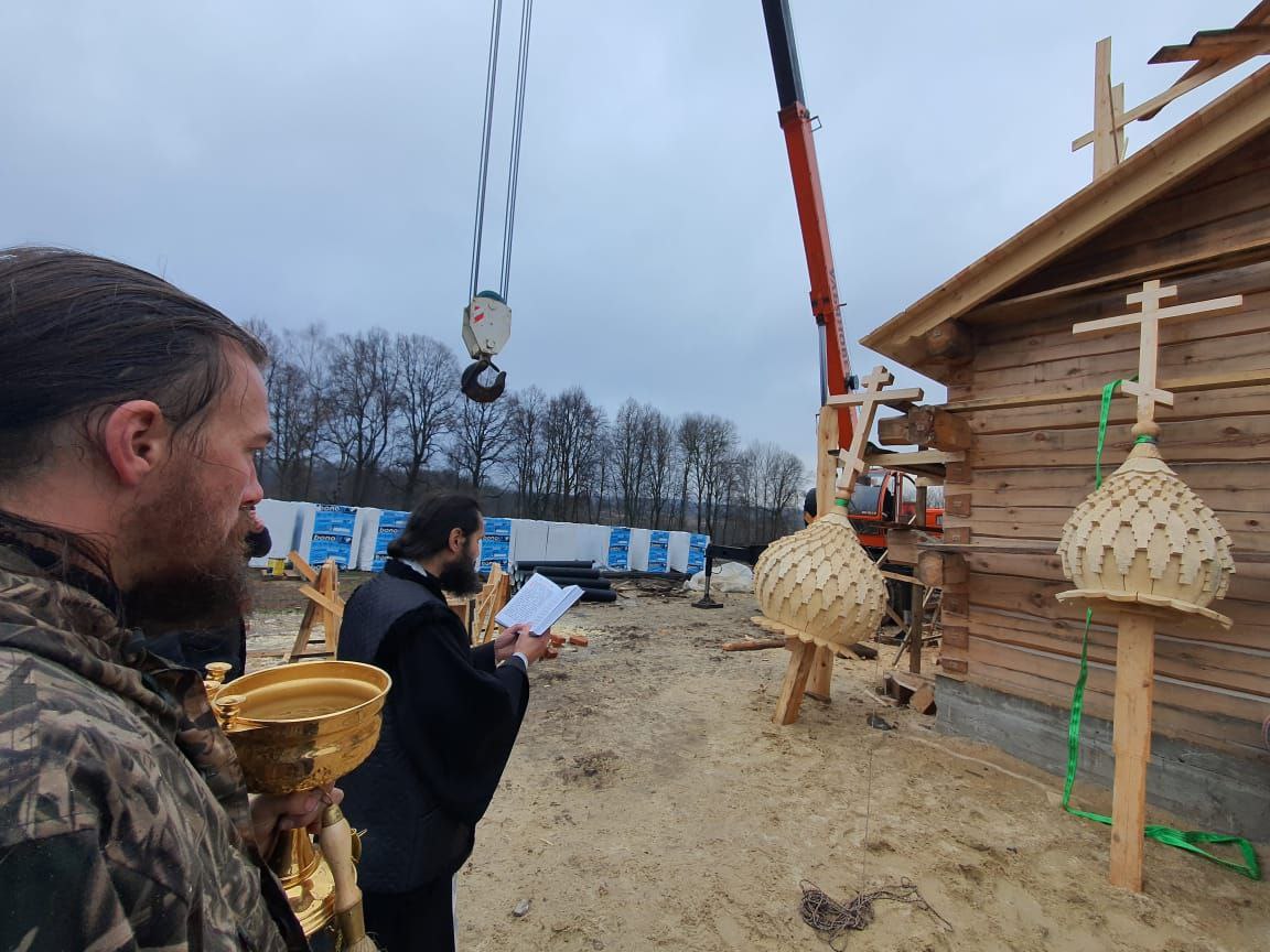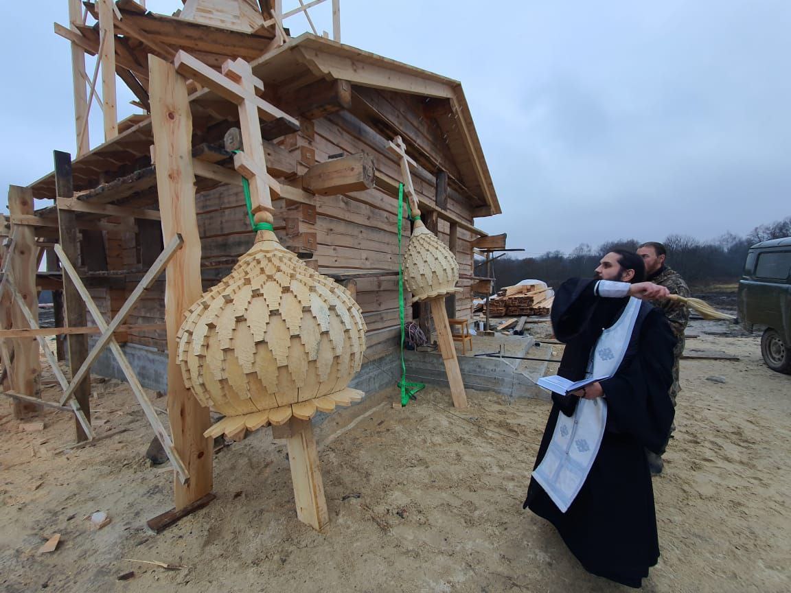 ПОСТАВЛЕНИЕ КРЕСТА НА ВЕРХ КРОВА НОВОСОЗДАННОЙ ЦЕРКВИ В УРОЧИЩЕ МЕРЕНИЩИ