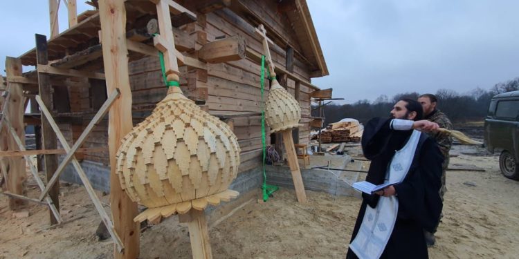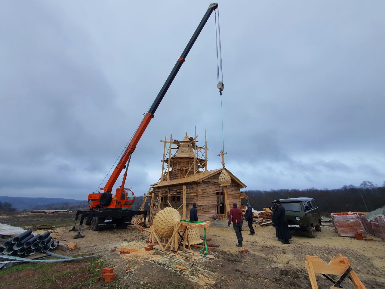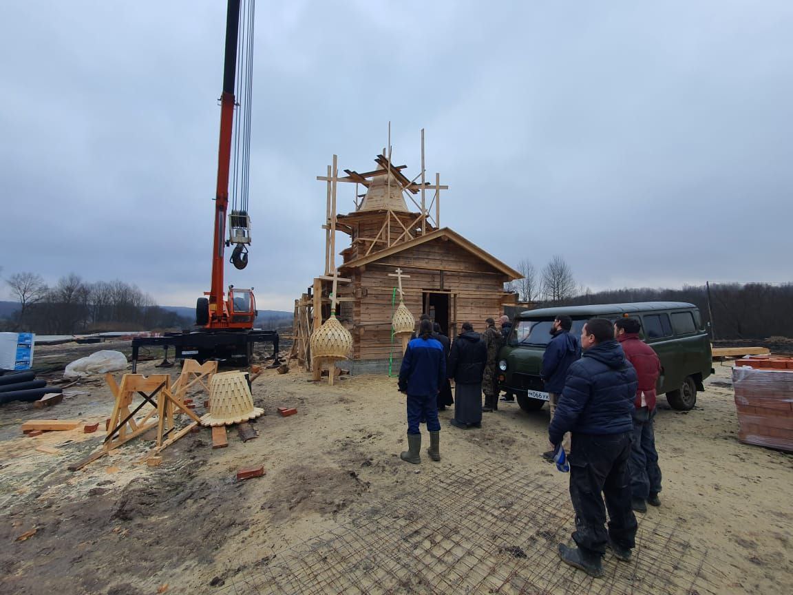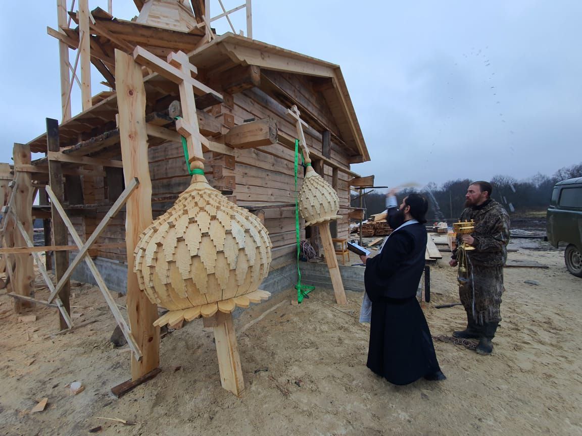 ПОСТАВЛЕНИЕ КРЕСТА НА ВЕРХ КРОВА НОВОСОЗДАННОЙ ЦЕРКВИ В УРОЧИЩЕ МЕРЕНИЩИ
