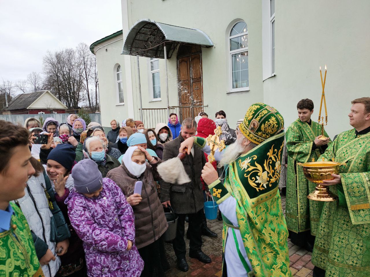 14 ноября. Неделя 21-я по Пятидесятнице. Память святых бессребреников Косьмы и Дамиана Асийских. Епископ Козельский и Людиновский Никита совершил Божественную литургию в храме святых Косьмы и Дамиана в поселке Думиничи. Преосвященному владыке сослужили: настоятель храма, благочинный округа протоиерей Иоанн Староста, духовник епархии протоиерей Алексий Жиганов, игумен Михаил (Семенов), протоиерей Алексий Казаков, протоиерей Владимир Бахаев, протоиерей Максим Садовников, протоиерей Александр Карпов, протоиерей Антоний Хатунцев, иерей Алексий Ефименков, диакон Евгений Ковригин, диакон Евгений Васильев и иеродиакон Лука (Старостин). По отпусте литургии священнослужители совершили праздничный молебен и крестный ход вокруг храма, в завершении которого, вознеся молитву святым бессребреникам, владыка обратился к богомольцам с проповедью.