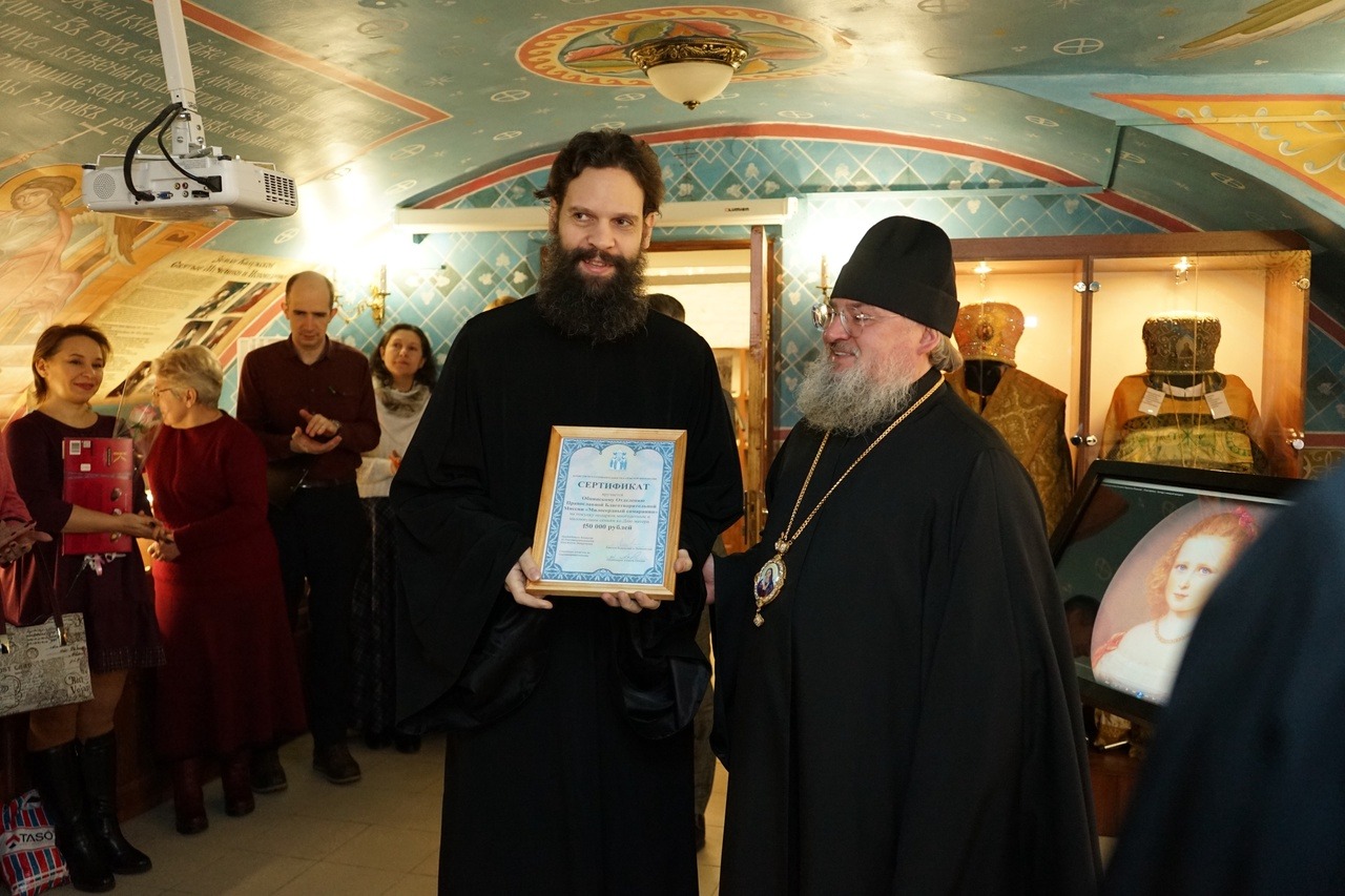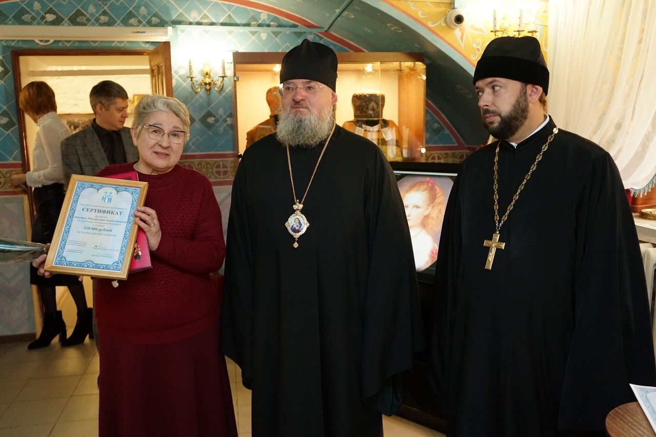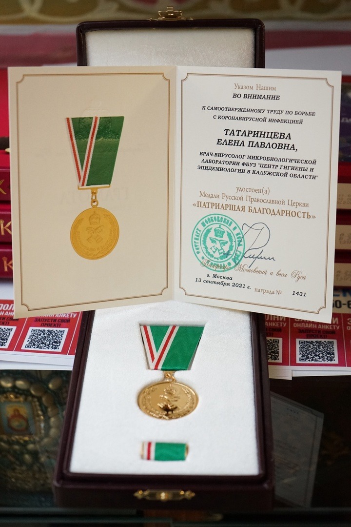 24 ноября 2021 года участники расширенного заседания Комиссии по благотворительности Калужской митрополии и приглашенные представители некоммерческих организаций Калужской области посетили выставку «Дивен Бог во святых своих», посвященную преподобномученице великой княгине Елисавете Федоровне, в Музее «Истории православия на Калужской земле» при храме в честь Рождества Пресвятой Богородицы г. Калуги и ознакомились с экспозицией музея. Завершилась экскурсия просмотром ролика о великой княгине Елисавете Федоровне Романовой. Председатель Комиссии по благотворительности Калужской Митрополии епископ Козельский и Людиновский Никита отметил плодотворную работу и выразил слова благодарности Комиссии, социальному отделу и его руководителю — протоиерею Алексию Пелевину. Затем состоялось награждение медалью Русской Православной Церкви «Патриаршая благодарность» за самоотверженный труд по борьбе с коронавирусной инфекцией Татаринцевой Елены Павловны, врача-вирусолога микробиологической лаборатории ФБУЗ «Центр гигиены и эпидемиологии в Калужской области». Награждение прошло в рамках расширенного заседания Комиссии с участием социально ориентированных некоммерческих организаций области в формате. В ответном слове Елена Павловна поблагодарила представителей Церкви за оказанное доверие, отметив, что деятельное участие в противостоянии пандемии принимает весь коллектив Центра гигиены и эпидемиологии. Далее были вручены сертификаты на материальную помощь по объявленным Комиссией по благотворительности сборам денежных средств на содержание детей, на лечение и проведение операции, покупку слуховых аппаратов и лекарств, а также на подарки многодетным и малообеспеченным семьям ко Дню Матери.