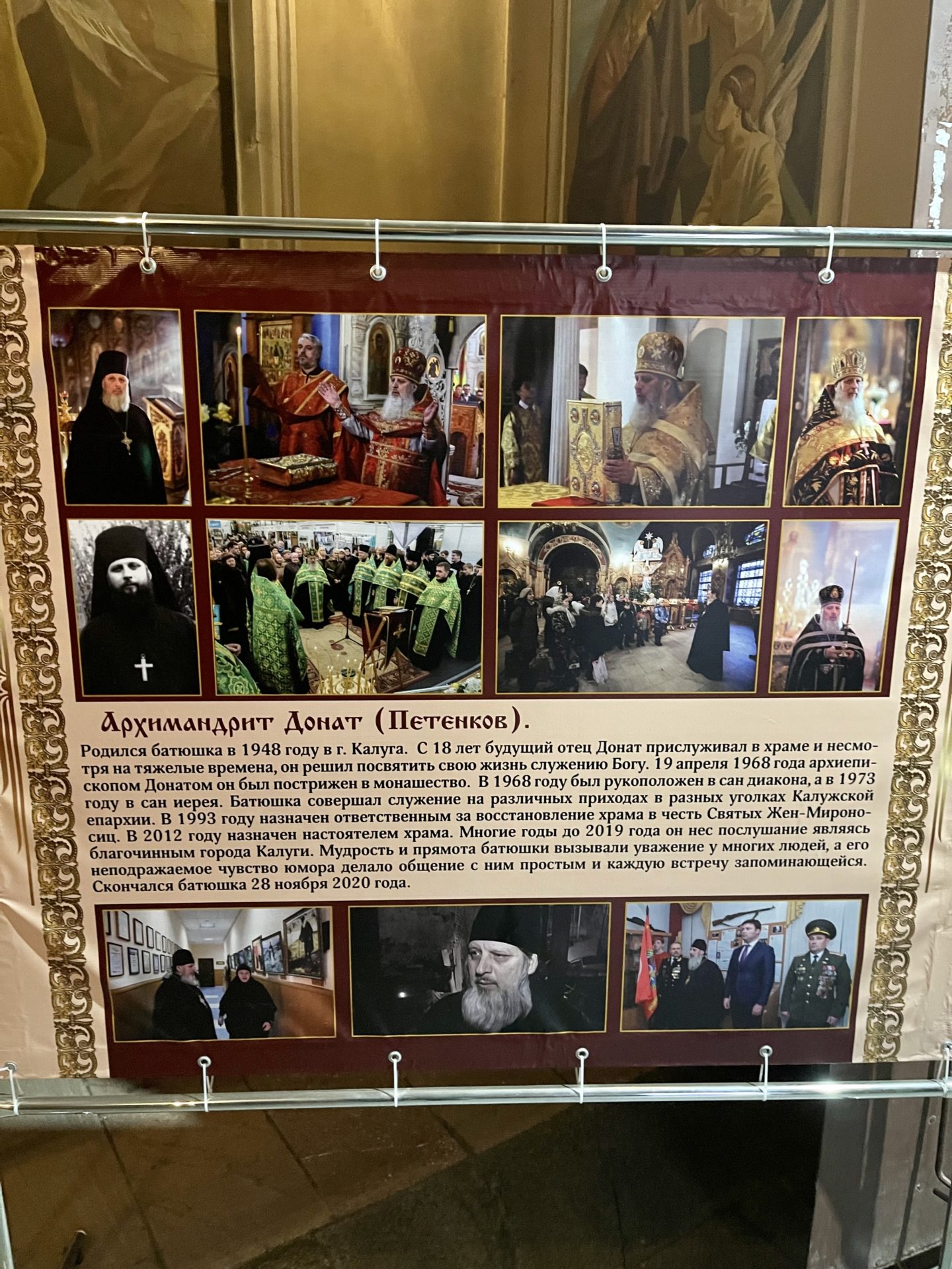 28 ноября в первую годовщину по преставлении ко Господу архимандрита Доната (Петенкова) епископ Козельский и Людиновский Никита, по благословению митрополита Калужского и Боровского Климента, посетил храм святых Жен Мироносиц города Калуги и совершил заупокойную литию на могиле отца архимандрита, погребенного в южном приделе храма.