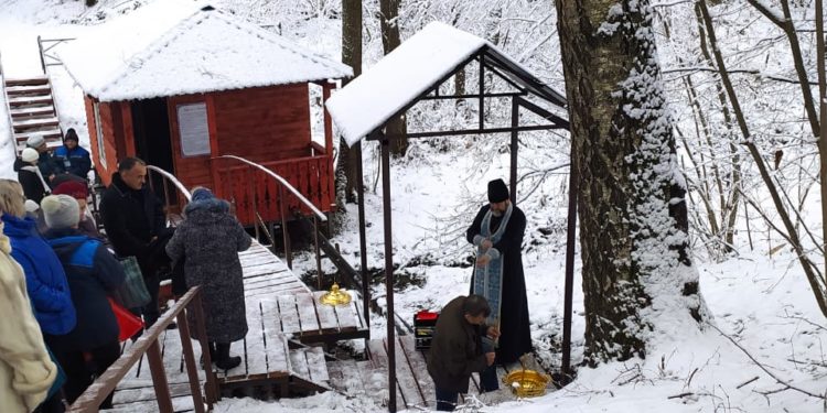 5 декабря по окончании Божественной литургии в Думиничском благочинии состоялось знаковое событие: настоятель храма святых бессребреников Космы и Дамиана протоиерей Иоанн Староста в присутствии большого количества жителей поселка Думиничи и деревни Думиничи освятил новую купальню на Святом источнике в деревне Думиничи. По завершении чина малого освящения воды и освящения купальни отец Иоанн рассказал о правилах поведения на святом источнике, поблагодарил строителей и жертвователей, пожелал им многая лета. Выступил и глава районной администрации Сергей Булыгин. Он также сказал слова благодарности всем, кто принял участие, пожелал: » Пусть вода этого источника питает нас новыми силами», и закончил свою речь словами из песни Вячеслава Добрынина и Владимира Дюкова: » Живи, родник, живи!»