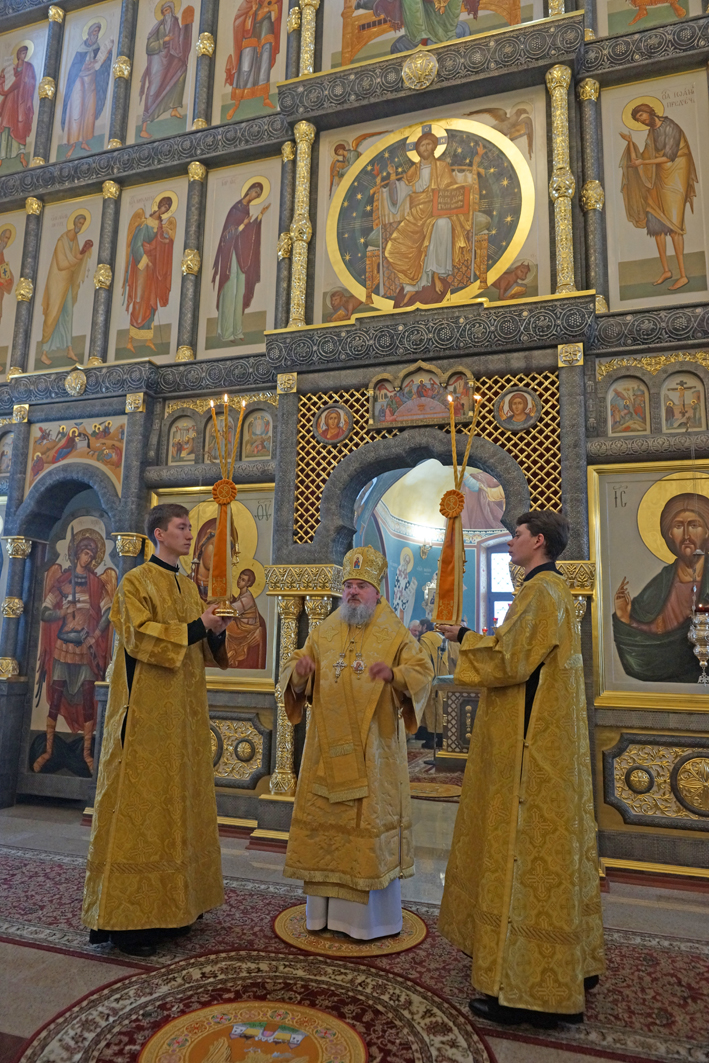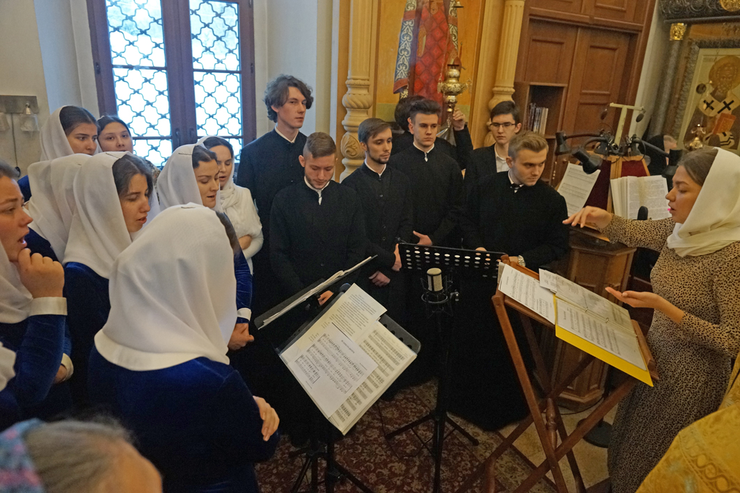 На сугубой ектении были вознесены молитвенные прошения о прекращении распространения коронавирусной инфекции и мире на Украине. Богослужебные песнопения исполнили хор Калужской духовной семинарии и Калужского духовного училища.