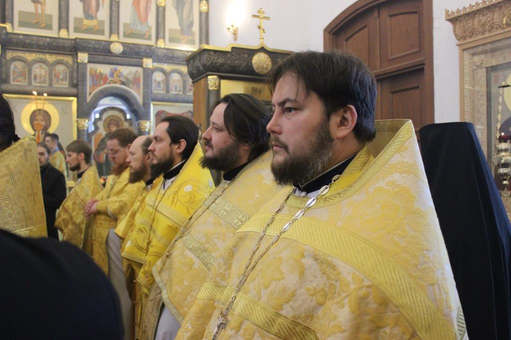 Архипастырям сослужили: протоиерей Анатолий Рыжков, архимандрит Тихон (Завьялов), архимандрит Георгий (Евдачев), протоиерей Алексий Жиганов, игумен Михаил (Семенов), игумен Мефодий (Пронькин) — секретарь Калужской епархии, иерей Константин Комаров — благочинный Северного округа города Калуги, протоиерей Андрей Безбородов, протоиерей Иоанн Паюл, протоиерей Сергий Вишняков, протоиерей Вадим Кудрявцев, протоиерей Василий Петров, протоиерей Алексий Пелевин, протоиерей Георгий Витков, протоиерей Сергий Бутылкин, протоиерей Евгений Чупров, протоиерей Сергий Сосков, протоиерей Антоний Хатунцев, протоиерей Александр Рябов, протоиерей Геннадий Перебейнос, протоиерей Игорь Пвлов, иерей Александр Земцов, иерей Кирилл Хланта, иерей Ярослав Драгун, иеромонах Пафнутий (Габидулин), иеромонах Дорофей (Соколов), иеромонах Херувим (Левин), иерей Максим Коновалов, иерей Николай Жерздев, иерей Максим Шишин, иерей Иоанн Голенок, протодиакон Алексей Хамтеев, протодиакон Сергий Комаров, представители духовенства Калужской, Козельской и Песоченской епархий.