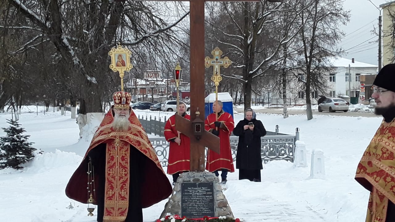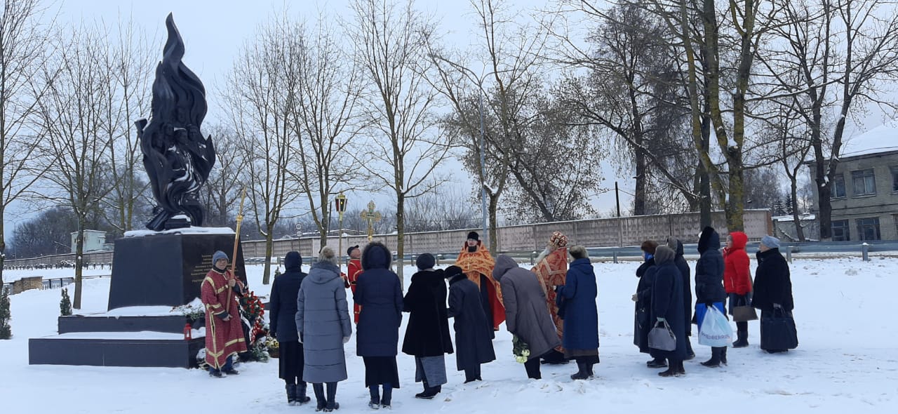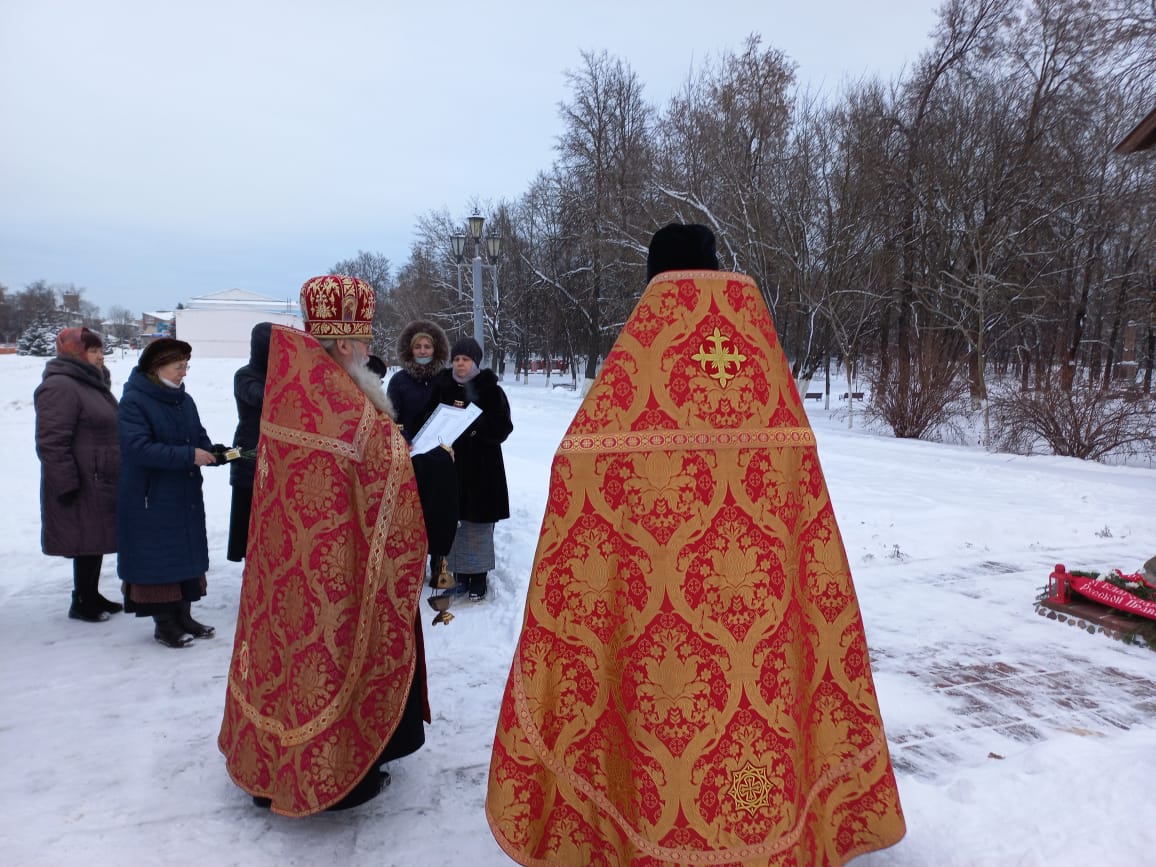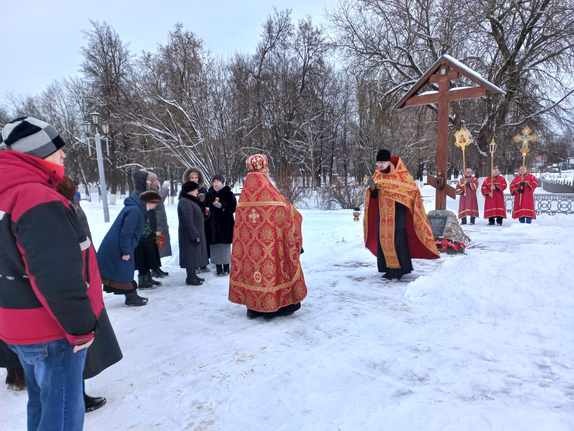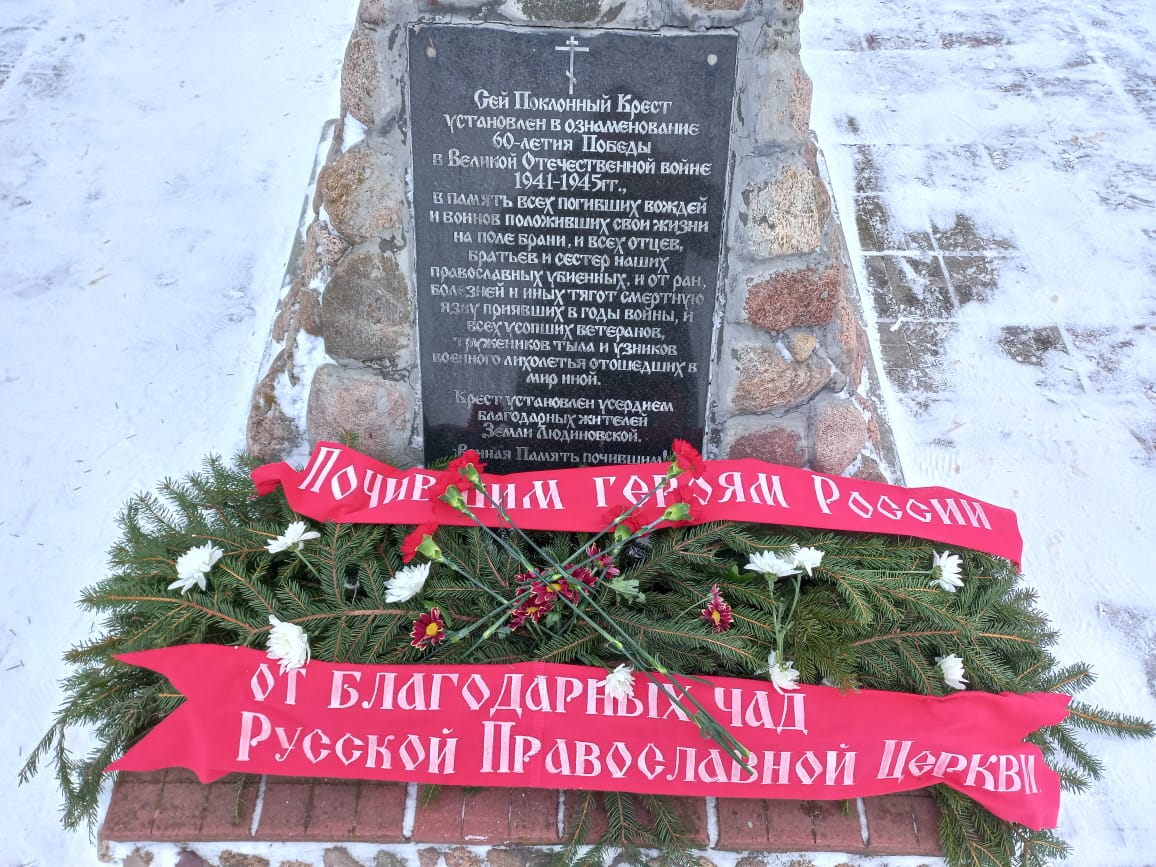 Духовенством храма была совершена лития обо всех почивших героях Отечества, совершивших боевые и трудовые подвиги. По окончании заупокойной молитвы, настоятель Казанского собора протоиерей Алексий Жиганов, клирик храма – иерей Алексий Сначёв и прихожане возложили гирлянду и цветы к Поклонному Кресту и к памятнику Людиновским подпольщикам.
