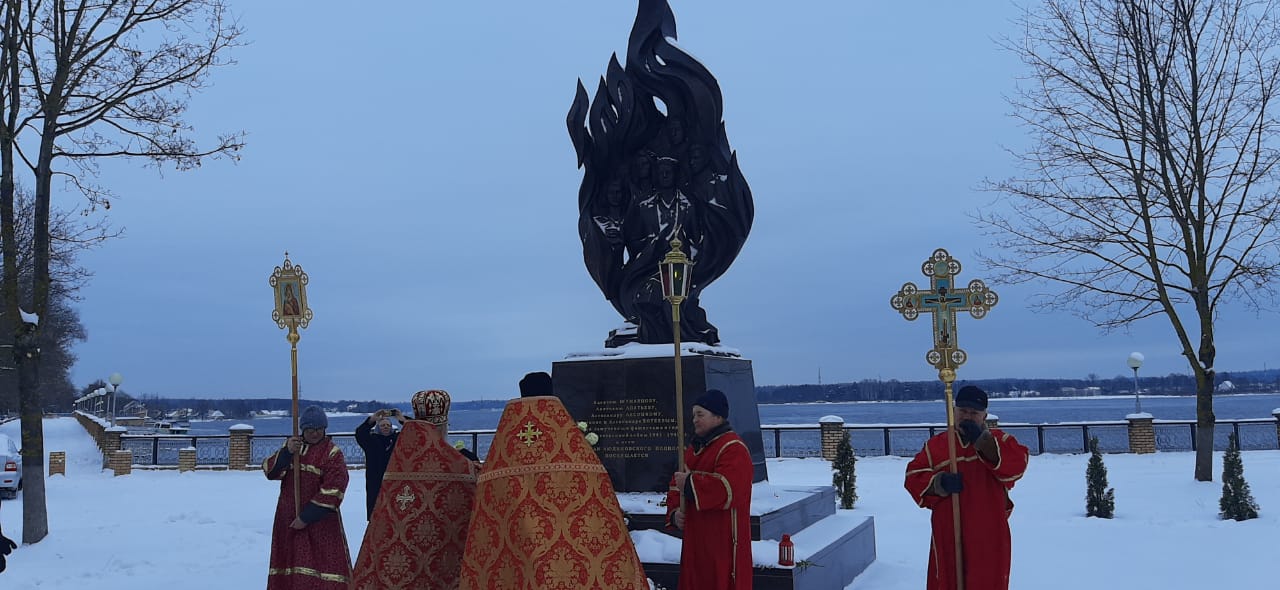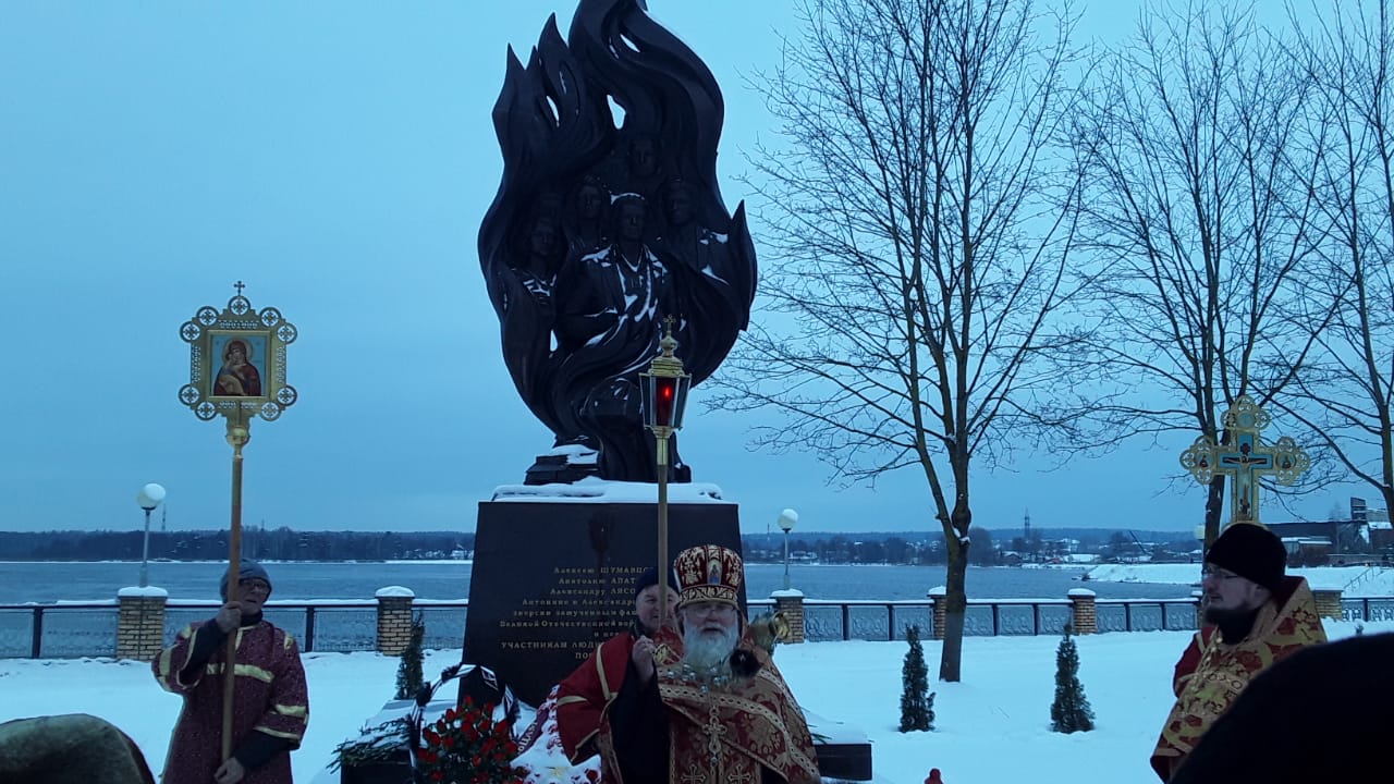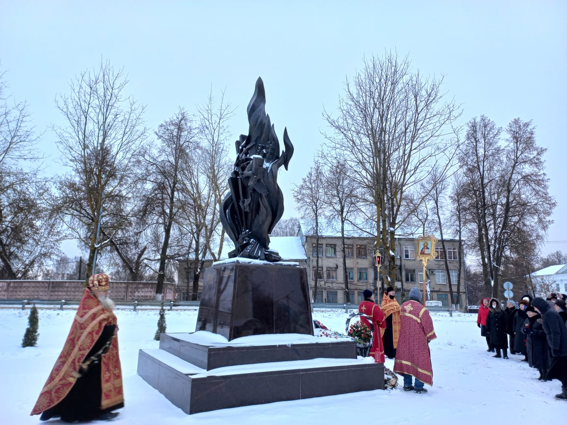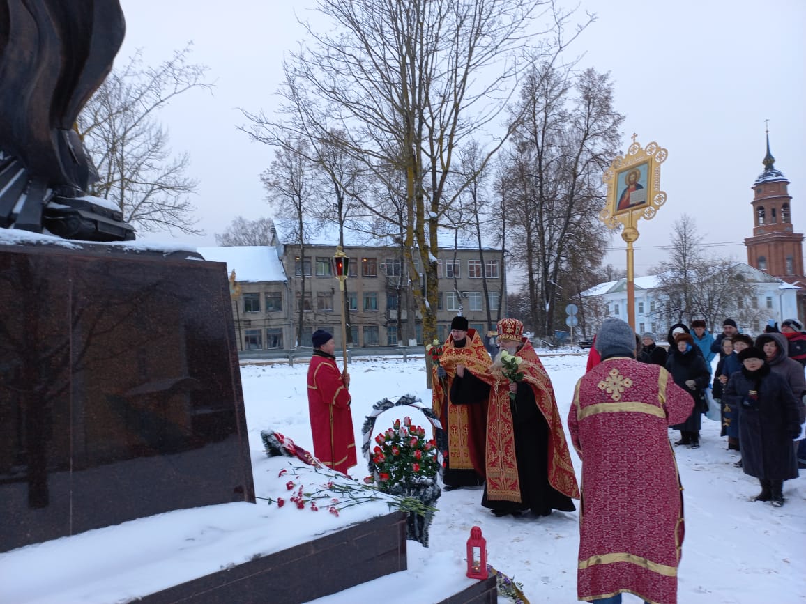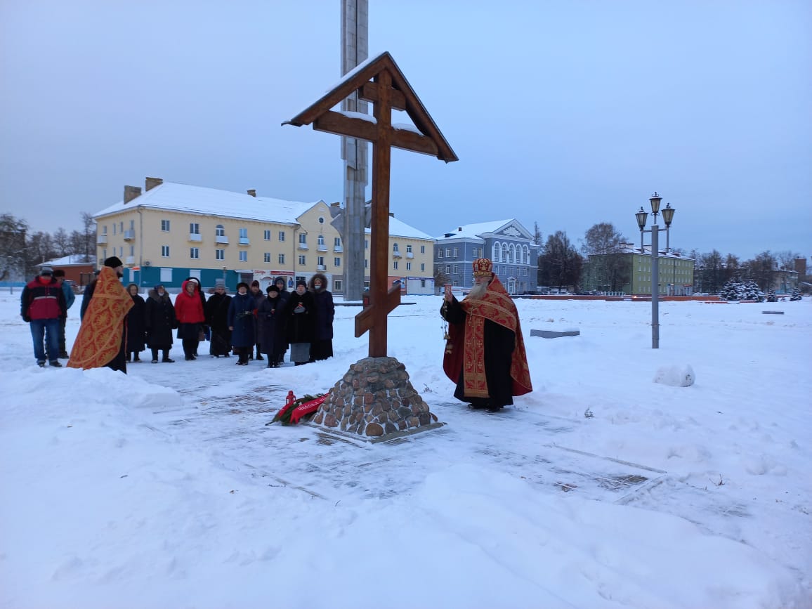 Духовенством храма была совершена лития обо всех почивших героях Отечества, совершивших боевые и трудовые подвиги. По окончании заупокойной молитвы, настоятель Казанского собора протоиерей Алексий Жиганов, клирик храма – иерей Алексий Сначёв и прихожане возложили гирлянду и цветы к Поклонному Кресту и к памятнику Людиновским подпольщикам.
