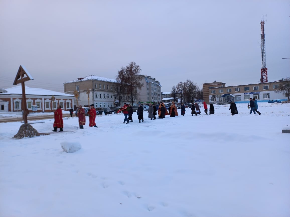 Затем от Казанского кафедрального собора города Людиново состоялся Крестный ход к Поклонному Кресту, установленному на Площади Победы и к памятнику Людиновским подпольщикам, замученным фашистами в годы Великой Отечественной войны, который расположен на Набережной у озера.