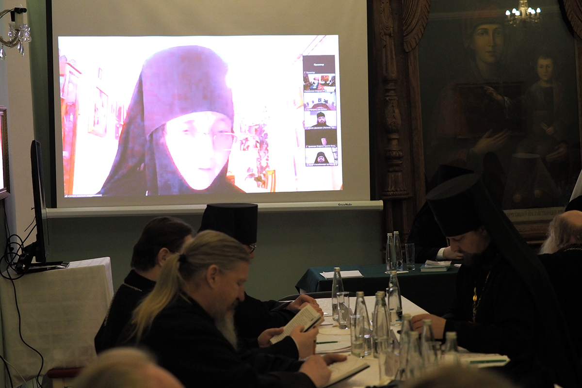 По благословению Святейшего Патриарха Московского и всея Руси Кирилла 9 декабря 2021 года в Смоленской епархии состоялся круглый стол «Монашеские добродетели как средоточие монашеского подвига». В форуме участвовали Преосвященные, игумены, игумении и монашествующие 11 епархий, расположенных на территории Смоленской, Брянской, Калужской и Тверской митрополий. Оргкомитет по подготовке и проведению круглого стола возглавил Глава Смоленской митрополии, Высокопреосвященнейший митрополит Смоленский и Дорогобужский Исидор. Смоленский архипастырь приветствовал участников встречи и передал слова благословения участникам круглого стола митрополита Воскресенского Дионисия, первого викария Святейшего Патриарха Московского и всея Руси, управляющего делами Московской Патриархии и митрополита Каширского Феогноста, викария Святейшего Патриарха Московского и всея Руси, руководителя Синодального отдела по монастырям и монашеству. Со словами приветствия к участинкам круглого стола и докладами обратились Преосвященные главы митрополий, участвующих в форуме: митрополит Калужский и Боровский Климент, митрополит Брянский и Севский Александр, митрополит Тверской и Кашинский Амвросий. В продолжение встречи участников приветствовали архиепископ Песоченский и Юхновский Максимилиан, епископ Ржевский и Торопецкий Адриан, епископ Козельский и Людиновский Никита, епископ Бежецкий и Весьегонский Филарет, епископ Вяземский и Гагаринский Сергий, епископ Рославльский и Десногорский Мелетий. Участники круглого стола посмотрели видеозапись Слова Святейшего Патриарха Московского и всея Руси Кирилла «О задачах монашеской жизни». Затем Высокопреосвященнейший митрополит Исидор выступил с пленарным докладом. Во второй части форума были заслушаны доклады участников круглого стола: — «Современные нравственные изменения в обществе и их влияние на состояние современного монашества» — игумен Михаил (Семенов), наместник мужского монастыря Спаса Нерукотворного пустынь с. Клыково (Козельская епархия, Калужская митрополия); — «Поучения о подвижничестве преподобного Василия, старца Площанского, как образец созидания добродетелей современного иночества» — иеромонах Диомид (Кузьмин), насельник Свенского Успенского мужского монастыря с. Супонево (Брянская епархия); — «Возникновение и развитие монашества на Вяземской земле» — игумения Ангелина (Нестерова), настоятельница Спасо-Богородицкого Одигитриевского женского монастыря под г. Вязьма (Вяземская епархия, Смоленская митрополия); — «Духовный фундамент становления монашеского делания в возрождающейся Боголюбивой обители» — монахиня Иосифа (Егасова), настоятельница Архиерейского подворья б. Белокопытовского Казанского Боголюбивого женского монастыря (Песоченская епархия, Калужская митрополия). Монахиня Иосифа также рассказала о трудах Боголюбивой обители и представила вниманию участников круглого стола изданные книги к 125-летию открытия Белокопытовского Казанского Боголюбивого женского монастыря «Боголюбивая обитель на реке Любуше» и «История Белокопытовского Казанского Боголюбивого женского монастыря — первого общежительного монастыря на Калужской земле». — «Троица добродетелей: духовное послушание, молитва и пост» — игумения Михаила, настоятельница Свято-Успенс