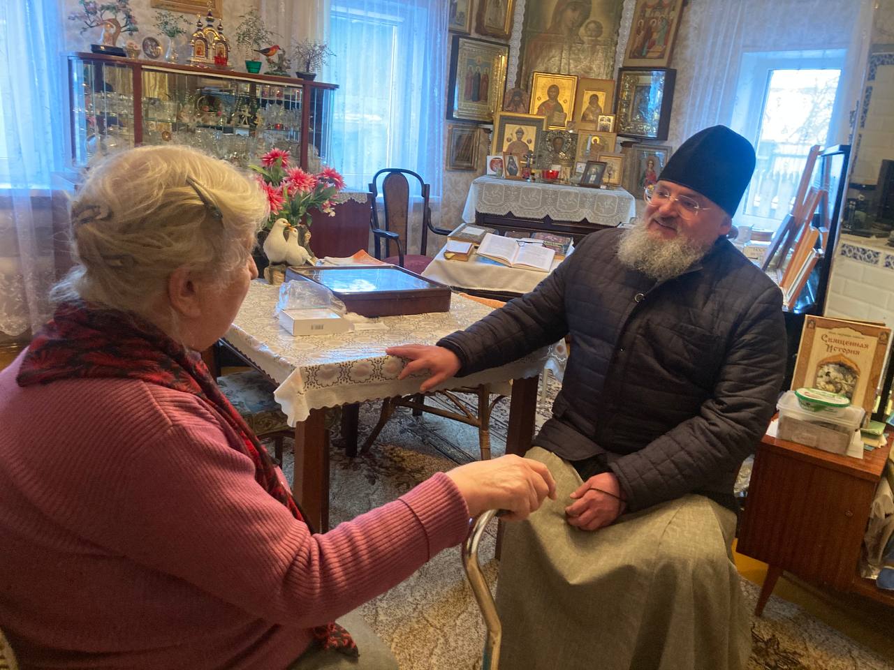 12 декабря, после Божественной литургии в Казанском храме села Дудоровский епископ Никита посетил село Нижние Прыски Козельского района. Владыка пообщался с настоятелем Преображенского храма иереем Тихоном Худяковым, который рассказал архипастырю о ходе ремонтных работ на приходе, а затем посетил вдову почившего настоятеля храма митрофорного протоиерея Леонтия Никифорова Тамару Ивановну. Владыка побеседовал с матушкой, справился о ее самочувствии и пожелал ей крепкого здоровья, душевных и телесных сил. Архипастырь также посетил строящийся храм в честь Боголюбской иконы Пресвятой Богородицы.