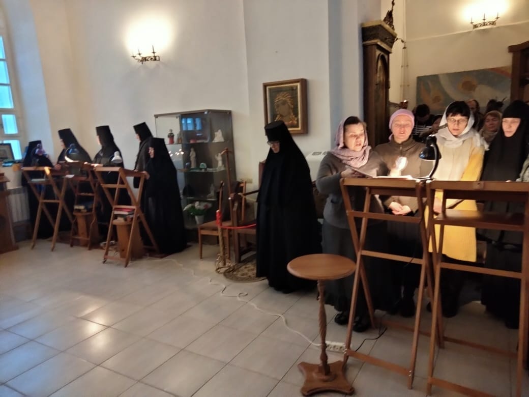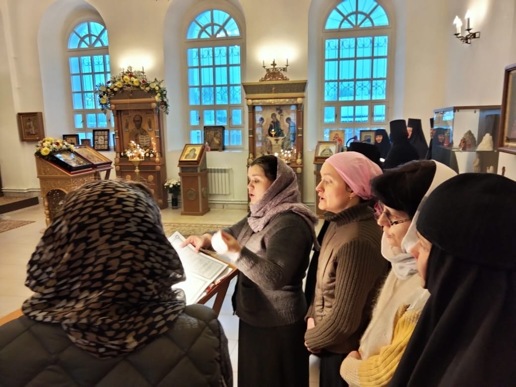 18-19 декабря певцы Народного клироса храма святых Жен-Мироносиц города Калуги побывали в женском монастыре Свято-Успенской Феклиной пустыни Козельской епархии. Поездка состоялась по благословению настоятеля храма протоиерея Вадима Кудрявцева и старшей монахини обители монахини Николаи (Александровой). Хор принял участие в богослужении престольного праздника, посвященного святителю Николаю чудотворцу (в главном монастырском храме один из пределов посвящен этому святому). Хористки исполнили песнопения всенощного бдения и Божественной литургии антифонно с монастырским хором под управлением регента монахини Геронтии, приняли участие в крестном ходе, а также помогли сестрам в подготовке праздничной трапезы. Участники поездки выражают благодарность настоятелю храма отцу Вадиму, монахине Николае и всем, кто находился с ними в эти дни.