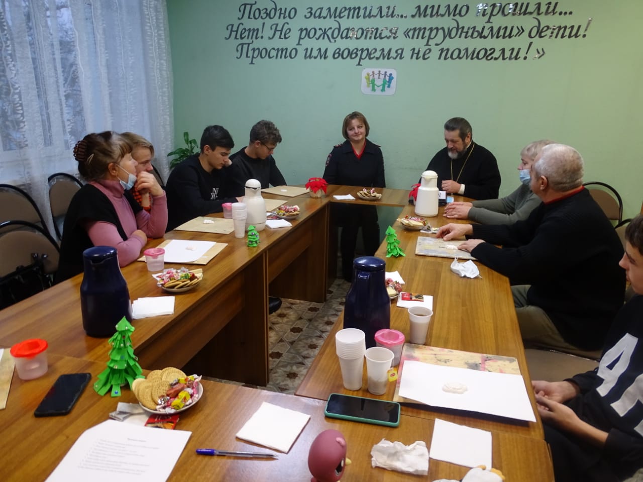 В рамках программы сопровождения несовершеннолетних, состоящих на различных видах учёта и находящихся в социально-опасном положении и их семей «Шаг за шагом» 22 декабря 2021 года была проведена встреча с настоятелем храма святых бессребреников Космы и Дамиана п. Думиничи, протоиреем Иоанном Староста, на тему «Духовное воспитание подрастающего поколения». На заседании присутствовали инспектор ПДН капитан полиции Мирошникова Анастасия Владимировна, заместитель директора ГБУКО «Думиничский ЦСПСД» по социальным вопросам и реализации социальных программ Ольхова Галина Александровна, социальный педагог ГБУКО «Думиничский ЦСПСД» Чертихина Наталья Георгиевна, а также родители подростков, совершивших правонарушения. В беседе с подростками Отец Иоанн сказал, что каждый человек способен сделать свой выбор в жизни: идти честным путём, зарабатывая необходимые деньги, отказывая себе во многих удовольствиях и желаниях, или вступить на путь преступления в поисках легкой наживы. Всем известно, что воровать, грабить, оскорблять, драться — плохо. И одна из задач нашей беседы предупредить вас об опасностях в игре с законом. У всех людей на земле есть понимание того, что такое добро и что такое зло. И никакая полиция, никакие суды не заставят человека быть добрым. Они могут под страх ом наказания заставить его не совершать противозаконных действий, но заставить его быть добрым, они не смогут. Каждый православный человек может в трудную минуту прийти в храм и получить помощь священника. Сбиться с правильного пути может каждый человек, только вера помогает ему осознать свои ошибки. Благодаря таким мероприятиям у каждого подученного появляется шанс иначе взглянуть на свой образ жизни, характер и изменить свое отношение к другим людям. Мне очень хочется верить, что после нашей беседы, вы будете совершать только хорошие поступки, так как совершая проступок, вы не только нарушаете Закон, нот причиняете боль своим родным и другим людям.