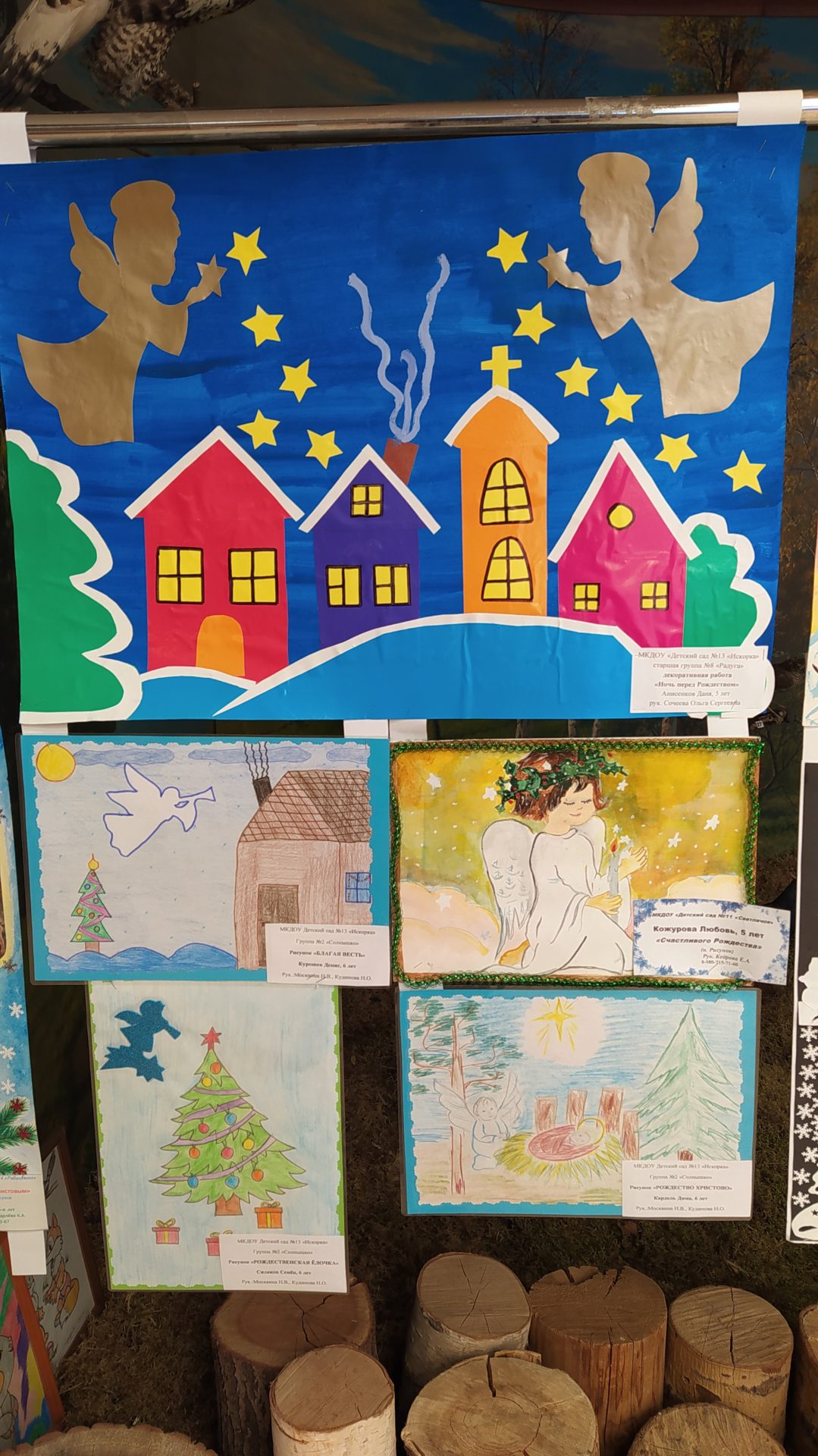 Здесь удивительные Рождественские вертепы. В некоторых вертепах умельцы сделали подсветки. А какие ангелочки, и все разные. Ну а композиции праздничные и рисунки просто диво-дивное.