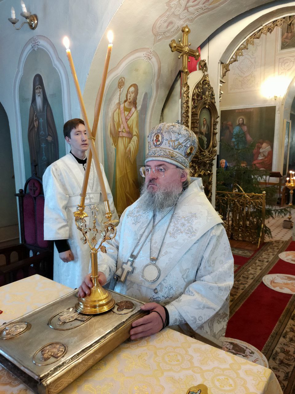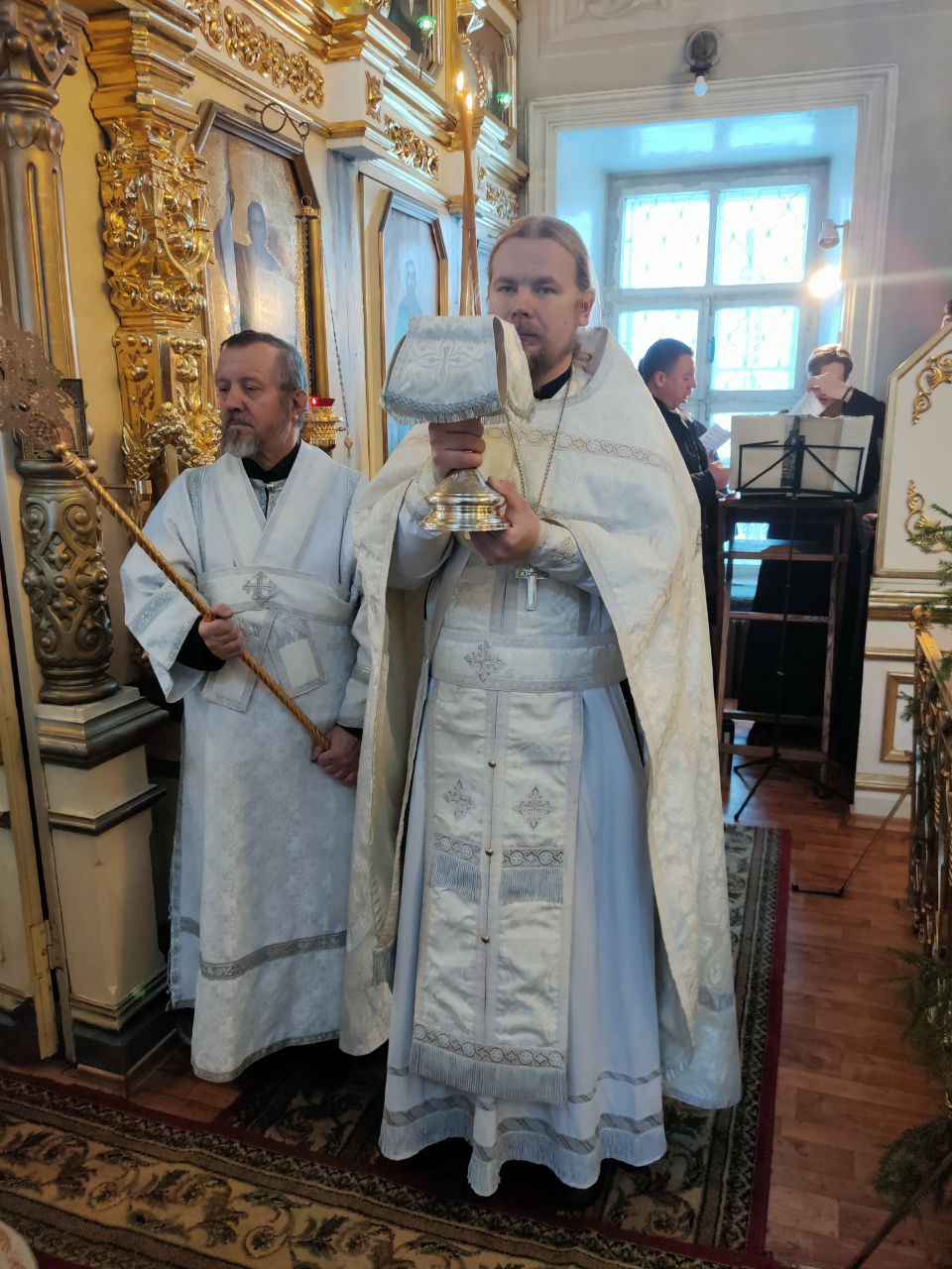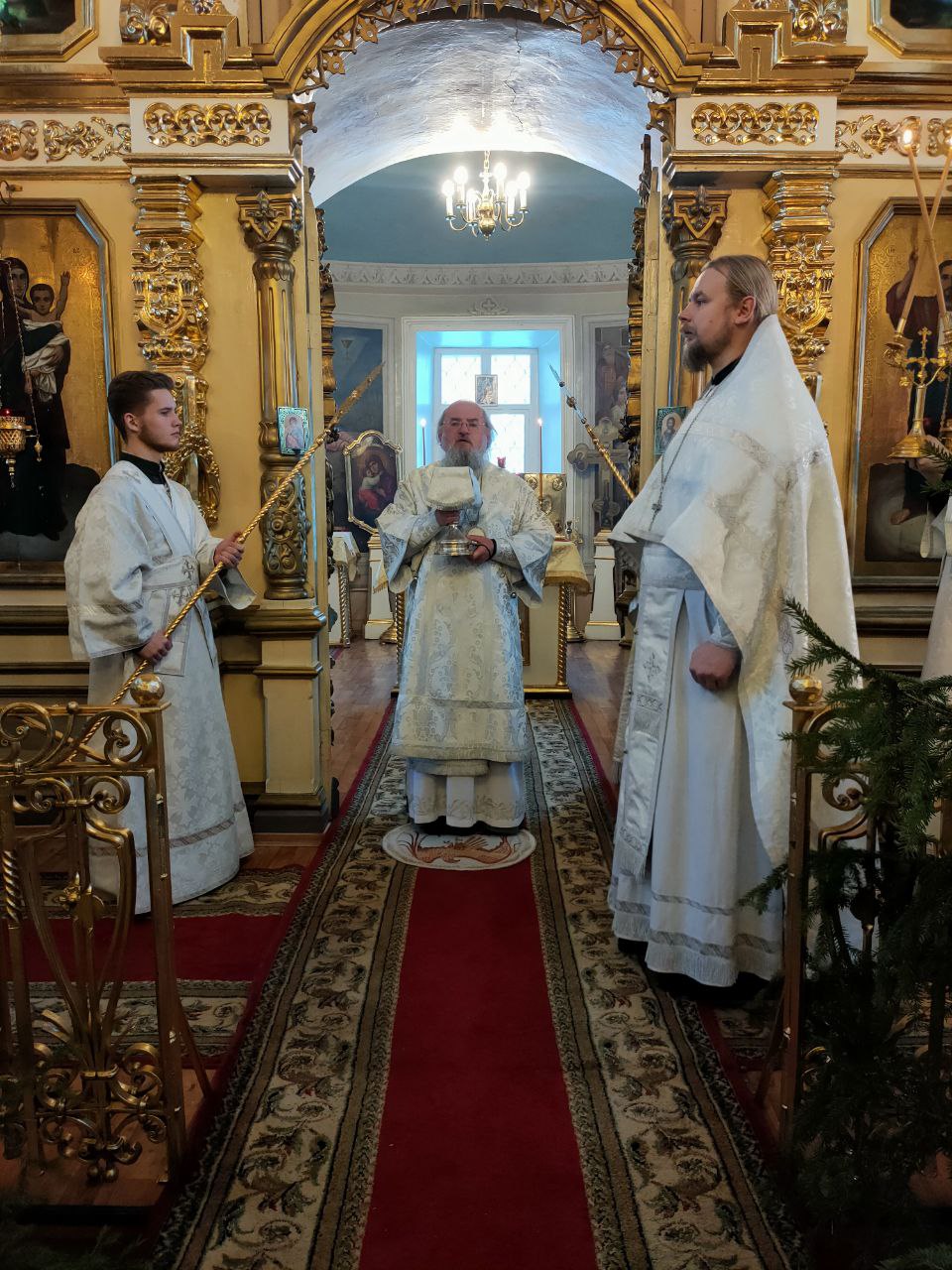 6 января. Навечерие Рождества Христова. Рождественский сочельник. Епископ Козельский и Людиновский Никита совершил великую Рождественскую вечерню в соединении с Божественной литургией святителя Василия Великого в Благовещенском храме города Козельска. Преосвященному владыке сослужили: протоиерей Павел Морозов, настоятель храма иерей Сергий Барыкин, диакон Евгений Ковригин и диакон Евгений Васильев. По заамвонной молитве священнослужители пропели славление Рождеству Христову, а затем владыка обратился к богомольцам с проповедью.