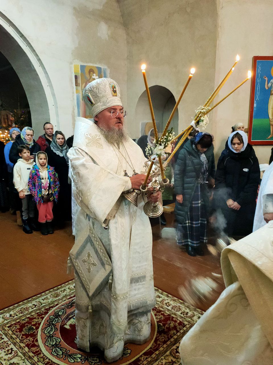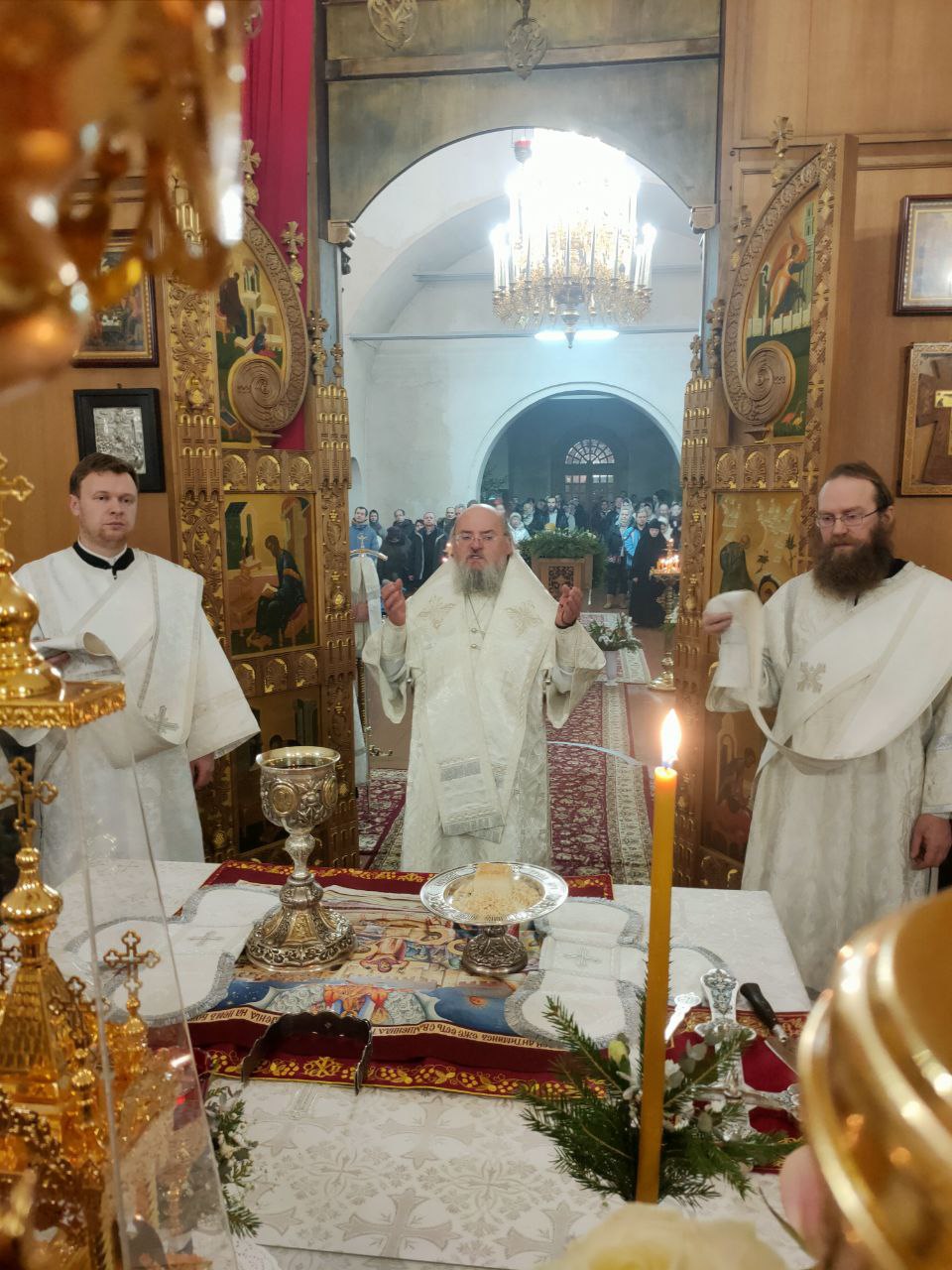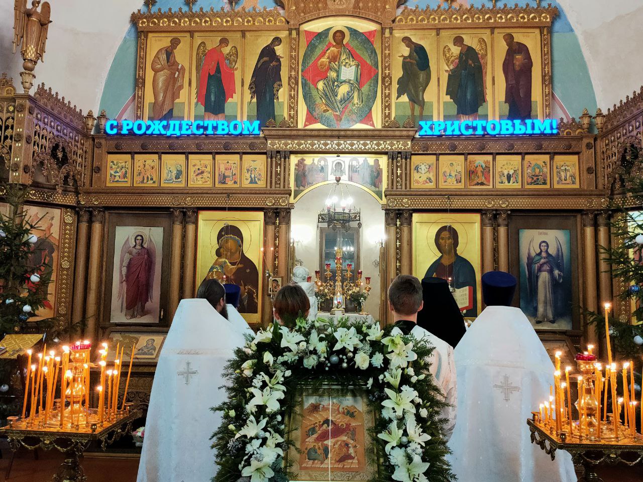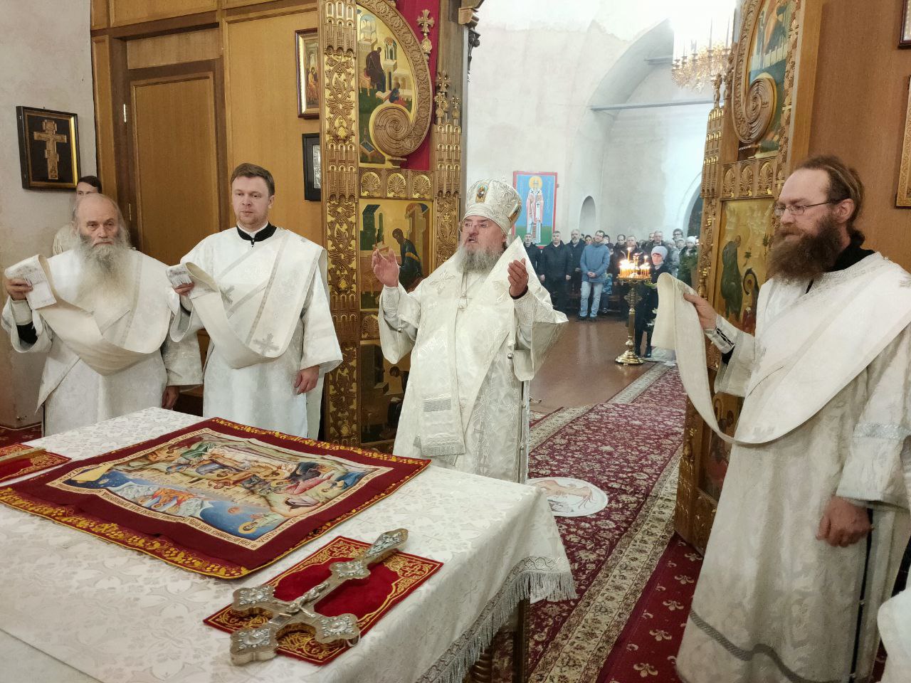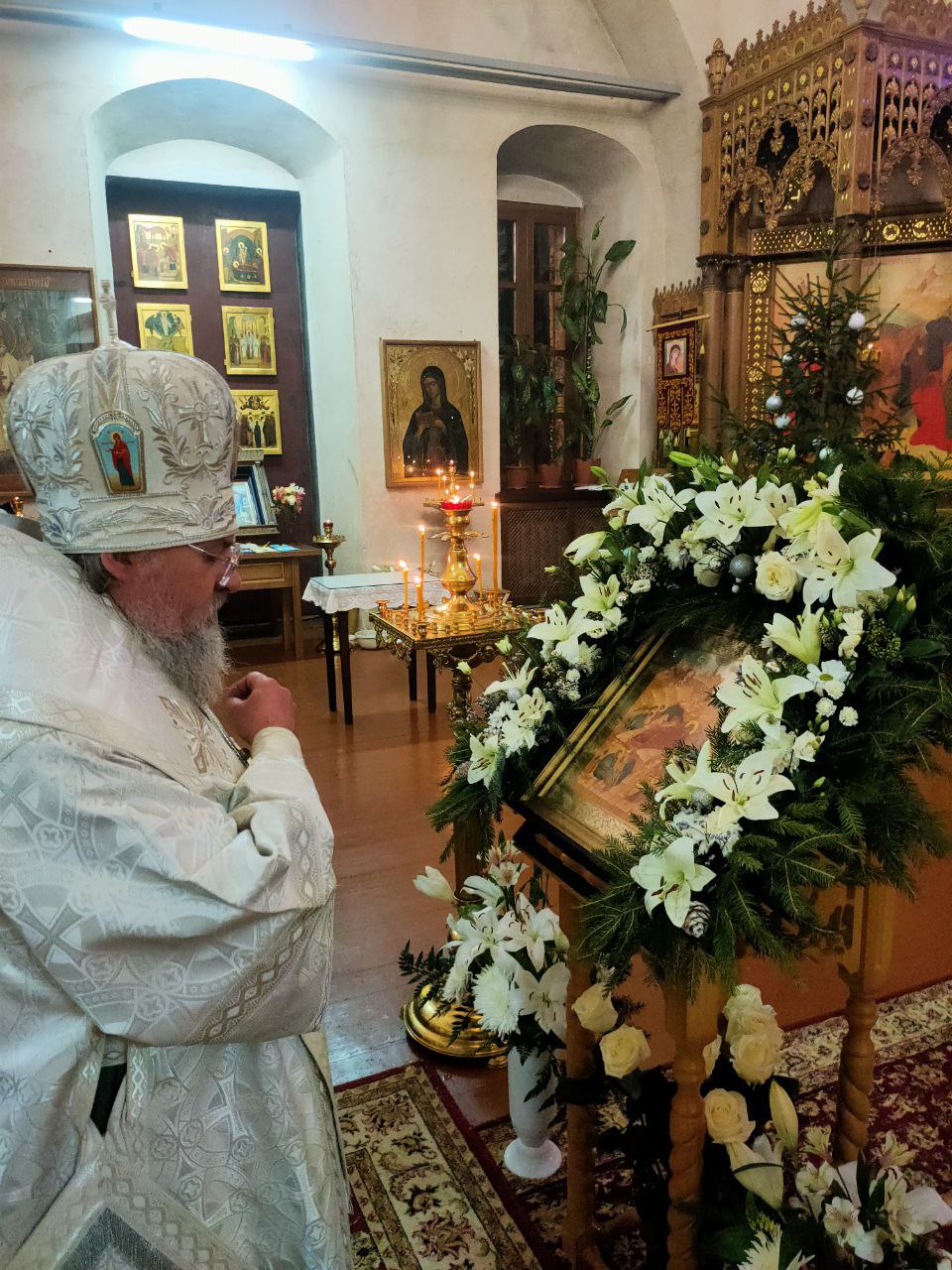 7 января. Рождество Господа Бога и Спаса нашего Иисуса Христа. Епископ Козельский и Людиновский Никита совершил ночную Божественную литургию в Успенском кафедральном соборе города Козельска. Архипастырю сослужили: иеромонах Паисий (Курмаз) – настоятель собора, протоиерей Антоний Хатунцев, иерей Елисей Тимофеев, иерей Евгений Чуркин, диакон Евгений Ковригин, диакон Дмитрий Лутков и иеродиакон Виталий (Павленко). По запричастном стихе епископ Никита огласил Рождественское послание Святейшего Патриарха Московского и всея Руси КИРИЛЛА. В завершении богослужения священнослужители, в центре храма, совершили славление праздника Рождества Христова, а затем владыка обратился к богомольцам с проповедью.