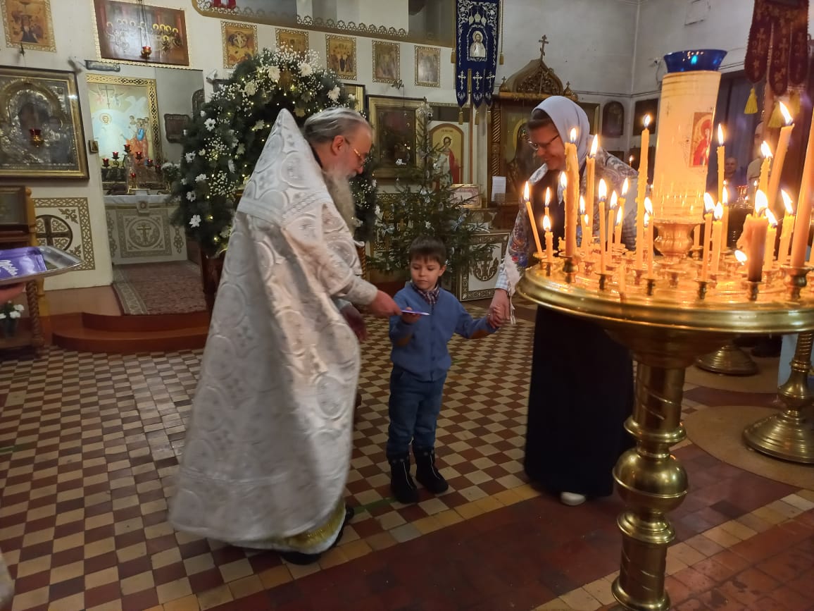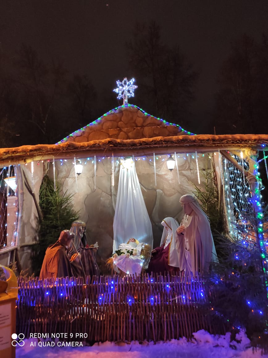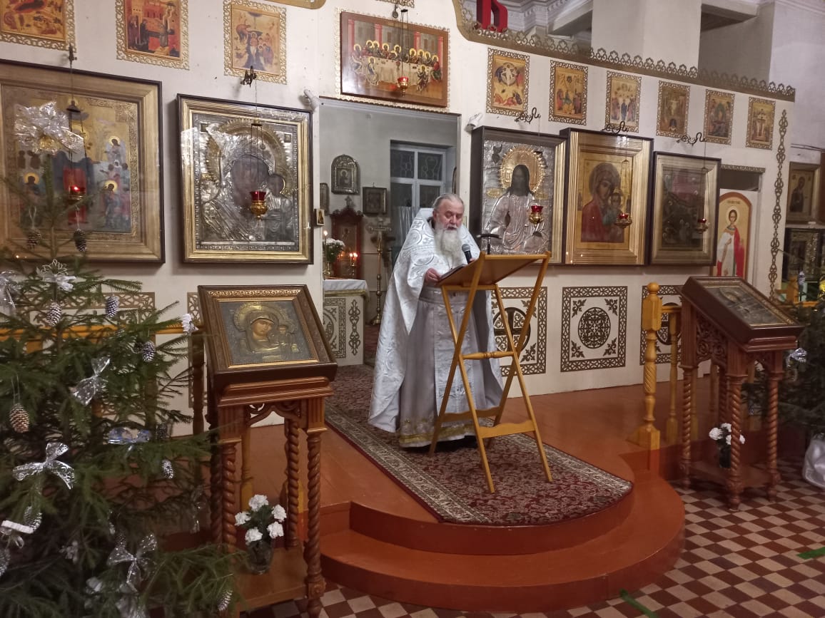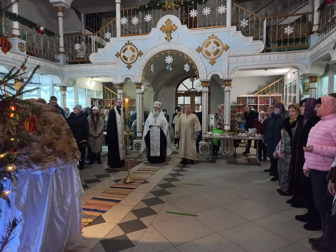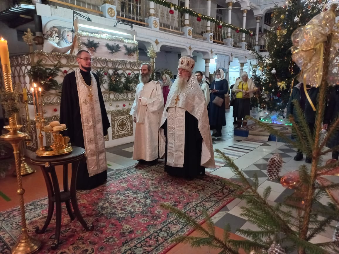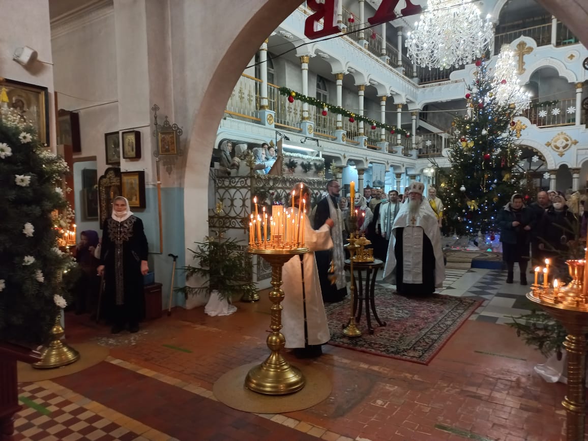 Рождественские торжества в Казанском соборе города Людиново начались праздничным всенощным бдением, которое вечером 6 января возглавил настоятель собора протоиерей Алексий Жиганов в сослужении клириков храма иерея Алексия Сначева и диакона Андрея Соколова. Во время полиелея на утрене духовенство в центре храма пред иконой Рождества пропело величание праздника, после чего было прочитано Евангельское зачало от Матфея, повествующее о рождении в мир Спаса Христа. Затем прихожане храма приложились к праздничному образу и помазались освященным елеем.  После вечернего богослужения, по доброй местной традиции Казанского собора, был совершен крестный ход вокруг храма с пением тропаря праздника. 7 января, в полночь, в Казанском соборе совершилась праздничная Божественная литургия. В храме к этому часу было особенно торжественно. Радость переполняла сердца людей, пришедших в эту светозарную ночь прославить родившегося Младенца Христа в главный храм города. Перед началом Божественной литургии протоиерей Алексий Жиганов огласил Рождественское послание Святейшего Патриарха Московского и всея Руси Кирилла архипастырям, пастырям и всем верным чадам Русской Православной Церкви, и Рождественское послание Преосвященнейшего Никиты, епископа Козельского и Людиновского. По окончании богослужения традиционно настоятель пригласил прихожан прославить Богомладенца пением колядок и Рождественских стихов. Самые смелые и подготовленные получили от настоятеля сладкие подарки.