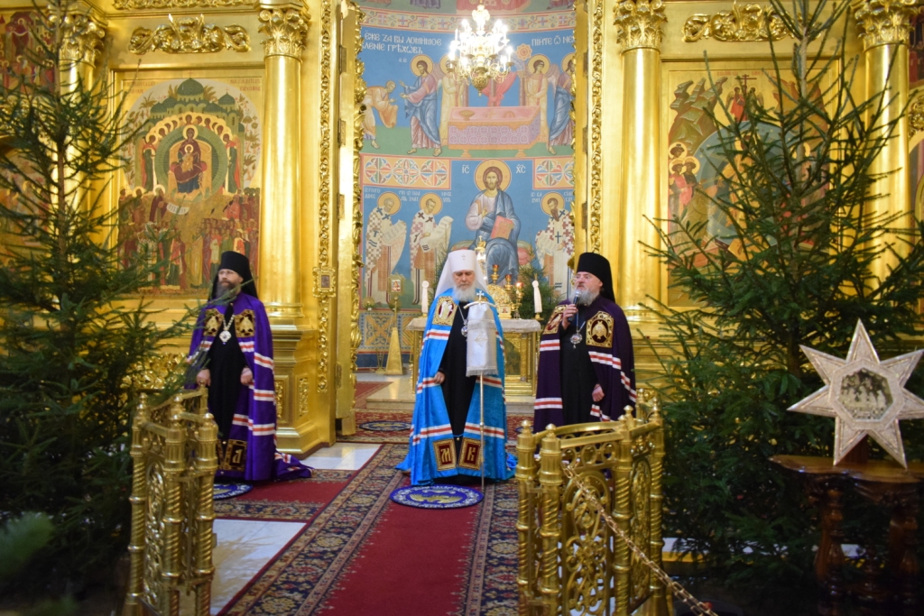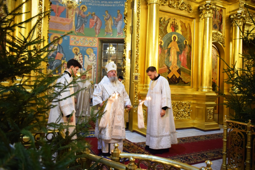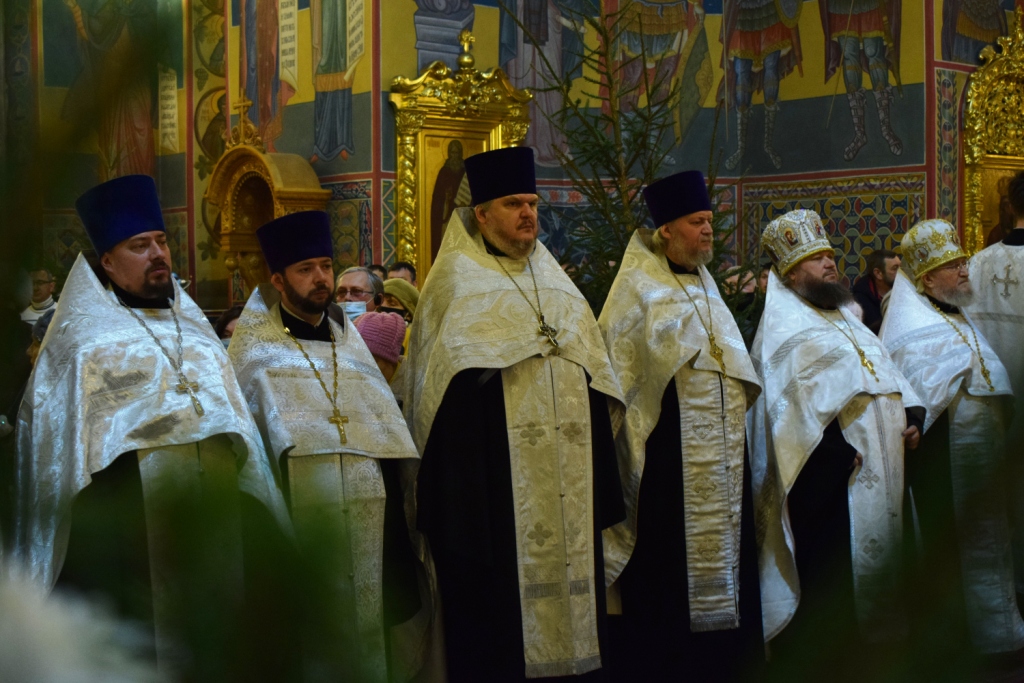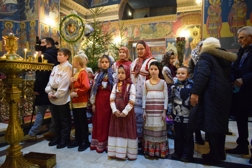 Вечером, 7 января, митрополит Калужский и Боровский Климент совершил великую вечерню в Свято-Троицком кафедральном соборе. Его Высокопреосвященству сослужили епископ Козельский и Людиновский Никита, епископ Тарусский Леонид, викарий Калужской епархии, а также духовенство Калужской митрополии. Во время вечернего богослужения был пропет Великий прокимен «Кто Бог Велий…» и прочитано Рождественское зачало Евангелия. По окончании великой вечерни собором духовенства был совершен чин славления праздника Рождества Христова. От лица архиереев Калужской митрополии, Главу митрополии поздравил епископ Козельский и Людиновский Никита. Епископ Никита пожелал Калужскому архипастырю благословенной помощи Божией в архиерейском служении и вручил подарок. Также митрополита Калужского и Боровского Климента с Рождеством Христовым поздравили: Губернатор Калужской области Владислав Валерьевич Шапша, Главный федеральный инспектор по Калужской области аппарата полномочного представителя Президента Российской Федерации в Центральном федеральном округе Игорь Федорович Князев, Председатель Законодательного Собрания Калужской области Геннадий Станиславович Новосельцев, представители администрации областной и городской власти. Свои рождественские поздравления митрополиту преподнесли и воспитанники Калужской православной гимназии. Они прославили Христа пением колядок и праздничных стихотворений. Затем глава Калужской митрополии обратился к собравшимся с архипастырским словом, в котором поздравил всех с Рождеством Господа Бога и Спаса нашего Иисуса Христа. После поздравительных слов митрополит Климент по традиции принял поздравления с праздником Рождества Христова от священнослужителей, монашествующих и мирян. Из рук главы архипастырей Калужской митрополии каждый получил в подарок календарь Калужской епархии на 2022 год, юные прихожане получили детский календарь на 2022 год и сладкие подарки.
