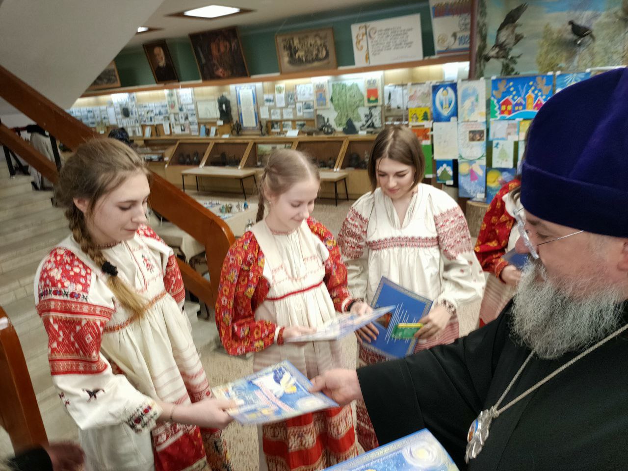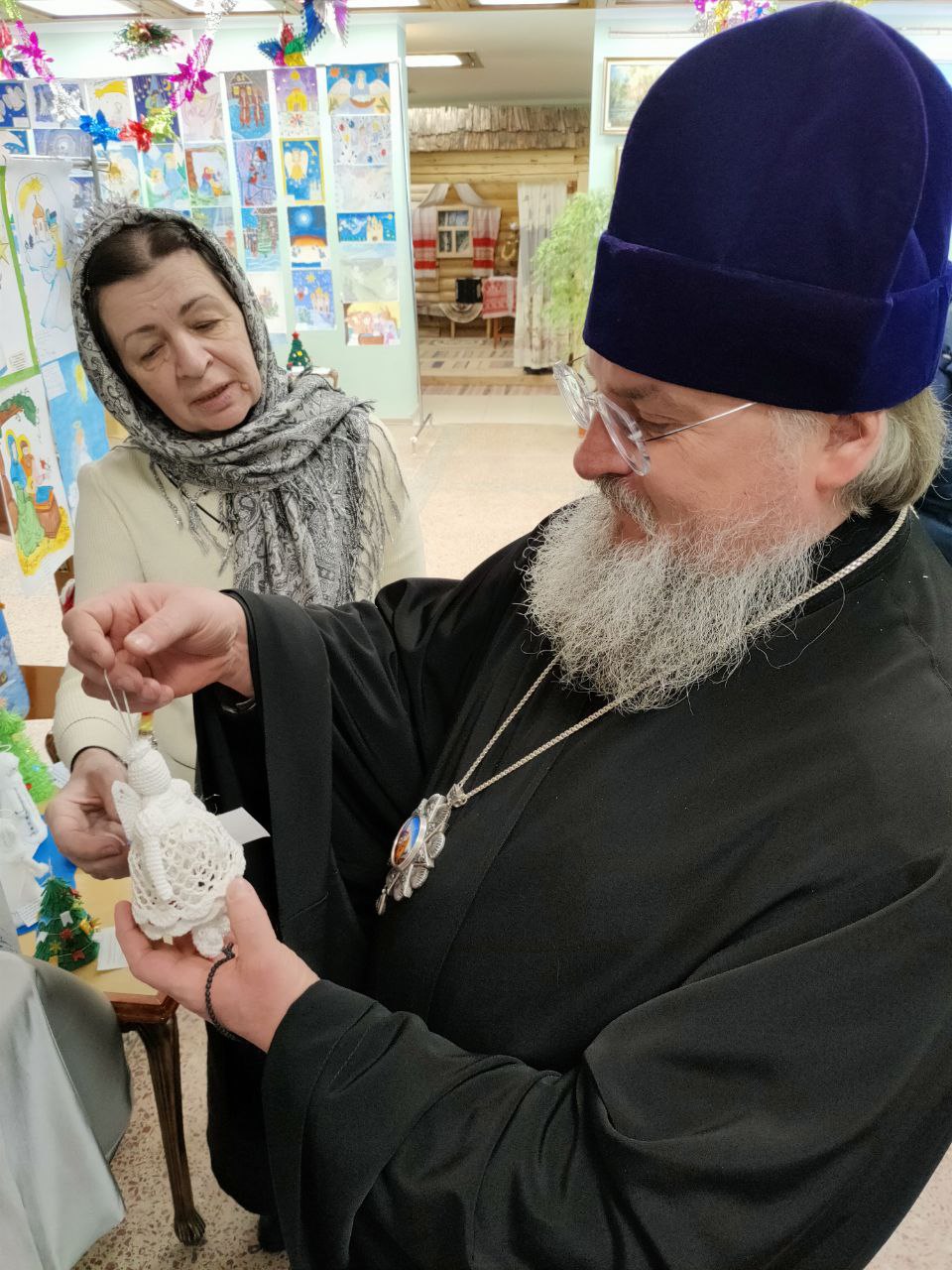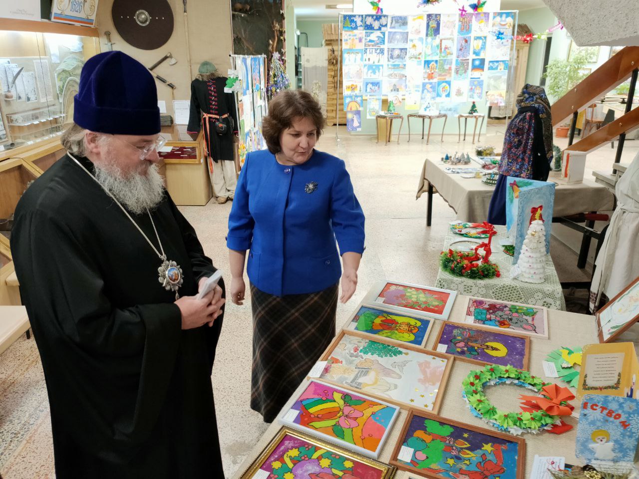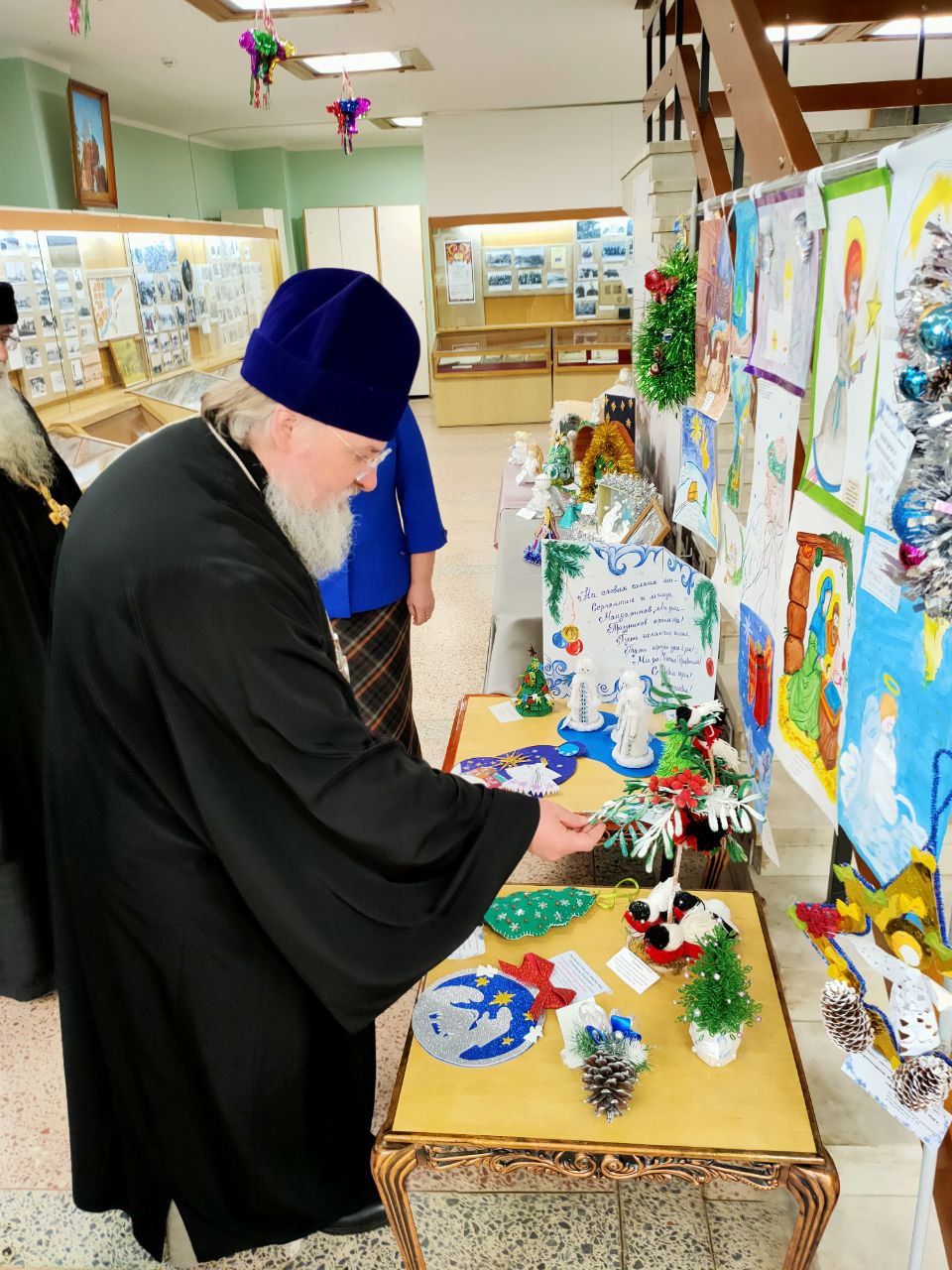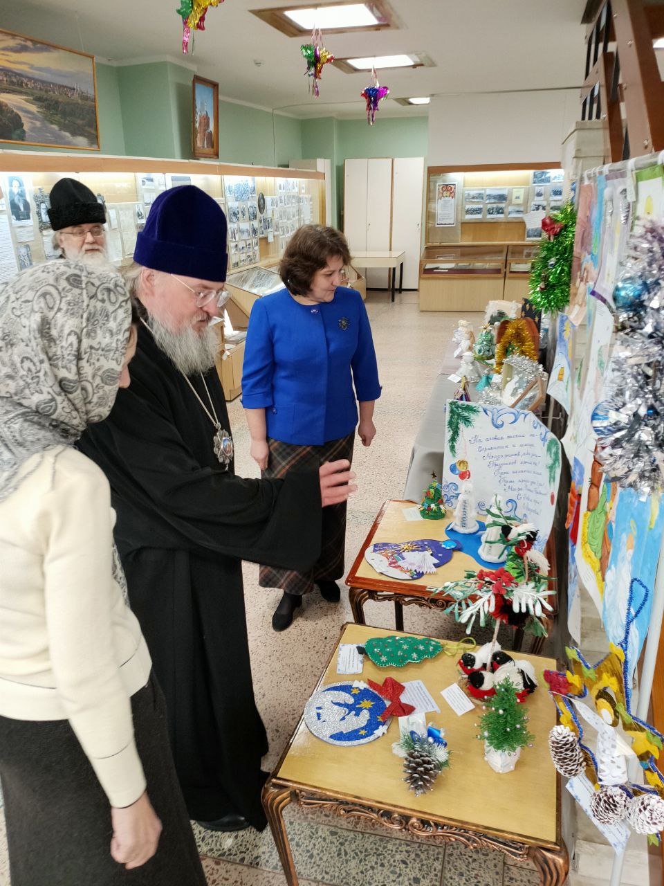 8 января, по завершении литургии в Казанском соборе города Людиново, епископ Никита вместе с настоятелем собора протоиереем Алексием Жигановым посетили выставку детского творчества «Встречаем Рождество!», организованную в городском музейно-краеведческом центре. Директор музея Башкирова Елена Витальевна познакомила гостей с выставкой и экспозициями музея. Выставка открыта для посещения с 1 января 2022 года и все праздничные дни на радость жителям города. Организатор выставки – воскресная школа «Светоч» Казанского собора при поддержке администрации музея. Представлено на выставку более 200 работ в номинациях «Рисунок» и «Декоративная работа». В выставке приняли участие воспитанники Воскресной школы «Светоч», дети из храма в честь Святого Праведного Лазаря, детские сады и школа – интернат города Людиново, а также детки из приюта «Рождественский» (их рисунки представлены в интернет – версии). Здесь удивительные Рождественские вертепы. В некоторых вертепах умельцы сделали подсветки. А какие ангелочки, и все разные. Ну а композиции праздничные и рисунки просто диво-дивное. Из года в год проводится эта замечательная выставка, но не иссякает фантазия и доброта людей. Дети вместе с взрослыми создают удивительные поделки, чтобы порадовать других и, конечно, подарить настоящее праздничное настроение от увиденного на выставке. Сколько любви вложено в работы, сколько фантазии и мастерства! Владыка познакомился с замечательными работами юных людиновцев, принявших участие в выставке, поблагодарил организаторов за заботу о детях и труды по устройству экспозиции.