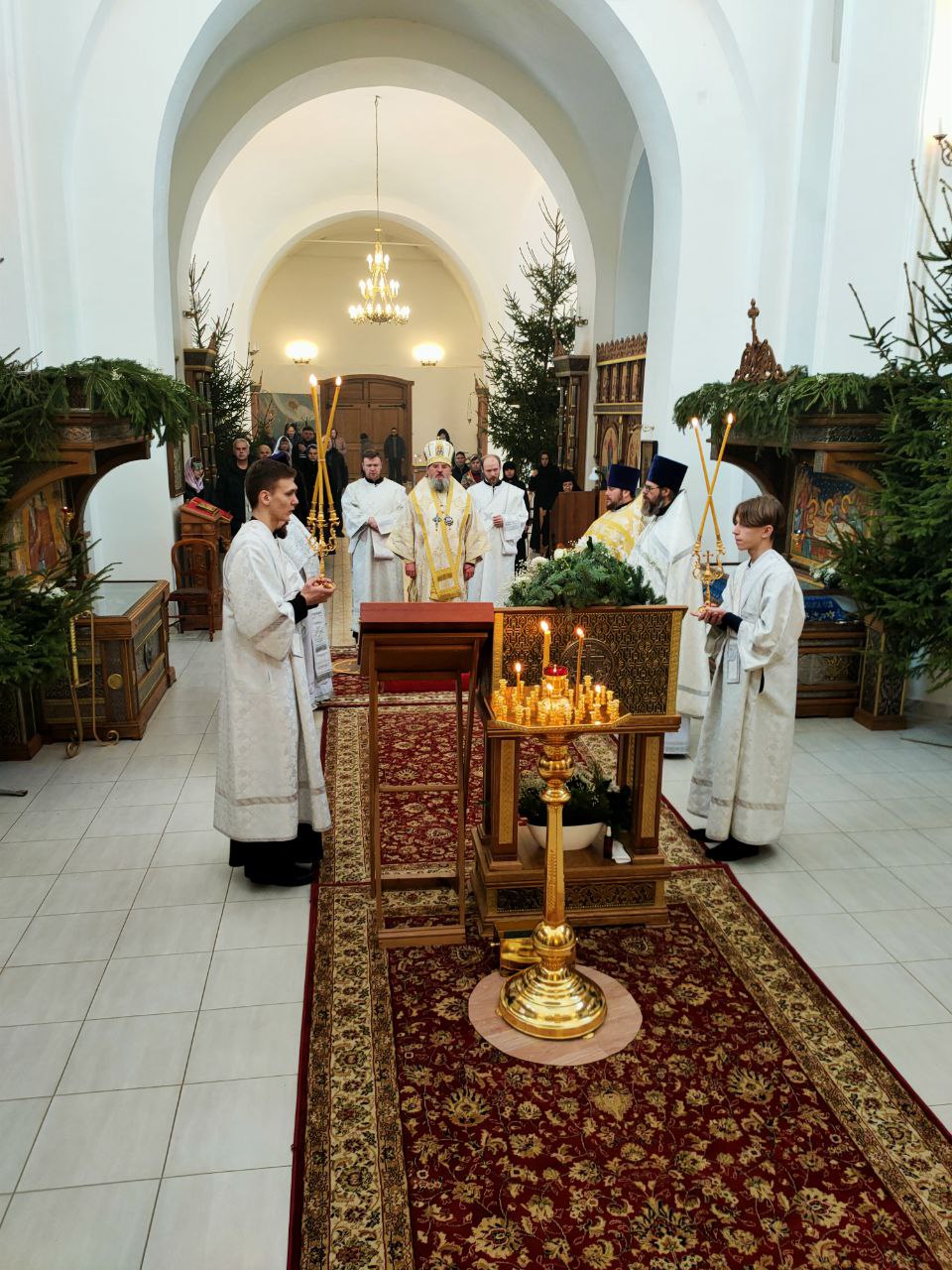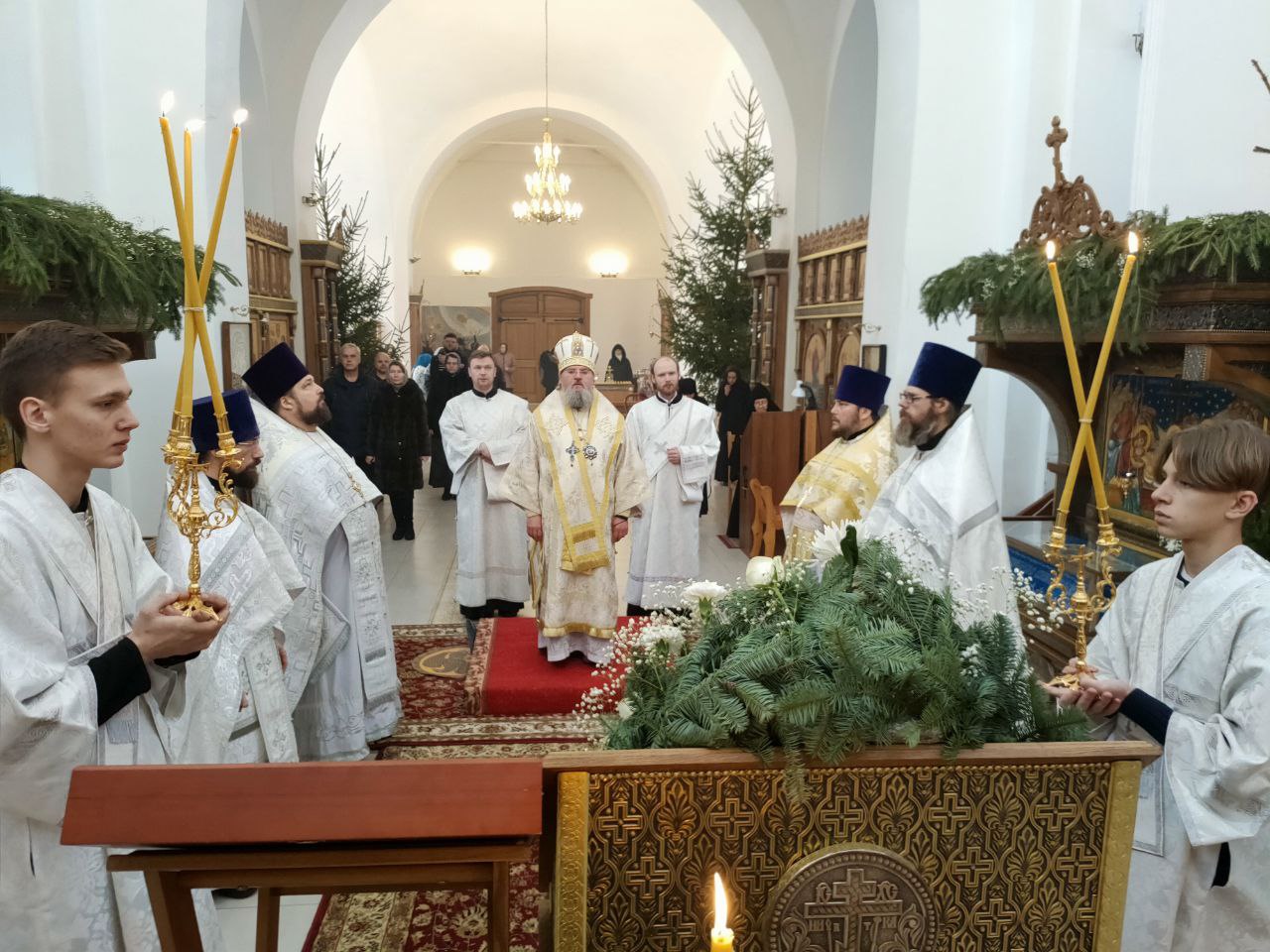 9 января. Неделя 29-я по Пятидесятнице. По Рождестве Христовом. Епископ Козельский и Людиновский Никита совершил Божественную литургию в Успенском соборном храме женского монастыря Успенская Феклина пустынь в селе Сенино Козельского района. Архипастырю сослужили: благочинный Козельского округа протоиерей Владимир Бахаев, протоиерей Антоний Хатунцев, иерей Антоний Лунин, иерей Алексий Боков, диакон Евгений Ковригин, иеродиакон Лука (Старостин) и иеродиакон Алексий (Гудименко). За богослужением молились духовник обители архимандрит Антоний (Гаврилов), старшая сестра монахиня Николая (Александрова) с насельницами монастыря, богомольцы, прибывшие на литургию. В завершении богослужения священнослужители в центре храма пред праздничными иконами совершили славление праздника Рождества Христова, а затем владыка обратился к богомольцам с архипастырским словом. По выходе из храма на могиле почившей строительныцы монастыря игумении Виталии (Кочетовой) были совершены заупокойные молитвословия.