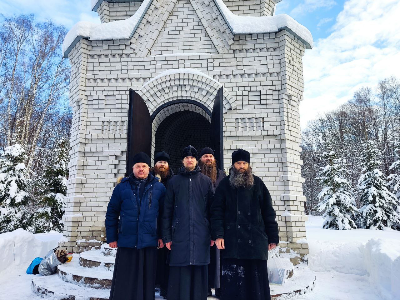 8 января, в день празднования Собора Пресвятой Богородицы, братия монастыря Оптина Пустынь совершила поездку в Тульскую область на территорию «Теснинских лагерей». От Козельской епархии приняли участие в поездке руководитель информационного отдела, настоятель Преображенского храма села Нижние Прыски, иерей Тихон Худяков и клирик Успенского собора города Козельска иерей Евгений Чуркин.