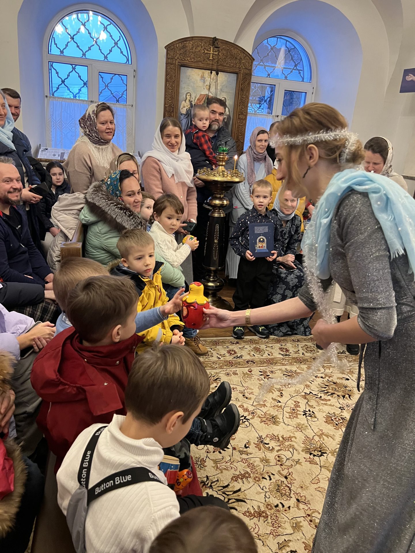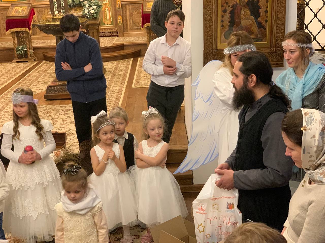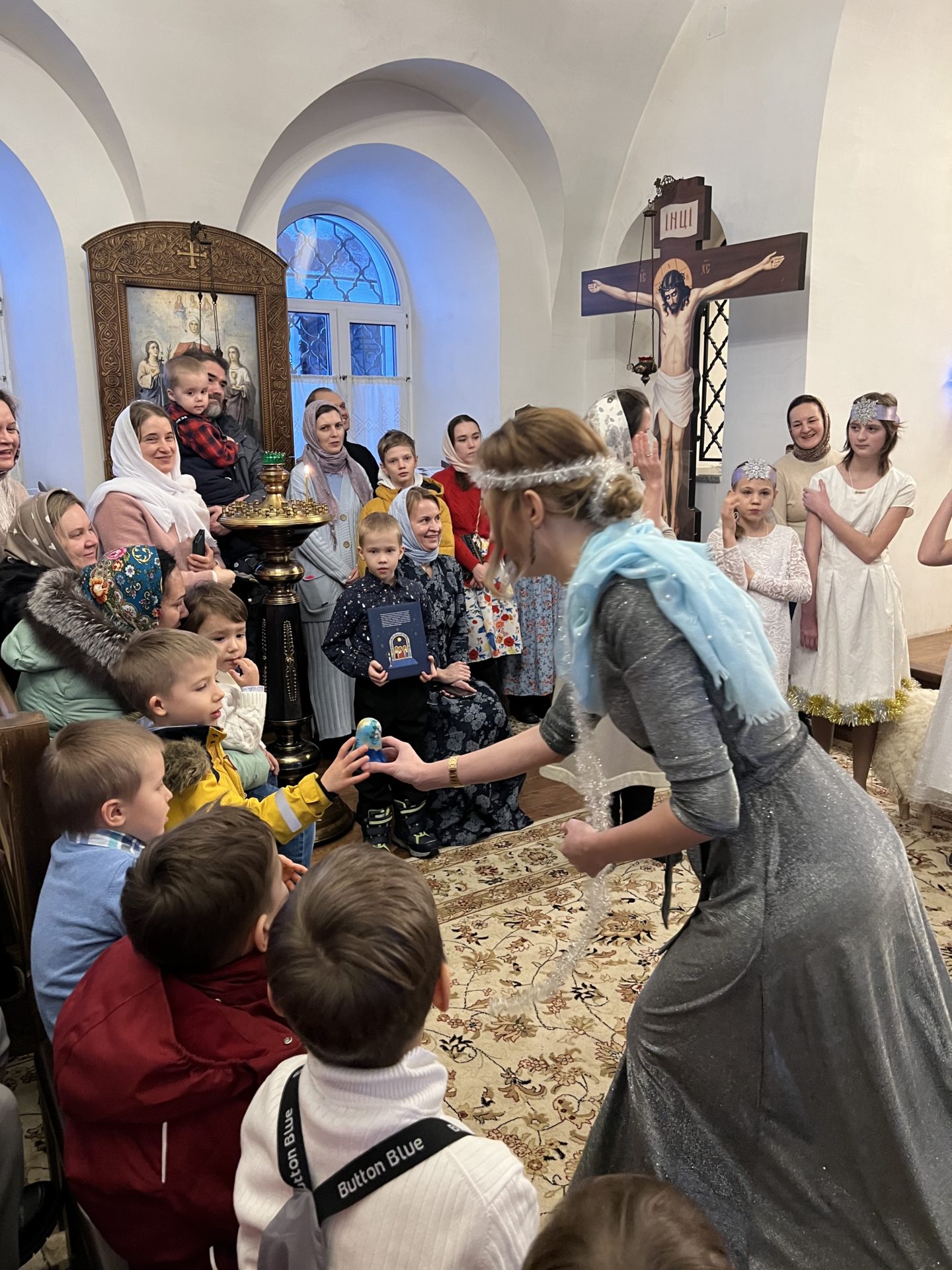 В селе Губино в храме Зачатия Иоанна Предтечи 7-го января воспитанники воскресной школы и преподаватели подготовили для родителей и гостей села небольшое рождественское представление — спектакль. Мальчики умело исполнили роли пастухов в простых костюмах, а потом быстро переодевшись в особые наряды, исполнили роли волхвов. А девочки были снежинками, которые расспрашивали про Рождество Христово у Ангела и дополняли действия спектакля рождественскими колядками. Во время действия спектакля выключался свет горели только свечи и Вифлеемская звезда. По окончании спектакля детки, которые были гостями на нашем утреннике, рассказали стихотворения, которые готовили к Рождеству. А потом дети их родители поучаствовали в викторине по Закону Божьему и те, кто правильно отвечал получили в подарок матрешки или Евангелие для детей. По окончании утренника, настоятель храма иерей Максим Изопов поблагодарил организаторов детского мероприятия, поздравил детей и родителей в Рождеством Христовым и вручил каждому ребенку сладкий праздничный подарок.