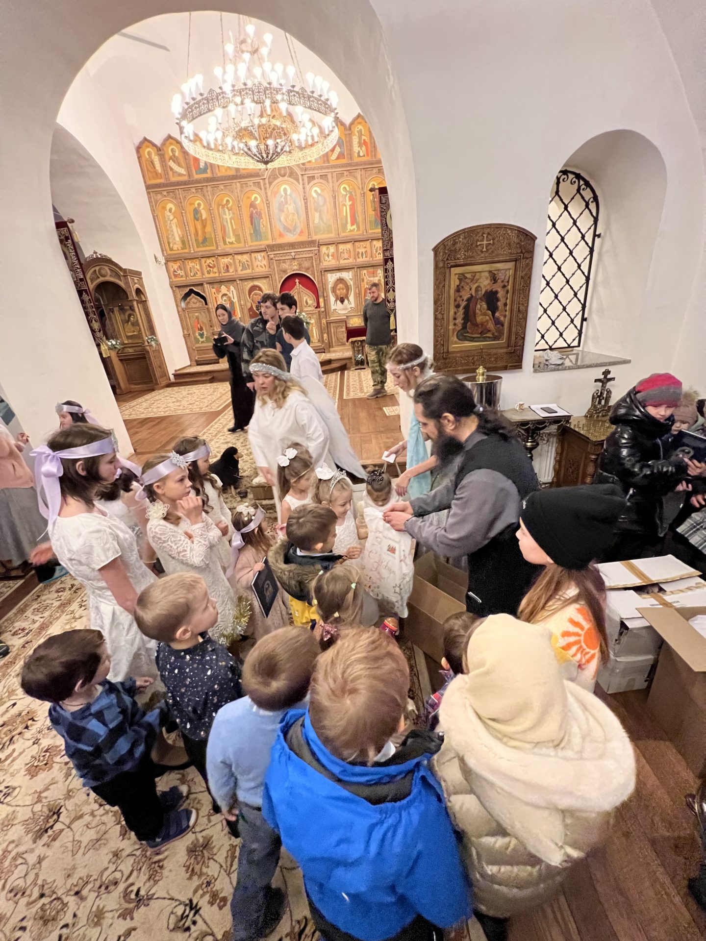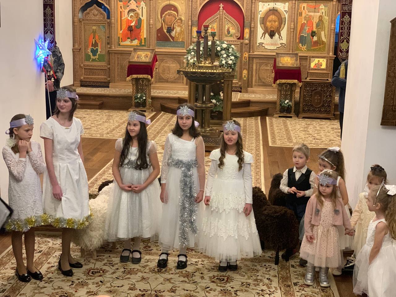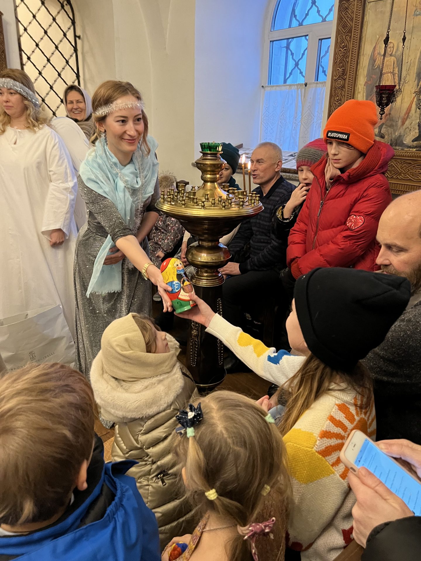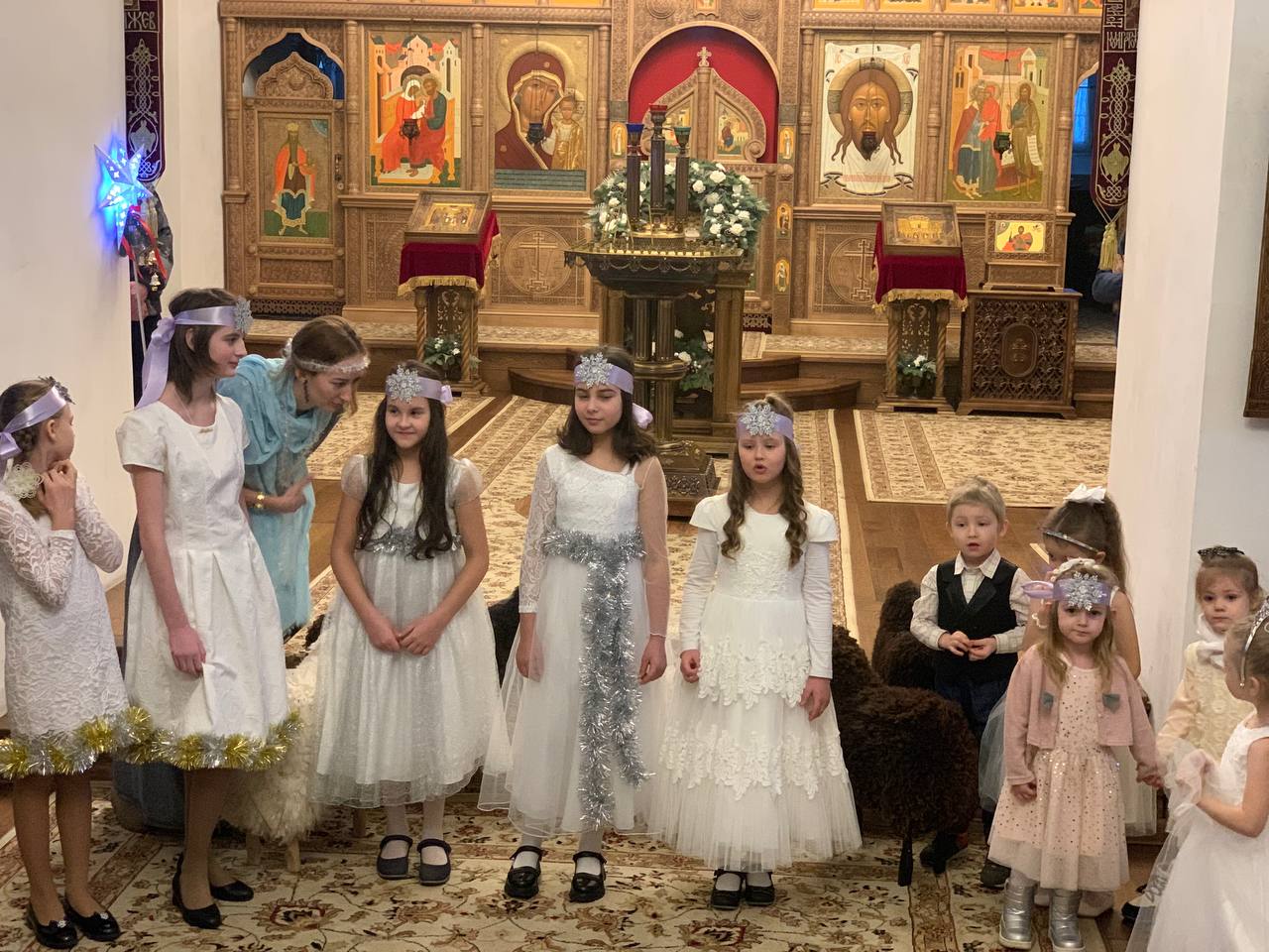 В селе Губино в храме Зачатия Иоанна Предтечи 7-го января воспитанники воскресной школы и преподаватели подготовили для родителей и гостей села небольшое рождественское представление — спектакль. Мальчики умело исполнили роли пастухов в простых костюмах, а потом быстро переодевшись в особые наряды, исполнили роли волхвов. А девочки были снежинками, которые расспрашивали про Рождество Христово у Ангела и дополняли действия спектакля рождественскими колядками. Во время действия спектакля выключался свет горели только свечи и Вифлеемская звезда. По окончании спектакля детки, которые были гостями на нашем утреннике, рассказали стихотворения, которые готовили к Рождеству. А потом дети их родители поучаствовали в викторине по Закону Божьему и те, кто правильно отвечал получили в подарок матрешки или Евангелие для детей. По окончании утренника, настоятель храма иерей Максим Изопов поблагодарил организаторов детского мероприятия, поздравил детей и родителей в Рождеством Христовым и вручил каждому ребенку сладкий праздничный подарок.