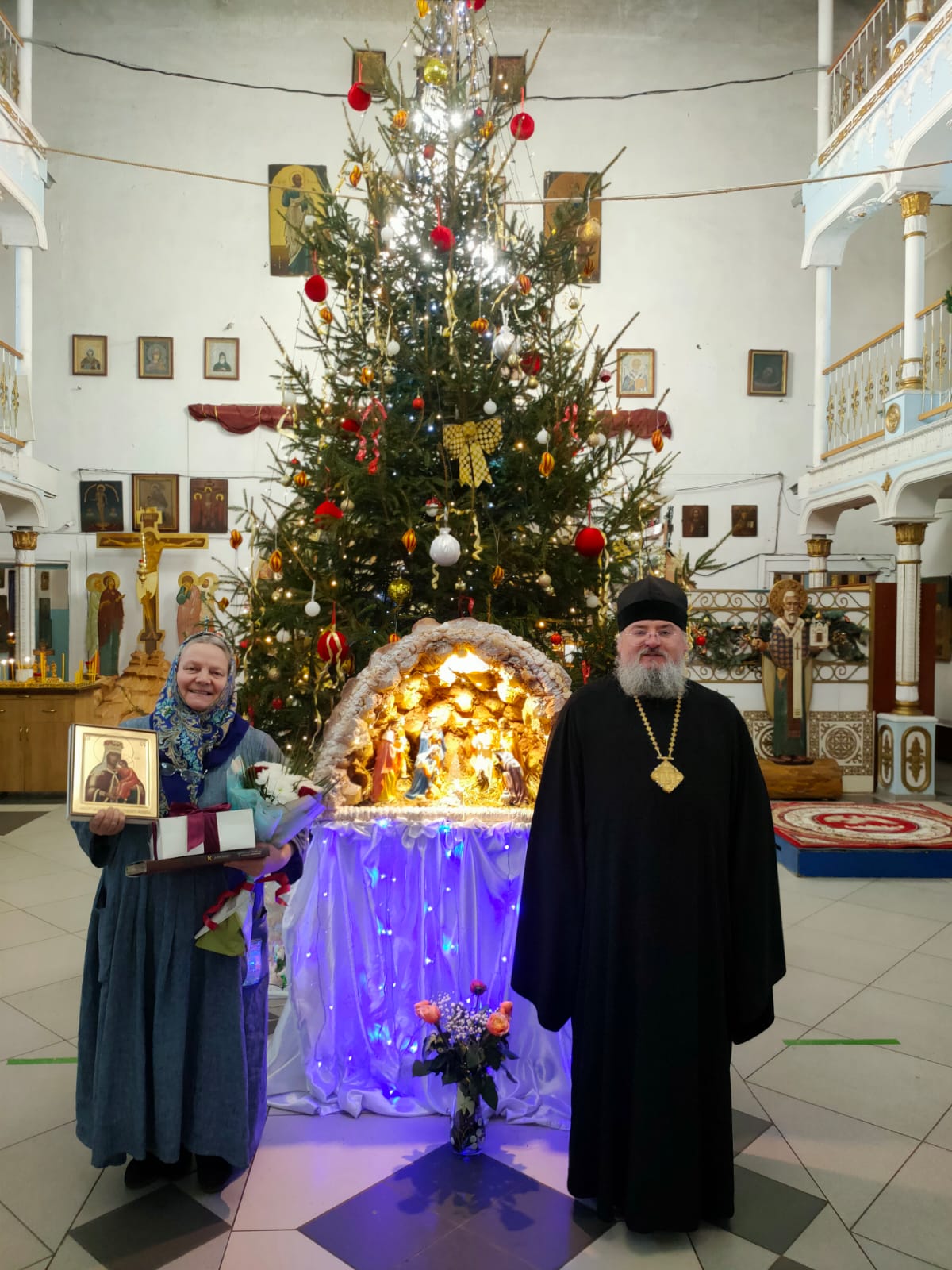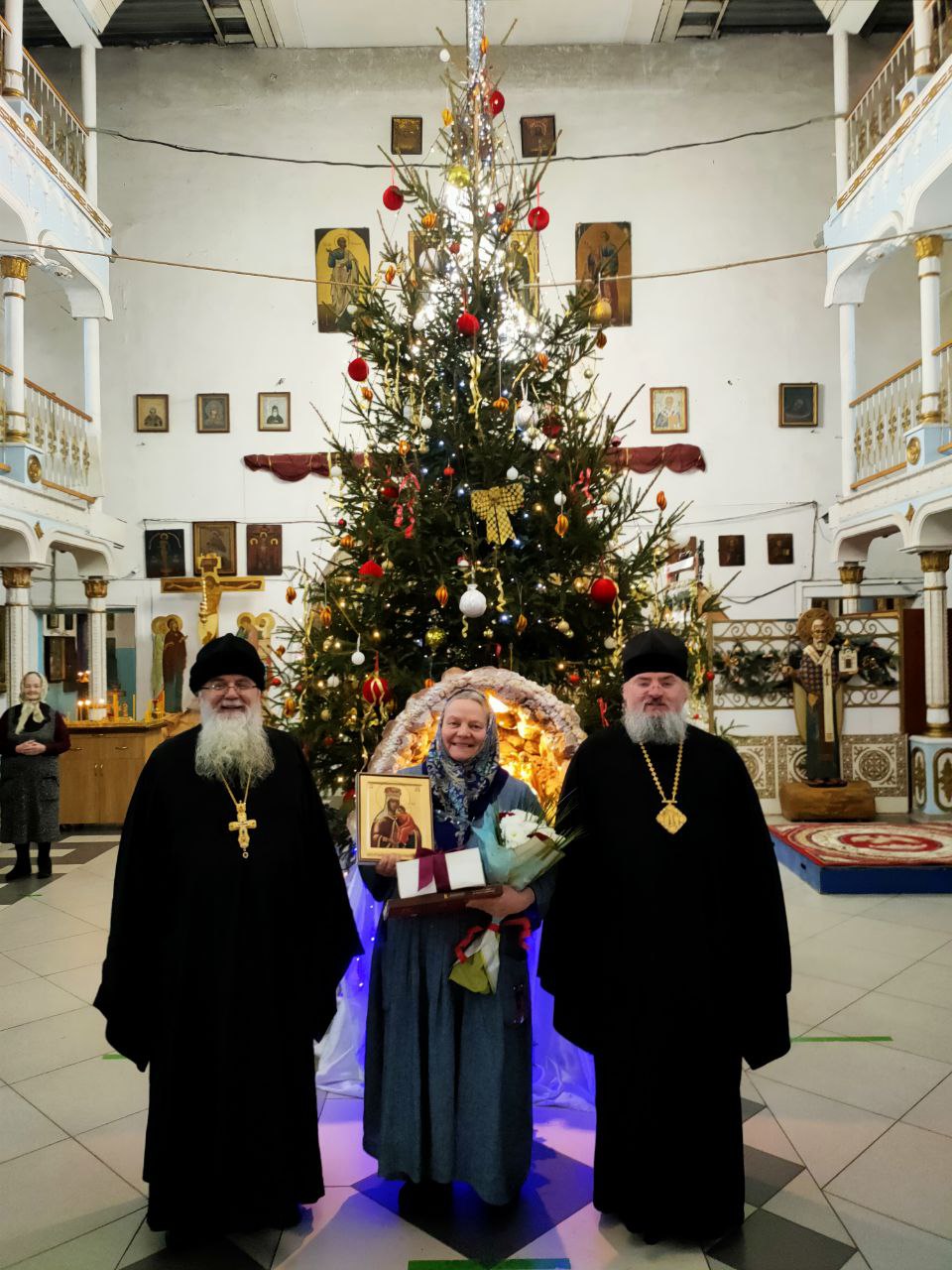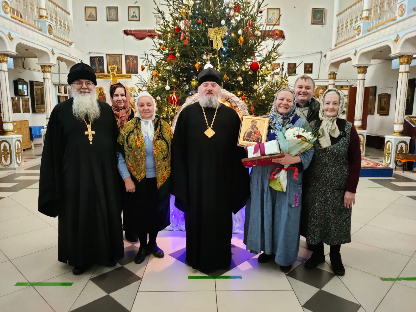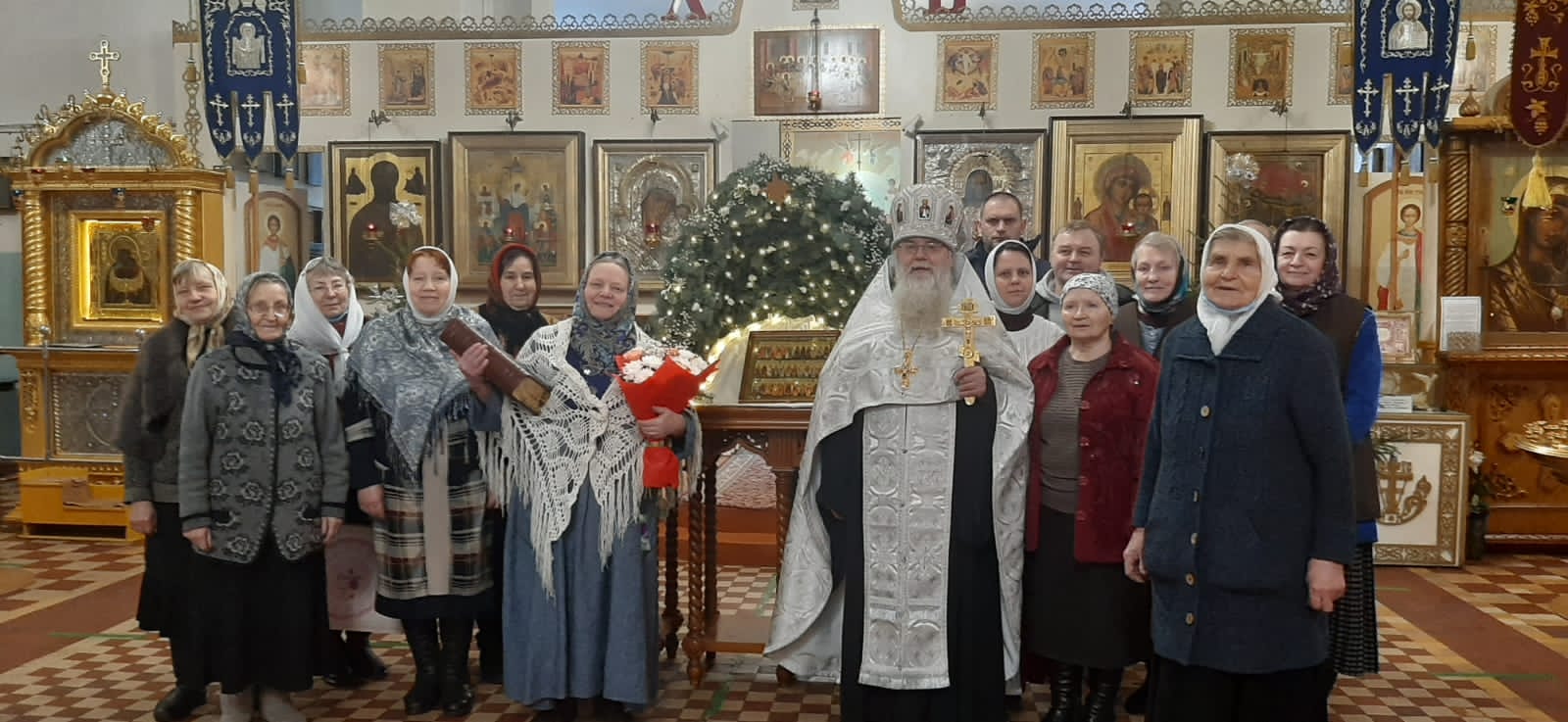 Его Преосвященство преподнес в дар Ольге Дмитриевне икону Божией Матери, именуемой «Людиновская», букет цветов и сладкие подарки; тепло и от души пожелав и дальше достойно нести послушание старосты в Казанском соборе, во всем помогая приходу и настоятелю, отцу Алексию.