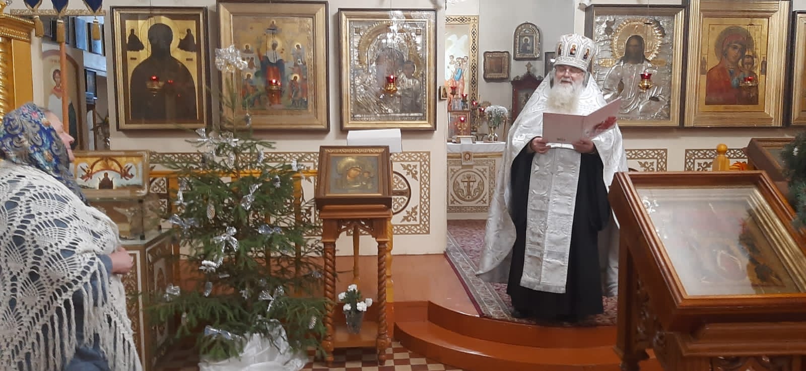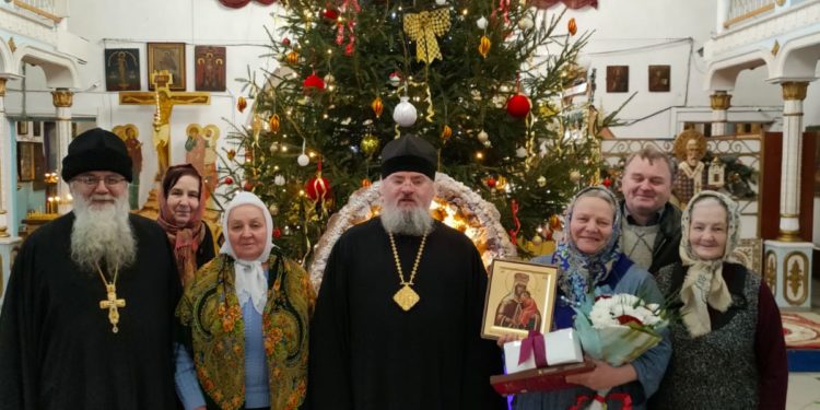 Владыка поздравил всех в праздником Обрезания Господня, а старосту собора — с юбилеем, поблагодарив за праведные труды для блага Казанского собора.