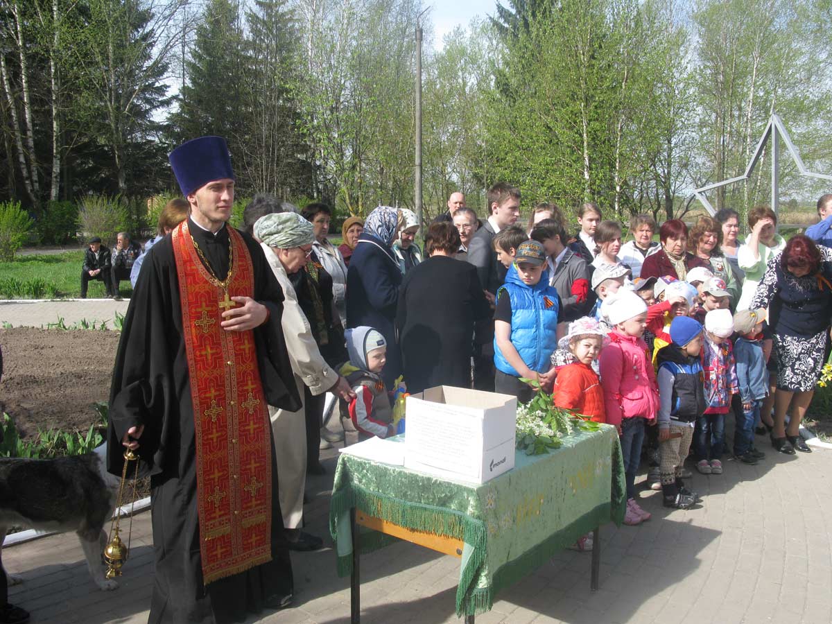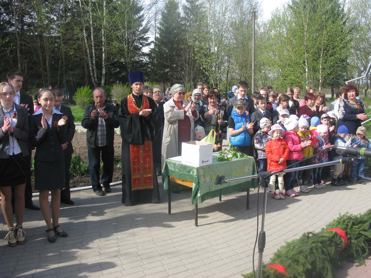 Священнослужитель обратился со словами поздравления с Днем великой победы, поздравил ветеранов и всех присутствующих с праздником. Далее состоялся митинг и выступление школьного ансамбля, посвященные дню победы.