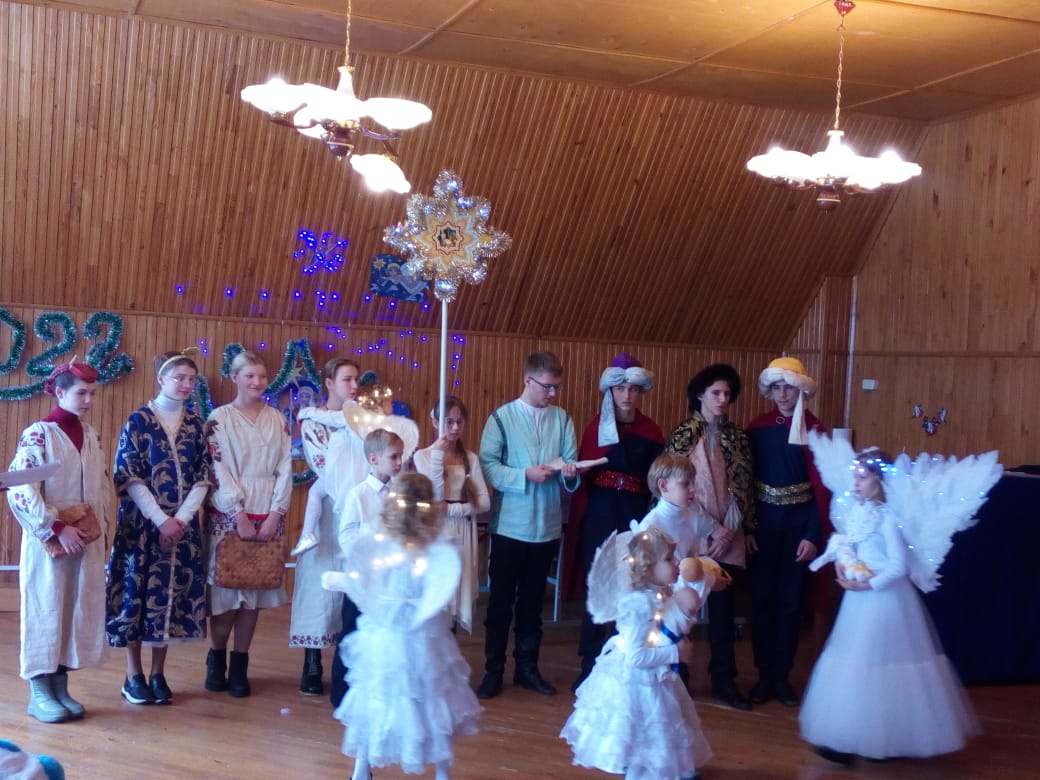 Свою историю о Христе наши колядовщики смогли показать и на районном празднике «Рождественская звезда». Ребята читали стихи, сочинённые семьёй Павловых, спели тропарь и кондак Рождеству, колядки. А затем повеселились вместе со всеми ребятами, пришедшими на праздник.