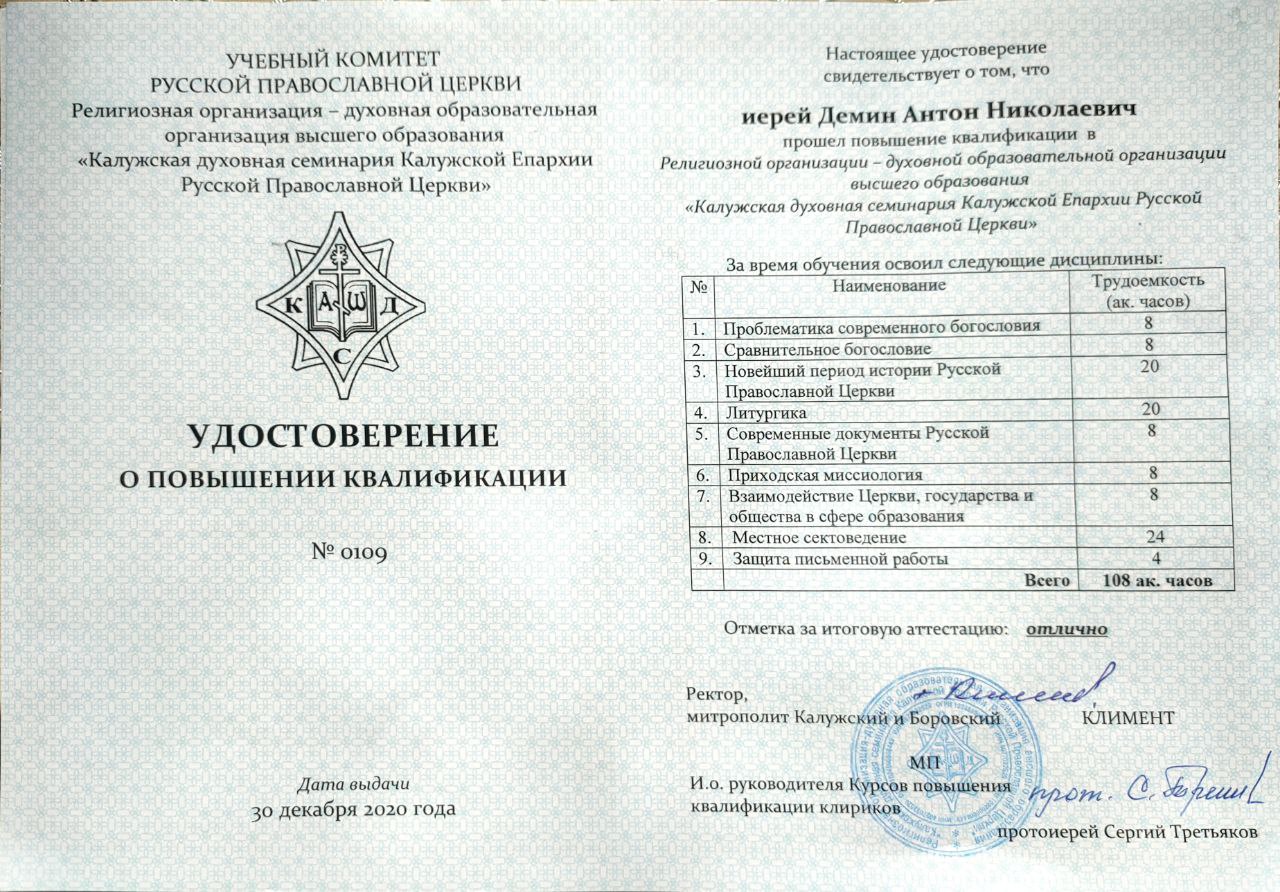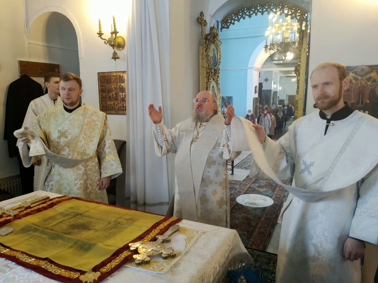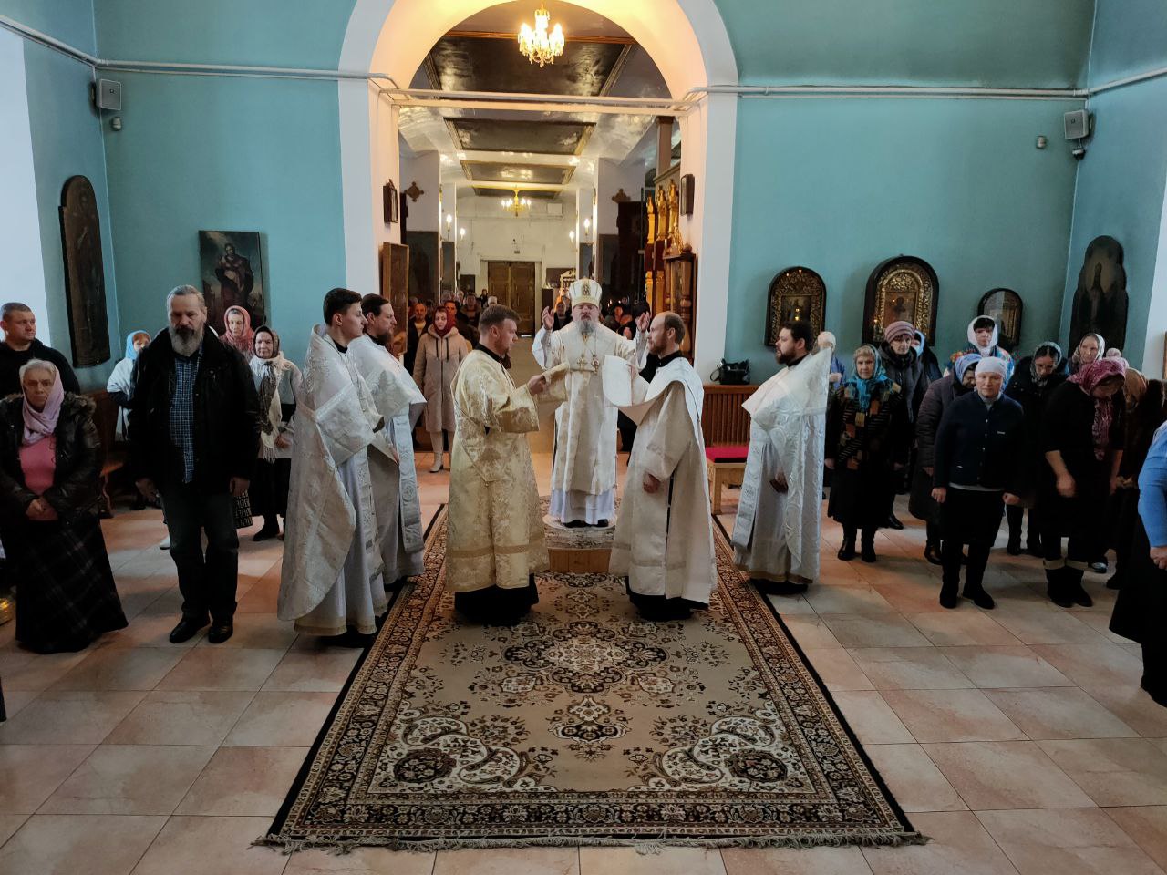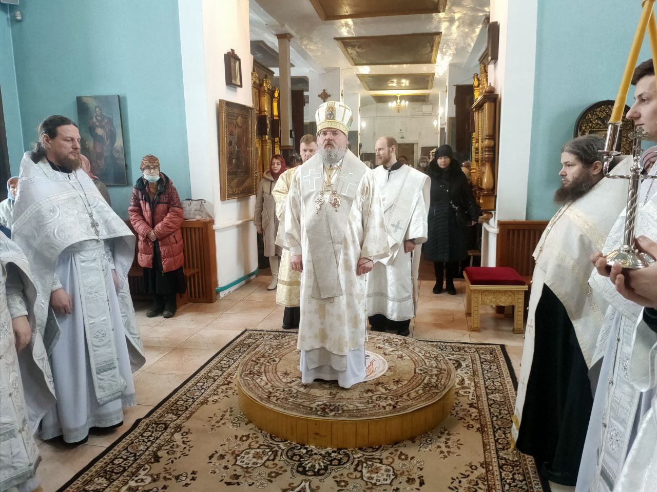23 января. Неделя 31-я по Пятидесятнице. Епископ Козельский и Людиновский Никита возглавил служение Божественной литургии в храме Смоленской иконы Божией Матери города Сухиничи. Архипастырю сослужили: благочинный округа, настоятель храма протоиерей Алексий Казаков, иерей Антоний Демин, иерей Филипп Лисенков, диакон Евгений Ковригин и иеродиакон Лука (Старостин). По отпусте литургии священнослужители совершили славление праздника Богоявления, а затем владыка обратился к прихожанам с архипастырским словом. Епископ Никита вручил двум клирикам благочиния: протоиерею Александру Вейс и иерею Антонию Демину свидетельства об успешном прохождении осенью прошлого года Курсов повышения квалификации для священнослужителей, организованных Калужской духовной семинарией.