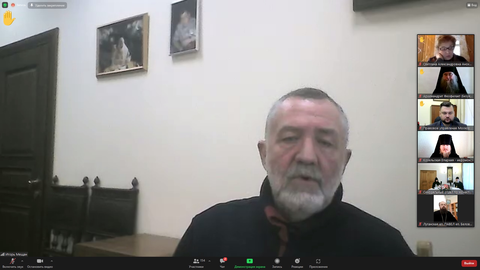 Далее И.В. Мещан кратко рассказал о проходившем осенью 2021 года IX Международном фестивале православных СМИ «Вера и Слово», который собрал более 300 человек из разных епархий и монастырей Русской Православной Церкви и других Поместных Церквей. По итогам форума Синодальный информационный отдел по взаимоотношениям Церкви с обществом и СМИ получил хорошие отзывы о работе мастер-классов, посвященных присутствию Церкви в социальных сетях, и готов предложить ответственным за информационную работу в монастырях пройти такого рода обучение дистанционно. Курсы по дистанционному обучению ответственных за информационную работу в монастырях планируется провести весной 2021 года.