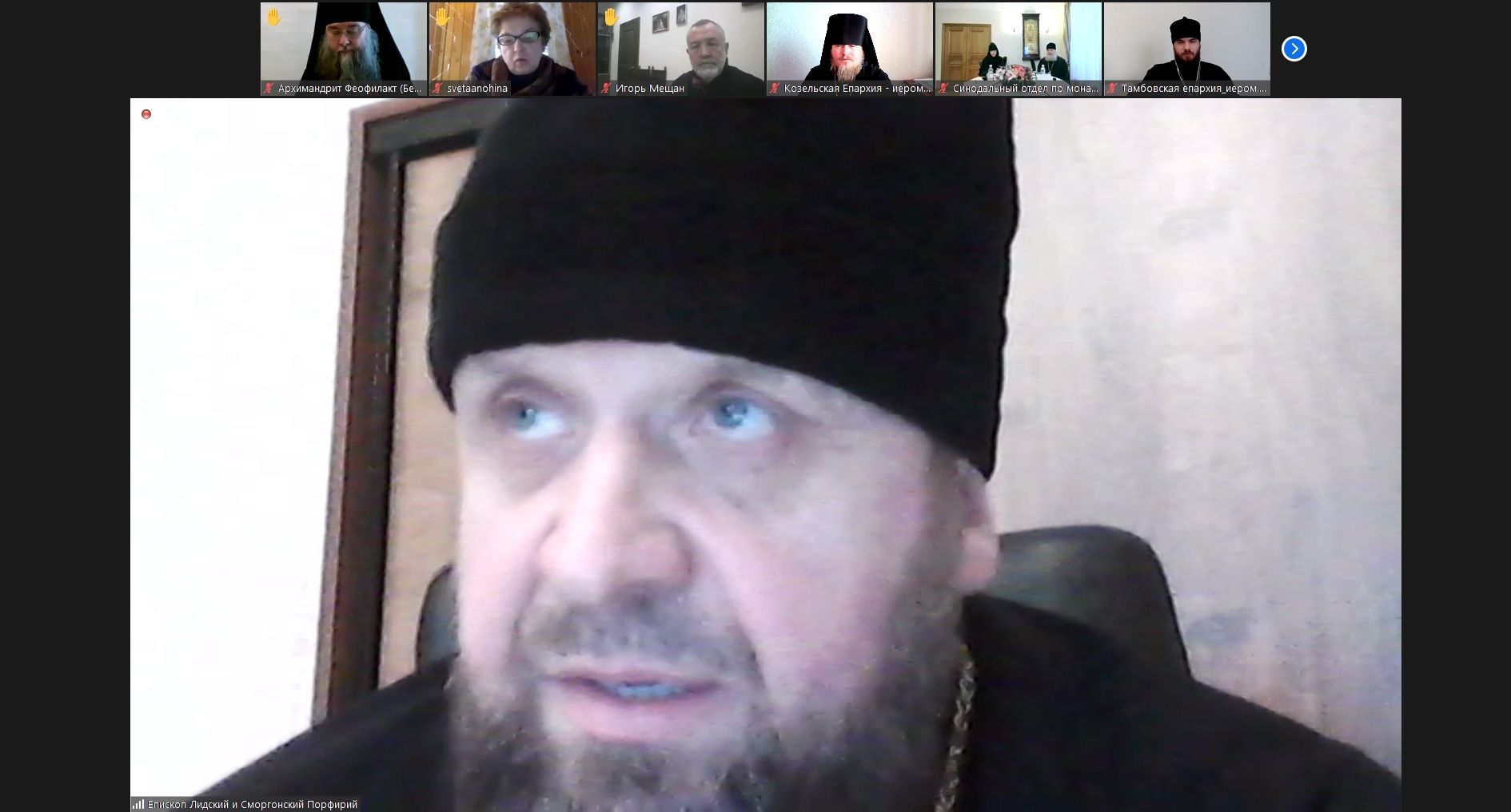 Епископ Лидский и Сморгонский Порфирий, председатель Синодального отдела по делам монастырей и монашества Белорусской Православной Церкви рассказал, какие темы монастырской жизни обсуждались 2 декабря 2021 года на заседании монашеской секции VII Белорусских Рождественских чтений «Аз есмь путь, истина и жизнь» (Ин.16, 6). О непреходящей ценности Евангелия и жизни во Христе. Мероприятие было организовано Синодальным отделом по делам монастырей и монашества БПЦ и проходило под председательством митрополита Минского и Заславского Вениамина, патриаршего экзарха всей Белоруссии, на базе Минской духовной семинарии в онлайн формате. По словам епископа Порфирия, «участники смогли обсудить ряд вопросов, волнующих современных иноков, и единодушно выразили надежду на возможность молитвенного и душеполезного общения в будущем». Затем владыка поделился впечатлением от прозвучавших на заседании выступлений, в которых нашел отражение личный духовный опыт докладчиков.
