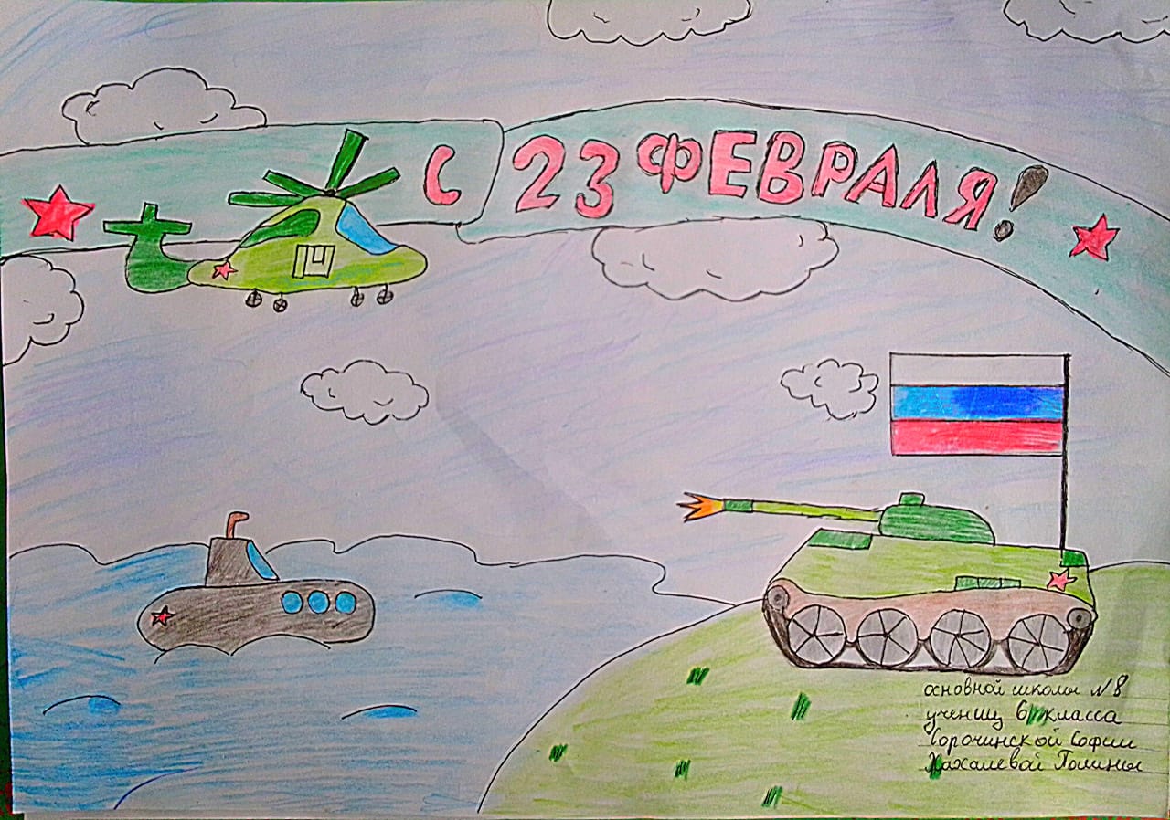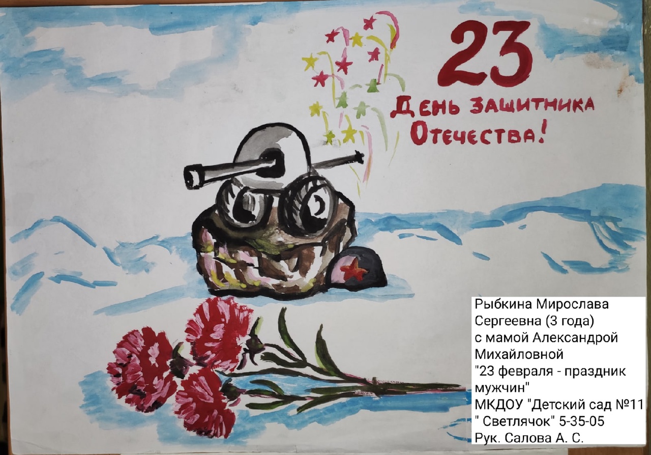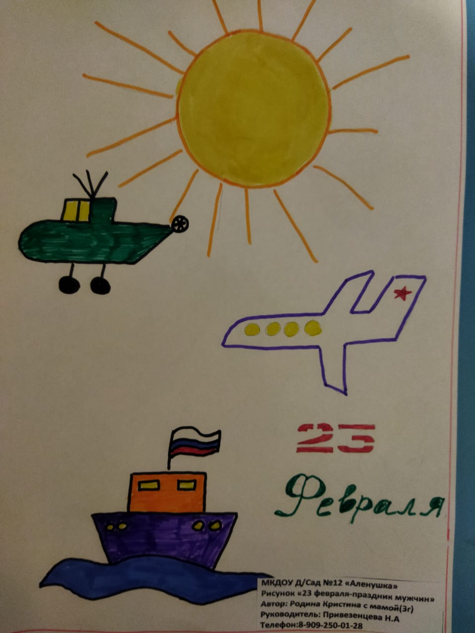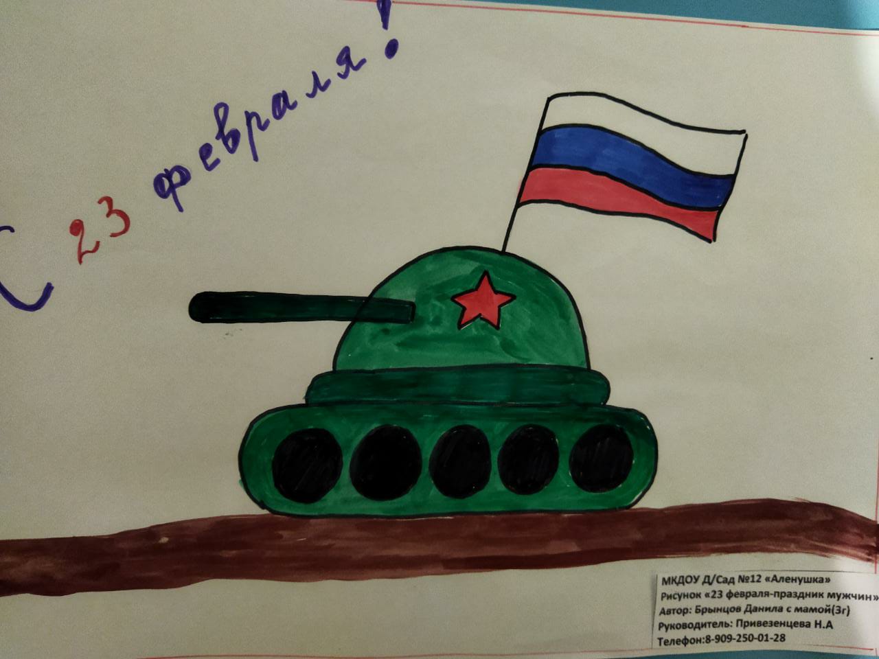 Участникам было предложено выполнить работы в виде рисунка по тематике праздника. Также участникам были предложены некоторые темы рисунков: «23 февраля – праздник мужчин», «Мой папа служит России», «Буду как папа», «Они защищали наше Отечество».