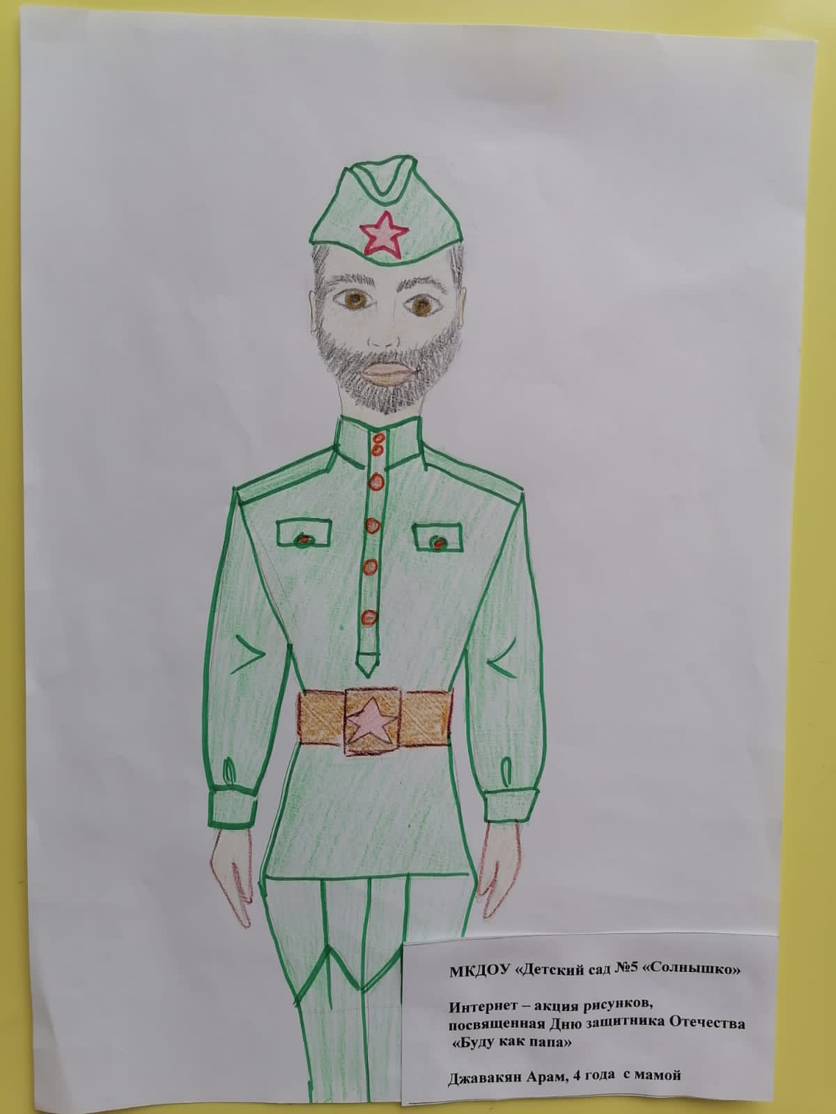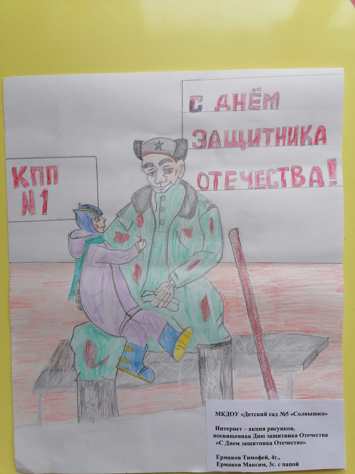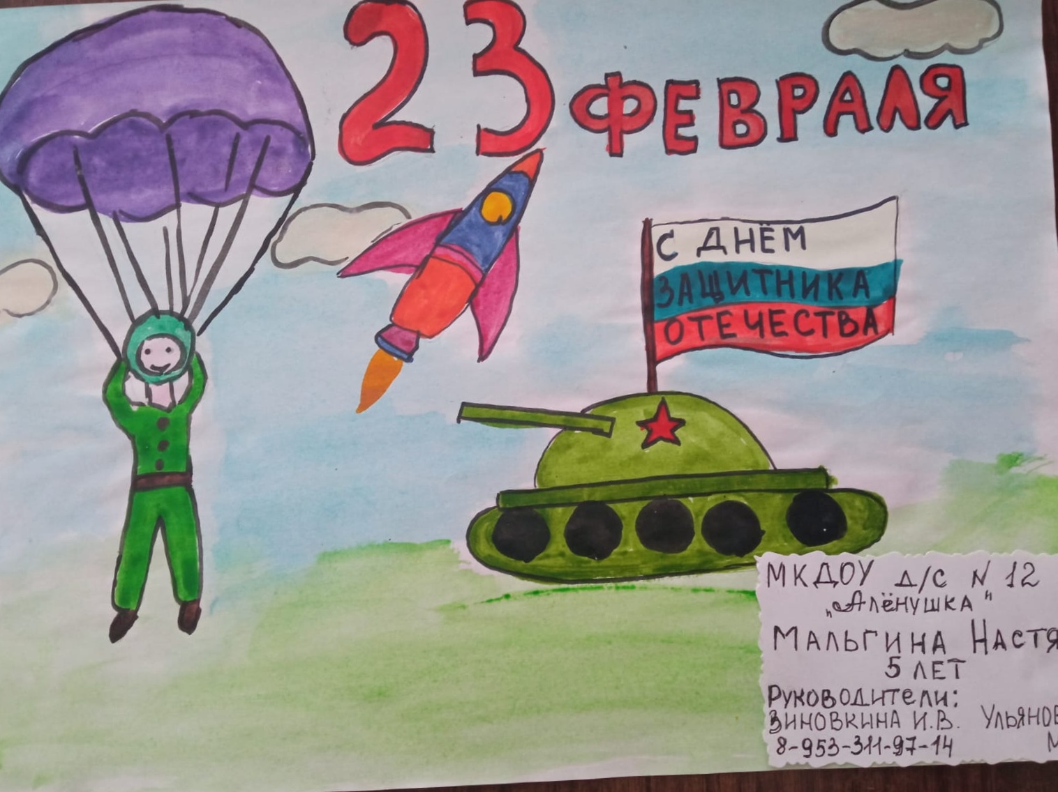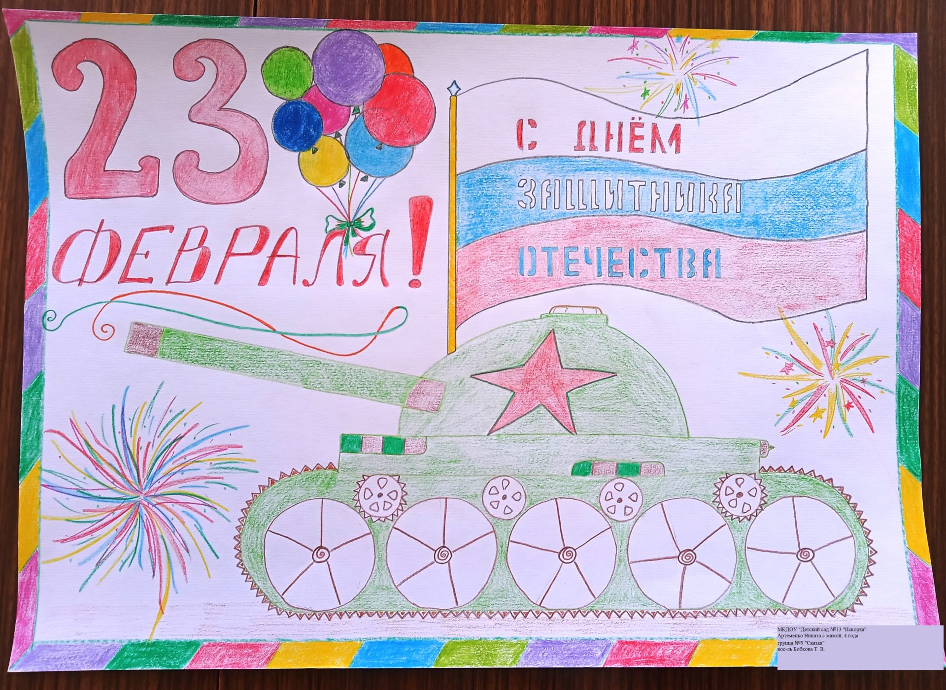 Участникам было предложено выполнить работы в виде рисунка по тематике праздника. Также участникам были предложены некоторые темы рисунков: «23 февраля – праздник мужчин», «Мой папа служит России», «Буду как папа», «Они защищали наше Отечество».