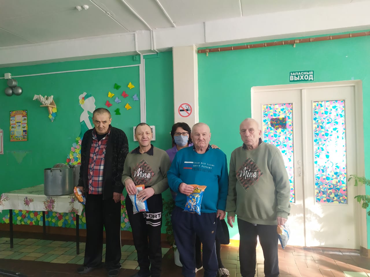 Мужчины ведь всегда остаются мужчинами, даже когда проживают не со своей семьей, а в учреждениях, в силу различных жизненных обстоятельств… И конечно же, помнят о мужском празднике и ждут внимания к себе… Приятно было видеть, как все проживающие нарядились, некоторые «виновники торжества» так искренне радовались вниманию и заботе о них, словно вернулись в детство…Волонтерская команда рада была помочь своим друзьям!