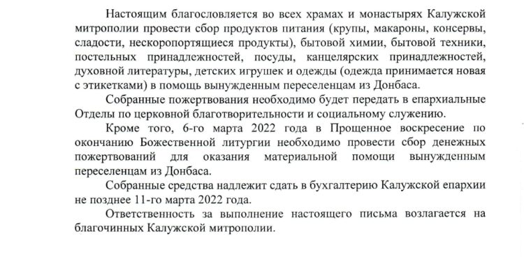 Сбор пожертвований для вынужденных переселенцев из Донбаса