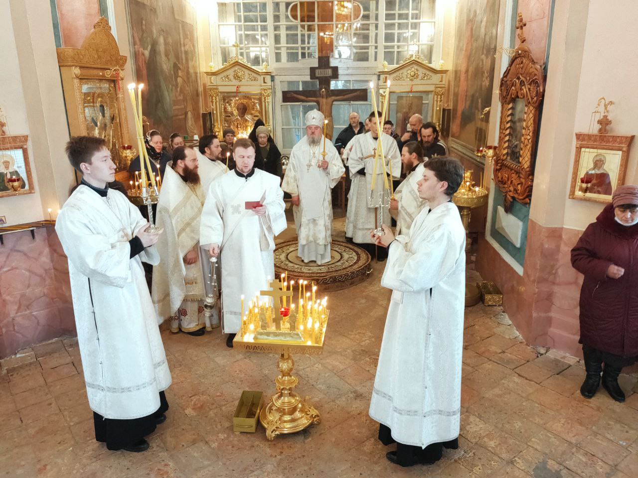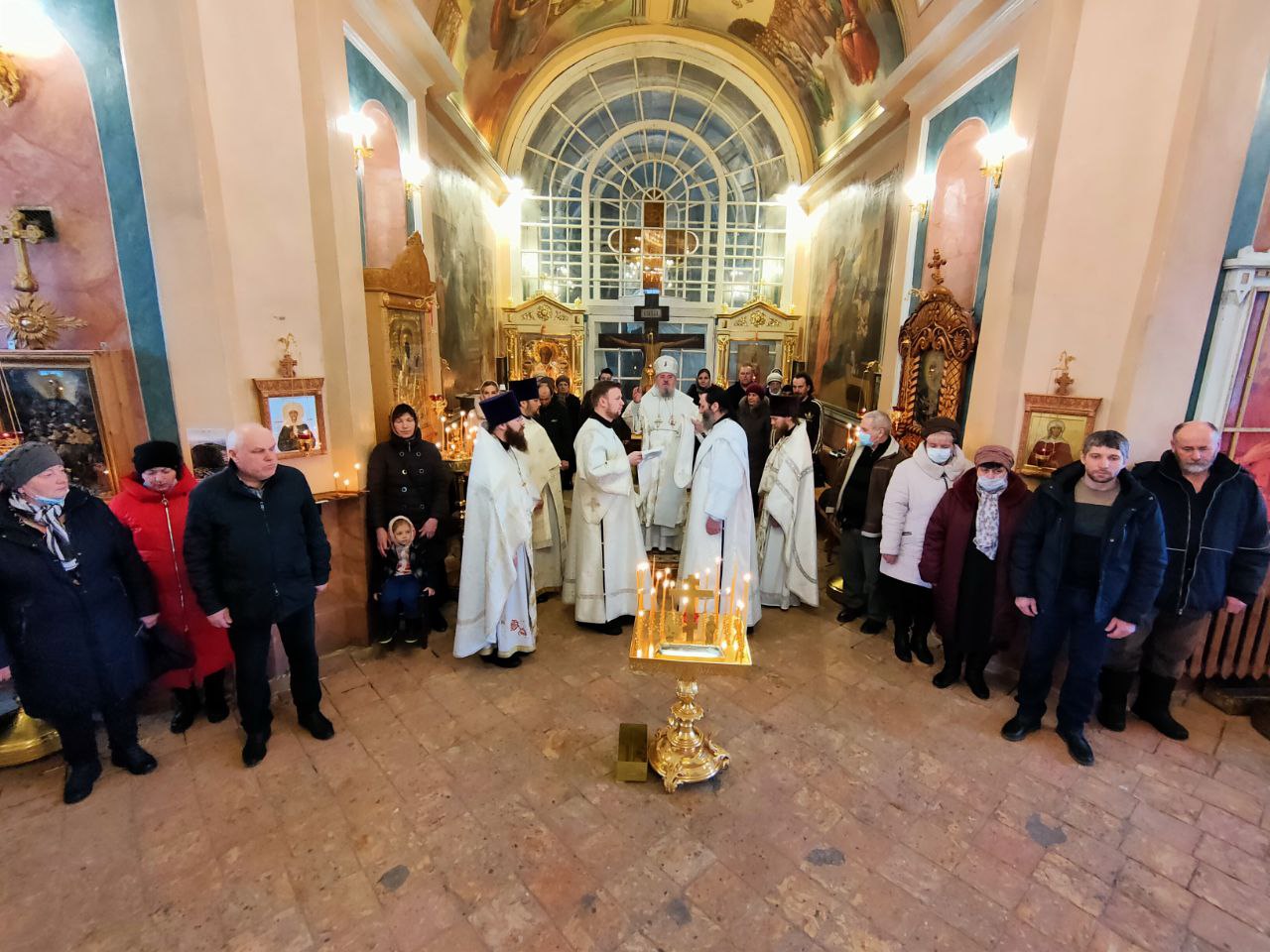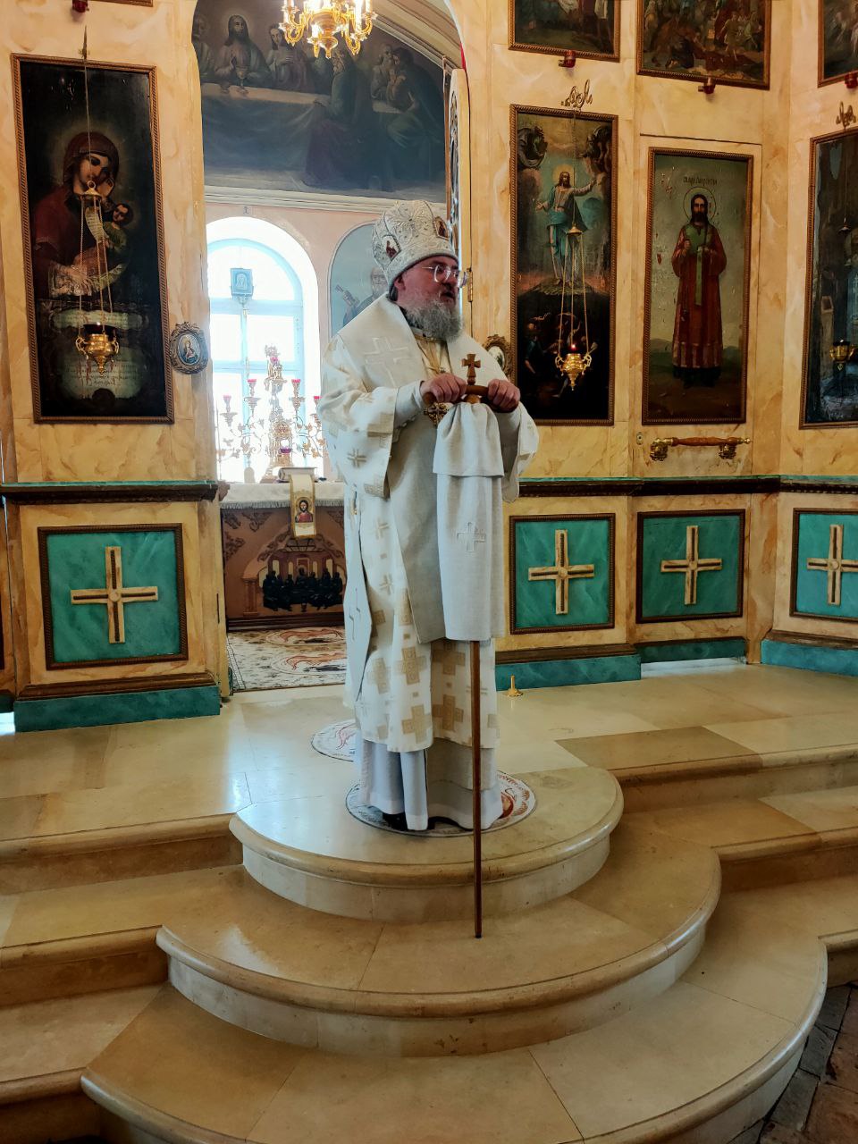 Архипастырю сослужили: протоиерей Антоний Хатунцев, иерей Симеон Худяков, иерей Тихон Худяков – настоятель прихода, диакон Евгений Ковригин и диакон Валерий Волков.