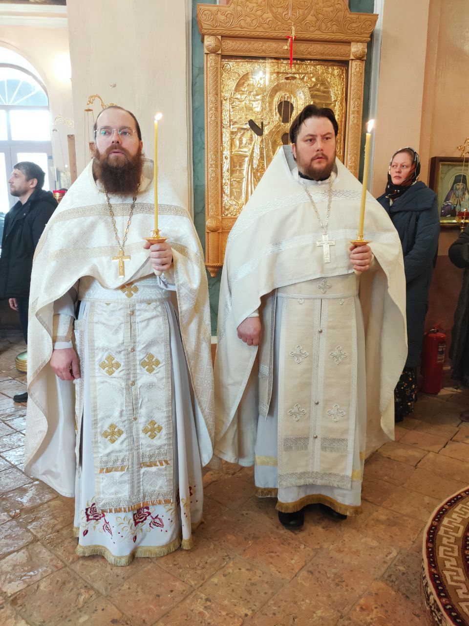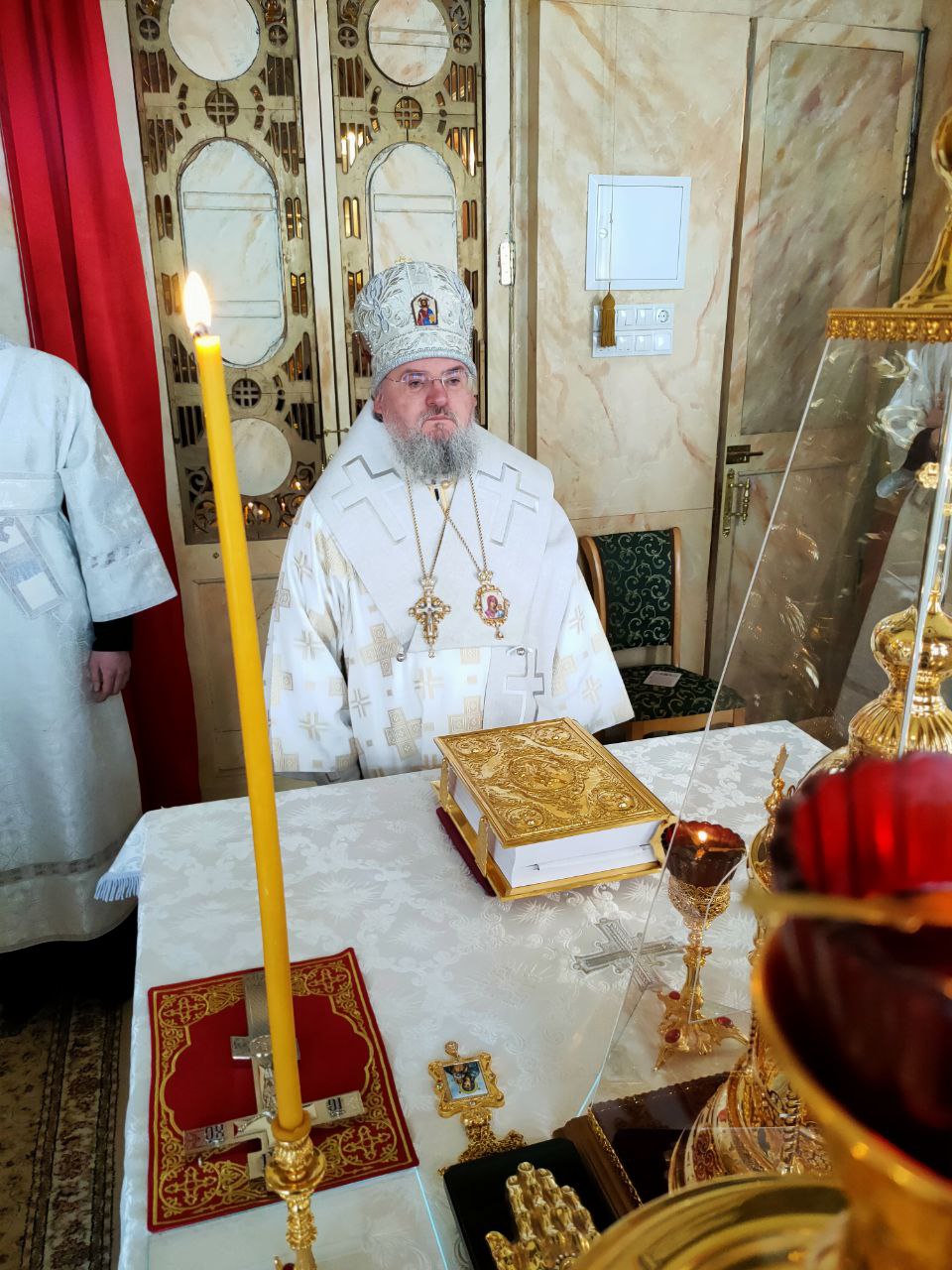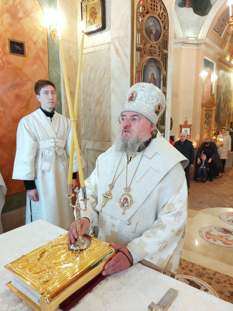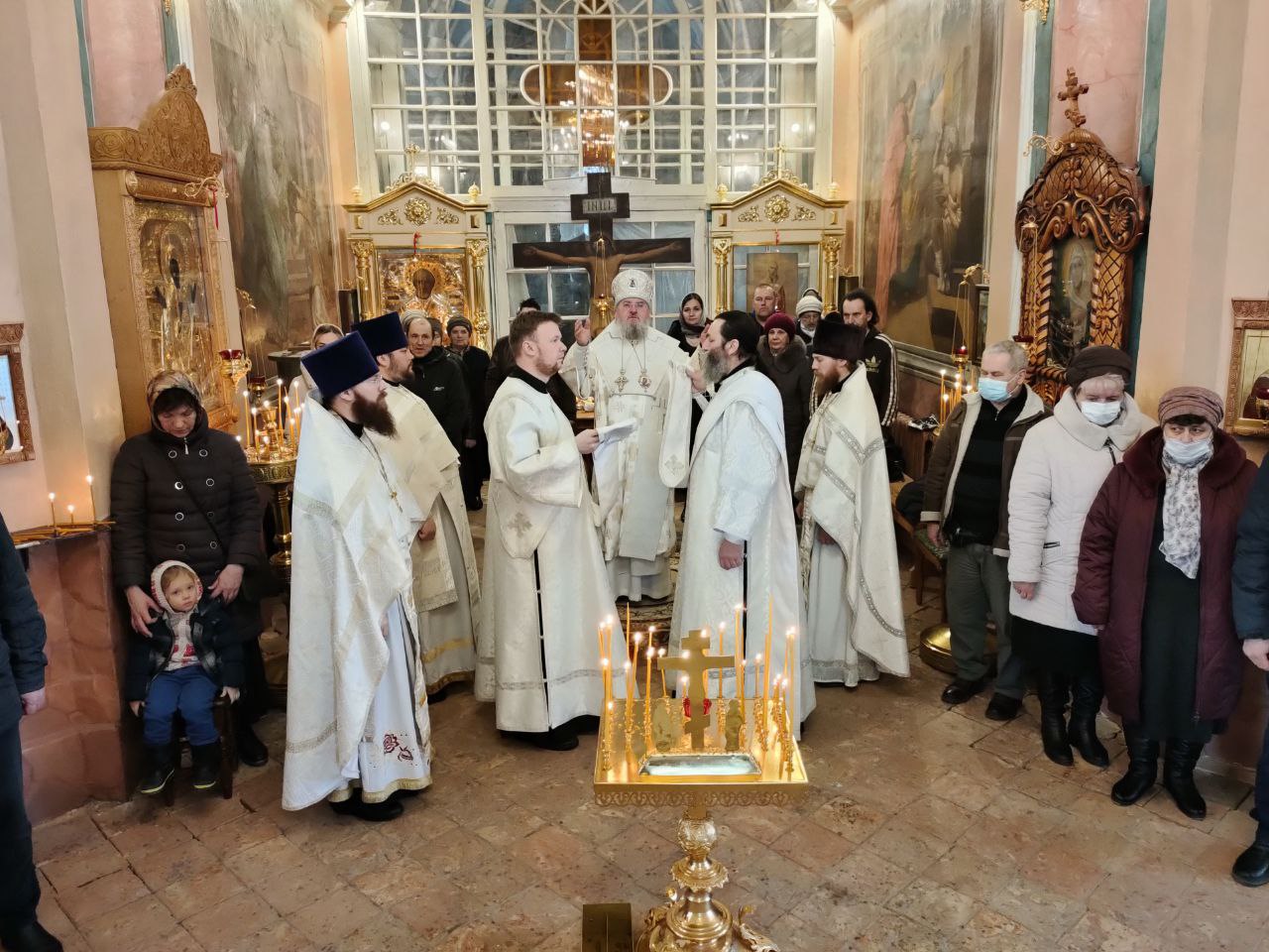Архипастырю сослужили: протоиерей Антоний Хатунцев, иерей Симеон Худяков, иерей Тихон Худяков – настоятель прихода, диакон Евгений Ковригин и диакон Валерий Волков.