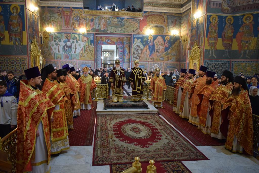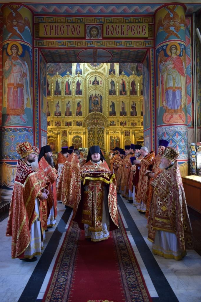 Архипастырям сослужили: протоиерей Анатолий Рыжков, протоиерей Константин Гипп, архимандрит Георгий (Евдачев), игумен Михаил (Семенов), игумен Мефодий (Пронькин) — секретарь Калужской епархии, протоиерей Андрей Богомолов — благочинный Первого Калужского благочиния 5-го округа Калужской епархии, иерей Константин Комаров — благочинный Второго Калужского благочиния 5-го округа Калужской епархии, представители духовенства Калужской, Песоченской и Козельской епархий. Диаконский чин возглавил протодиакон Алексей Хамтеев.