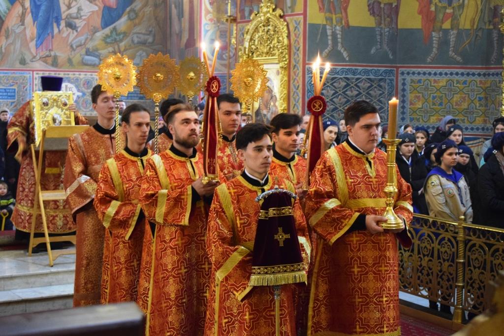 Богослужебные песнопения исполнили хор Калужской духовной семинарии и Калужского духовного училища.