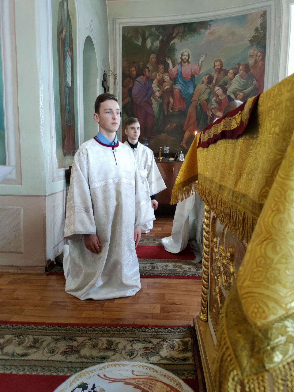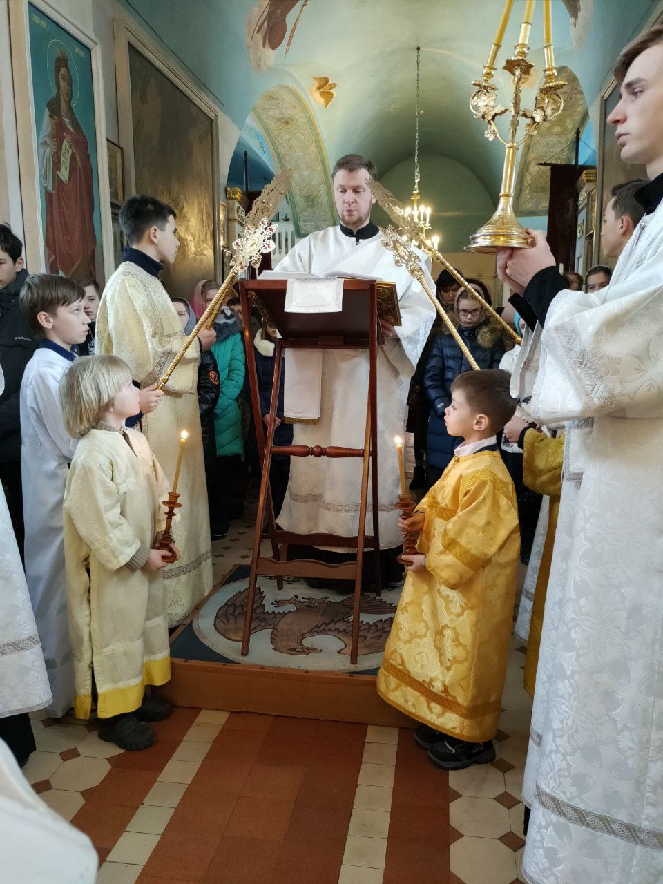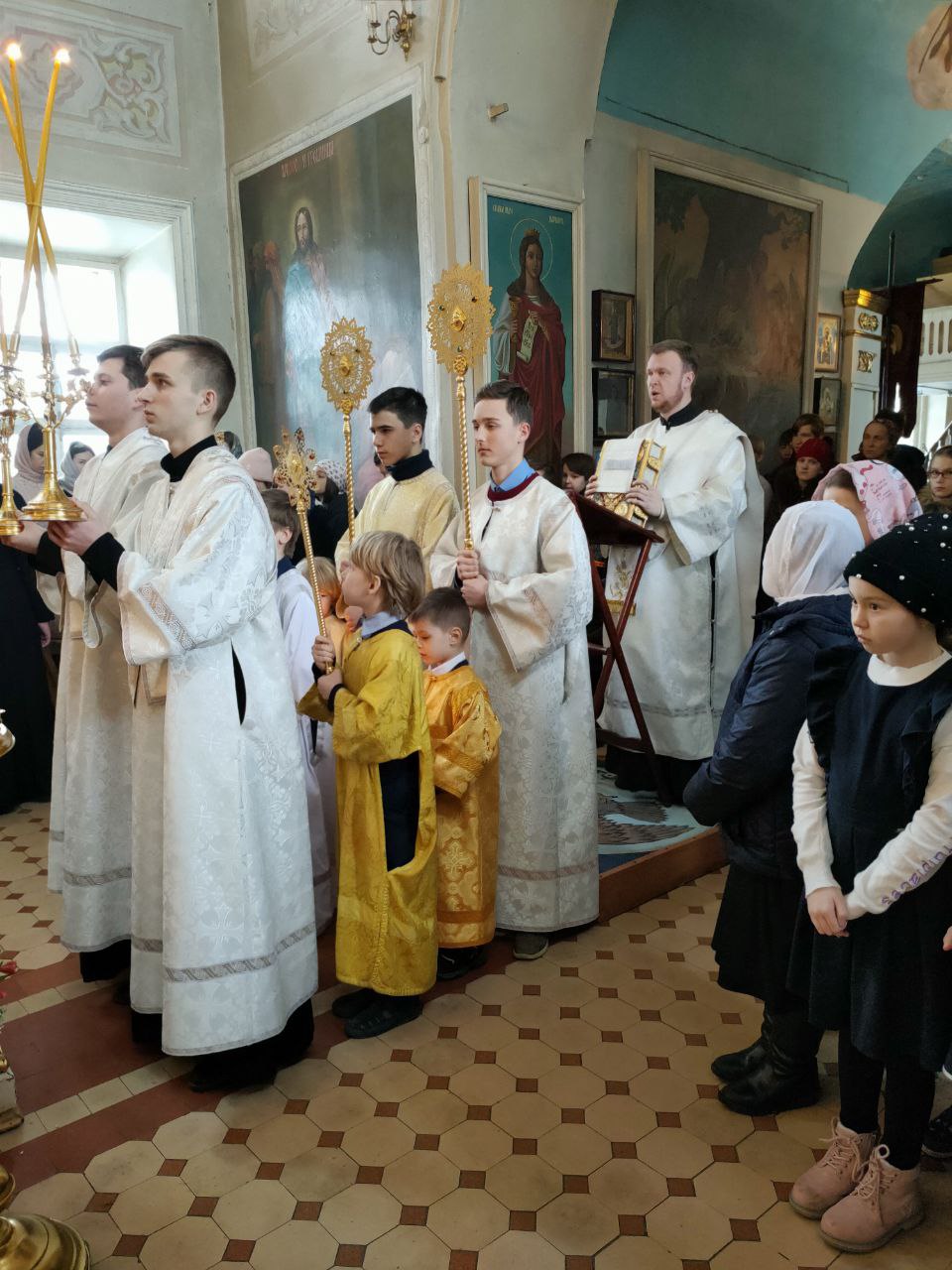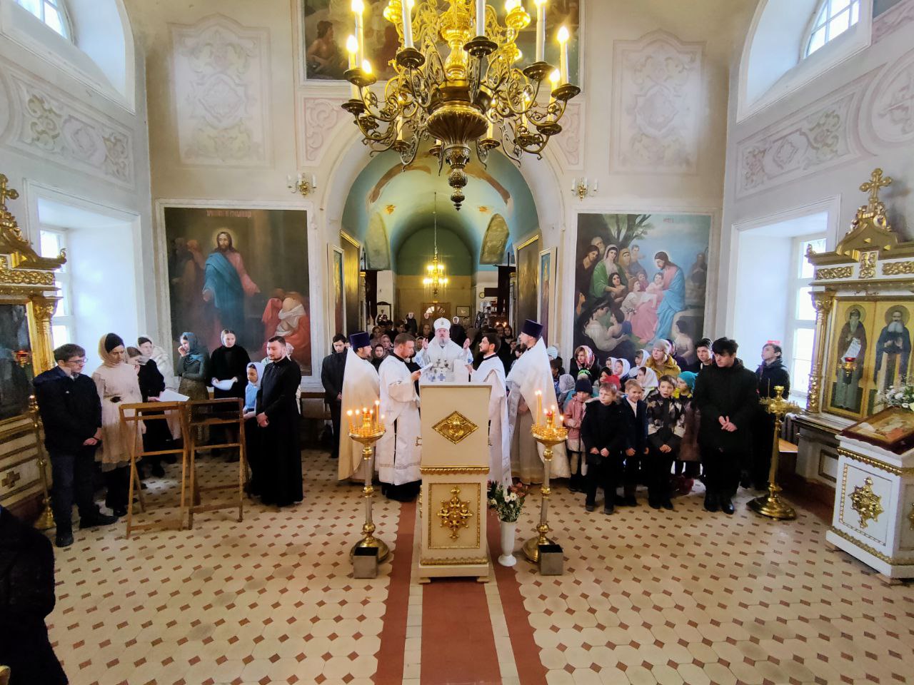 5 марта. Память всех преподобных отцов, в подвиге просиявших. В Благовещенском храме состоялось богослужение с участием юных прихожан города Козельска. Божественную литургию в этот день возглавил епископ Козельский и Людиновский Никита. Преосвященному владыке сослужили: протоиерей Антоний Хатунцев, иерей Сергий Барыкин – настоятель прихода, диакон Евгений Ковригин и диакон Евгений Васильев. За богослужением пел сводный хор Козельской православной гимназии. Дети — учащиеся гимназии, а также прихожане храмов города помогали в алтаре при совершении богослужения. После сугубой ектении владыка вознес коленопреклонную молитву о восстановлении мира, читаемую в эти дни, по благословению Святейшего Патриарха Московского и всея Руси Кирилла во всех храмах Русской Православной Церкви. Большинство юных богомольцев в этот день причастилось Святых Христовых Таин. По завершении богослужения владыка обратился к молящимся со словом назидания.