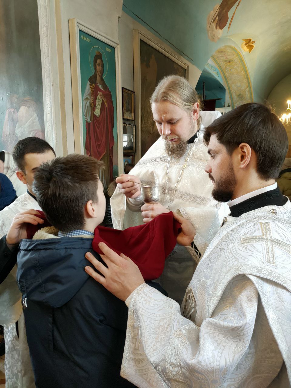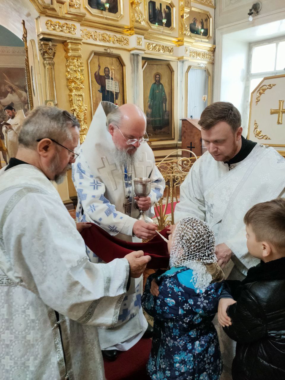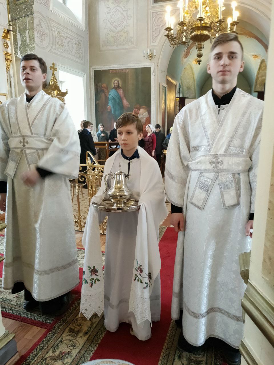5 марта. Память всех преподобных отцов, в подвиге просиявших. В Благовещенском храме состоялось богослужение с участием юных прихожан города Козельска. Божественную литургию в этот день возглавил епископ Козельский и Людиновский Никита. Преосвященному владыке сослужили: протоиерей Антоний Хатунцев, иерей Сергий Барыкин – настоятель прихода, диакон Евгений Ковригин и диакон Евгений Васильев. За богослужением пел сводный хор Козельской православной гимназии. Дети — учащиеся гимназии, а также прихожане храмов города помогали в алтаре при совершении богослужения. После сугубой ектении владыка вознес коленопреклонную молитву о восстановлении мира, читаемую в эти дни, по благословению Святейшего Патриарха Московского и всея Руси Кирилла во всех храмах Русской Православной Церкви. Большинство юных богомольцев в этот день причастилось Святых Христовых Таин. По завершении богослужения владыка обратился к молящимся со словом назидания.