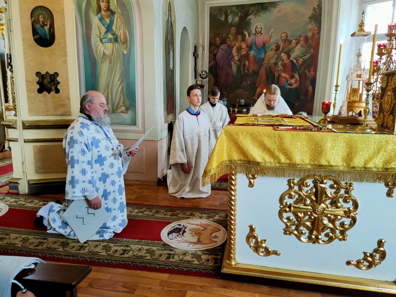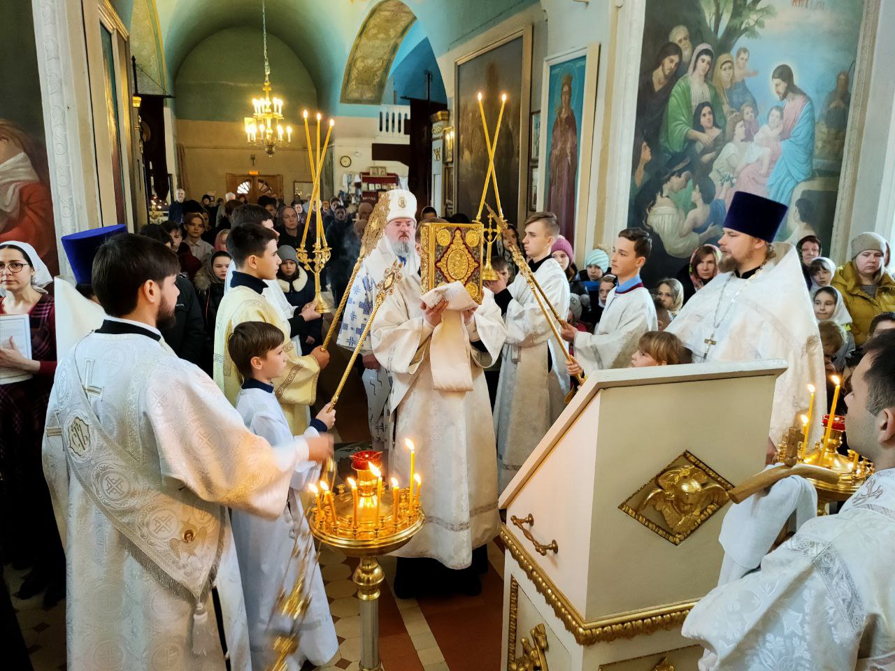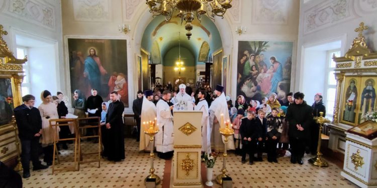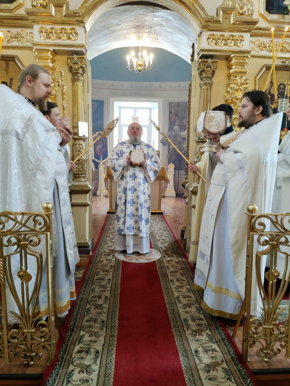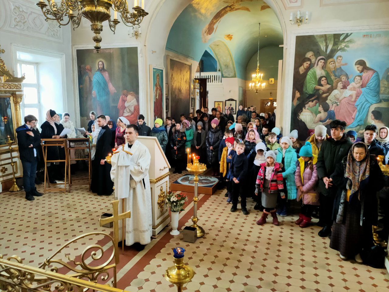 5 марта. Память всех преподобных отцов, в подвиге просиявших. В Благовещенском храме состоялось богослужение с участием юных прихожан города Козельска. Божественную литургию в этот день возглавил епископ Козельский и Людиновский Никита. Преосвященному владыке сослужили: протоиерей Антоний Хатунцев, иерей Сергий Барыкин – настоятель прихода, диакон Евгений Ковригин и диакон Евгений Васильев. За богослужением пел сводный хор Козельской православной гимназии. Дети — учащиеся гимназии, а также прихожане храмов города помогали в алтаре при совершении богослужения. После сугубой ектении владыка вознес коленопреклонную молитву о восстановлении мира, читаемую в эти дни, по благословению Святейшего Патриарха Московского и всея Руси Кирилла во всех храмах Русской Православной Церкви. Большинство юных богомольцев в этот день причастилось Святых Христовых Таин. По завершении богослужения владыка обратился к молящимся со словом назидания.