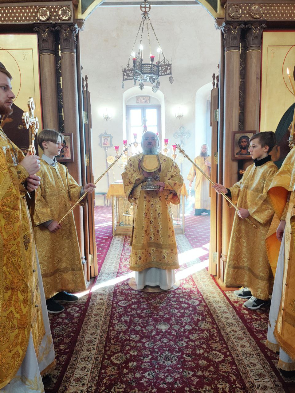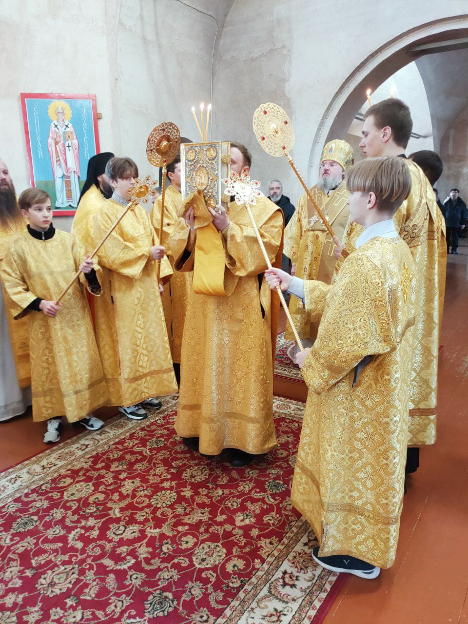 6 марта. Неделя Сыропустная. Прощеное воскресение. Епископ Козельский и Людиновский Никита совершил Божественную литургию в Успенском кафедральном соборе города Козельска. Архипастырю сослужили: иеромонах Паисий (Курмаз) – настоятель собора, иерей Елисей Тимофеев, иерей Евгений Чуркин, диакон Евгений Ковригин и диакон Дмитрий Лутков. За богослужением была вознесена молитва о восстановлении мира. По запричастном стихе священник Евгений Чуркин огласил Великопостное Послание епископа Козельского и Людиновского Никиты. Завершая богослужение владыка обратился к богомольцам с архипастырским словом.