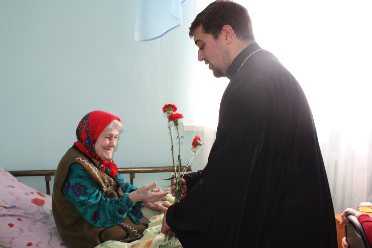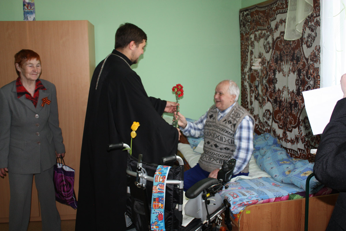 В этот же день батюшка поздравил всех ветеранов, живущих в доме-интернате для престарелых и инвалидов с Днем Победы.