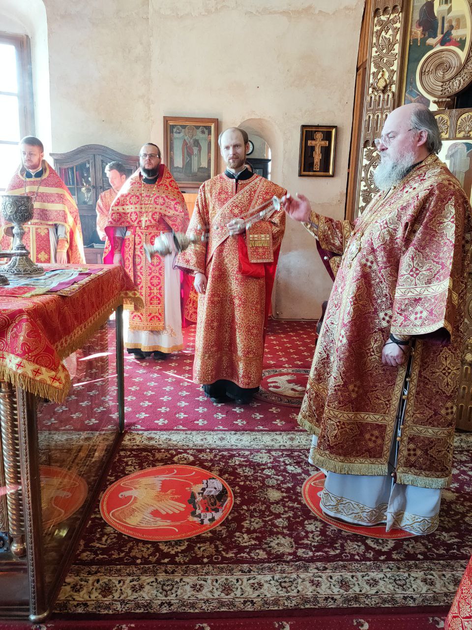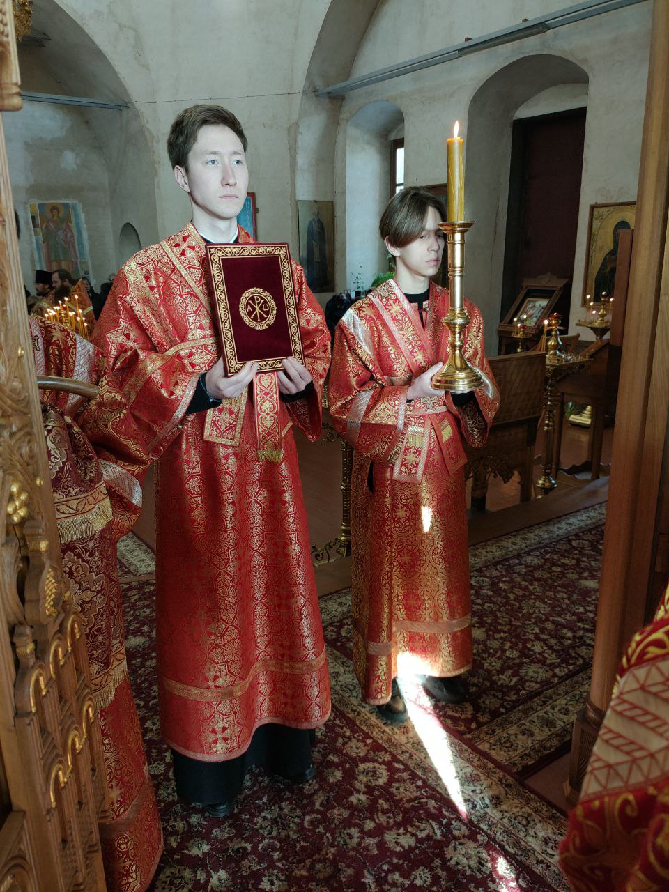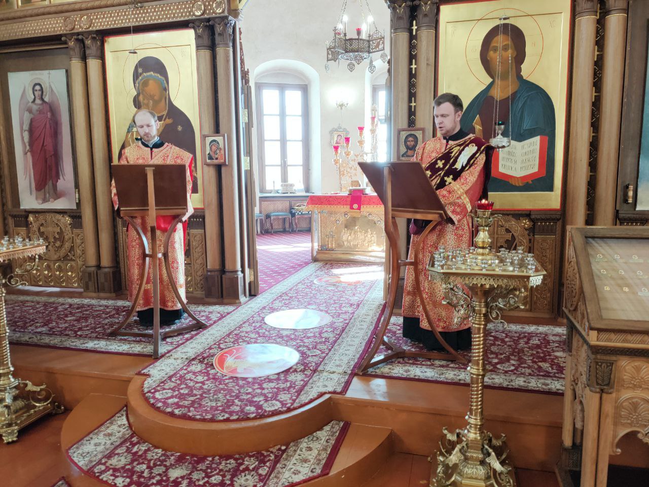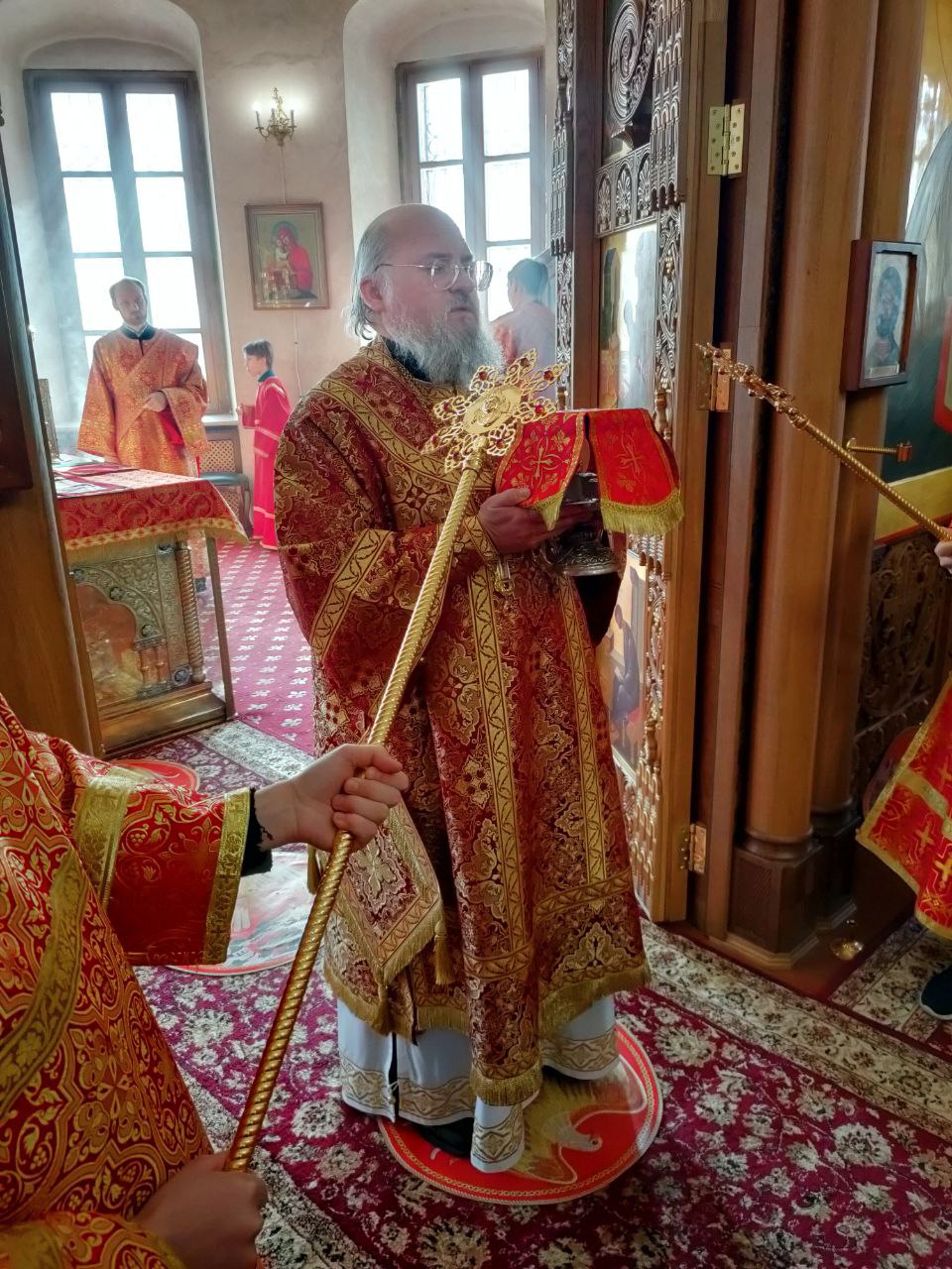 Его Преосвященству сослужили: протоиерей Антоний Хатунцев, иеромонах Паисий (Курмаз) – настоятель собора, иерей Елисей Тимофеев, иерей Евгений Чуркин, диакон Евгений Ковригин, диакон Дмитрий Лутков и иеродиакон Лука (Старостин).